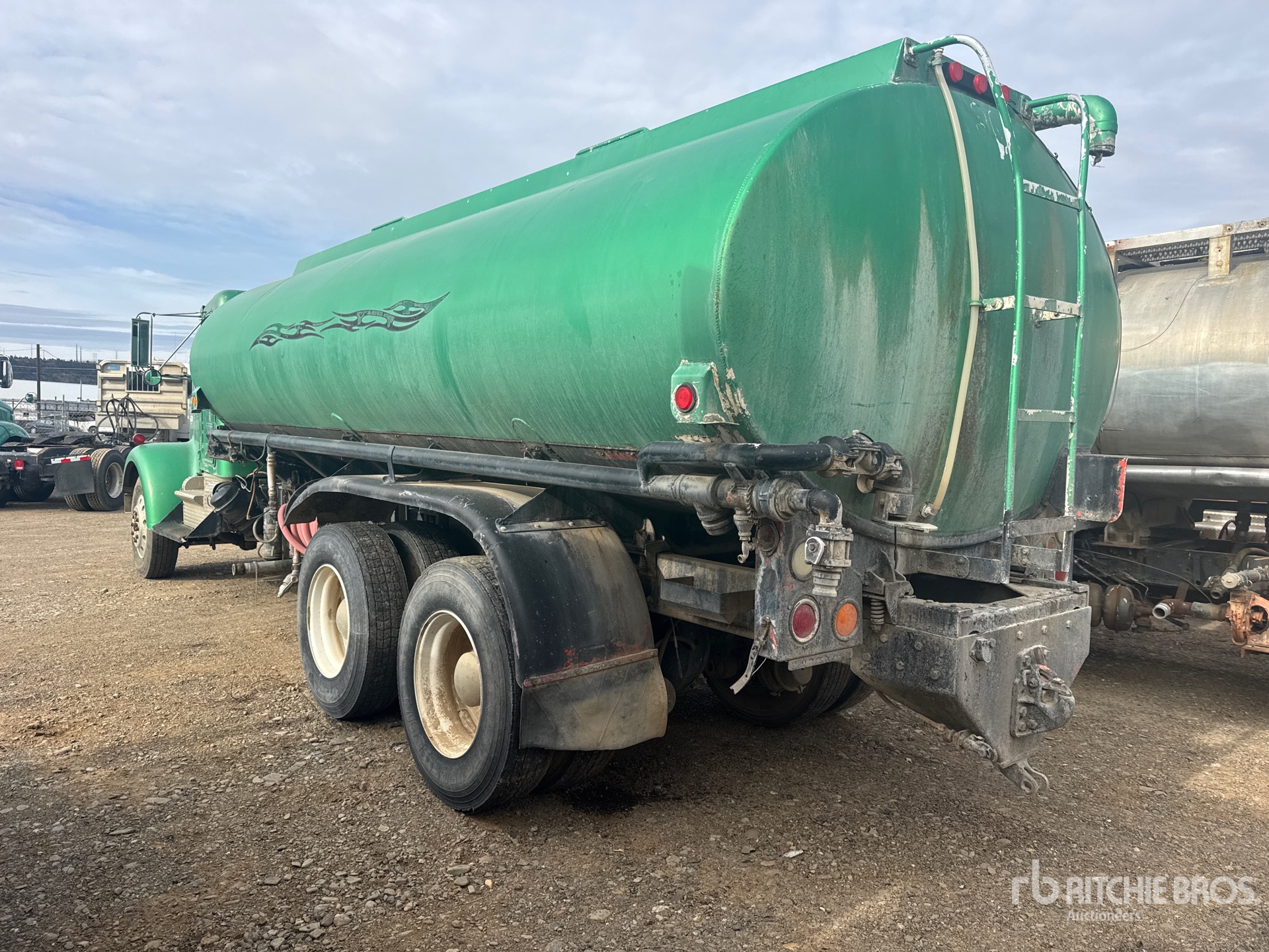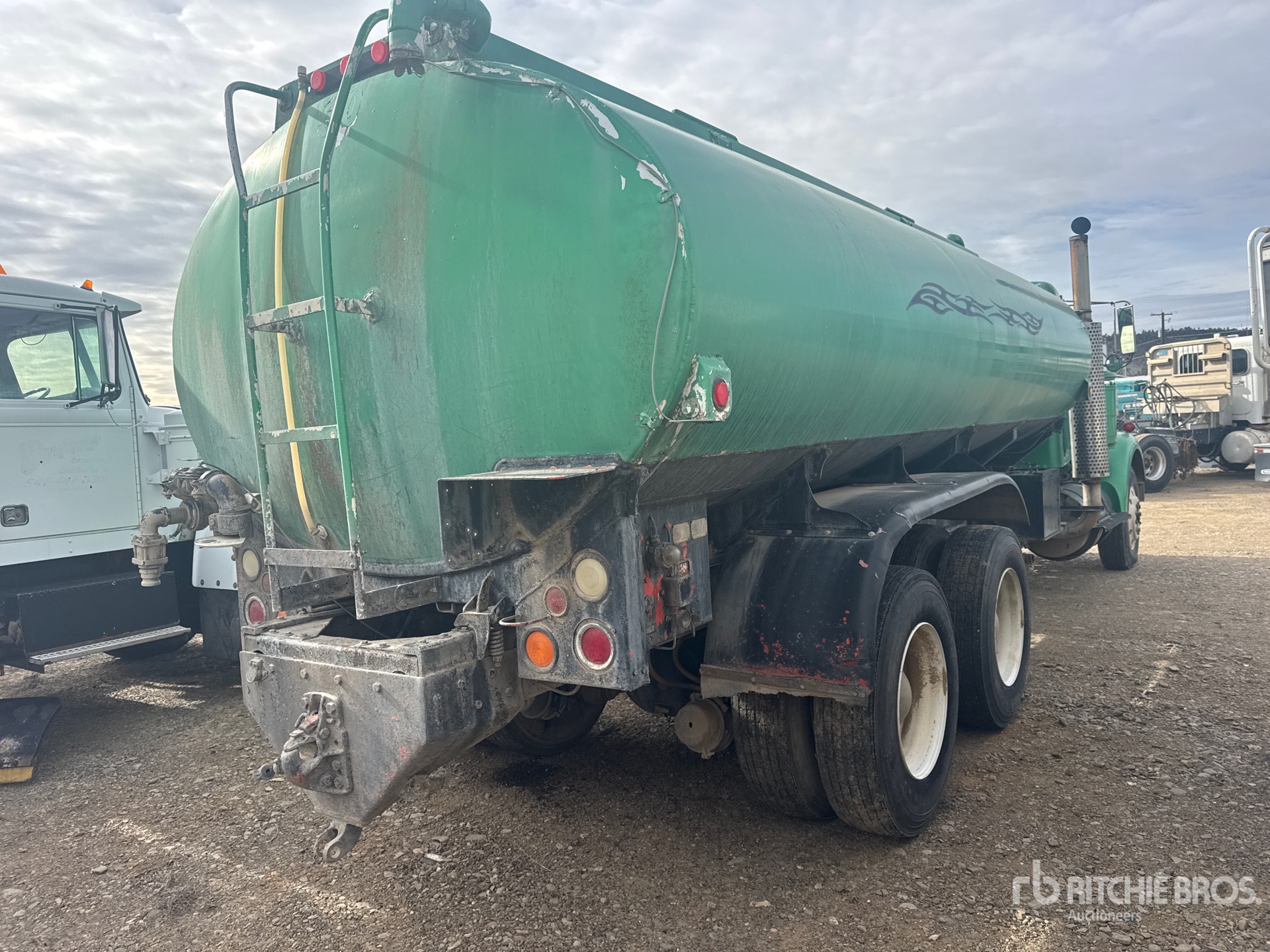 Moteur diesel Cummins NTC 350 à 6 cylindres, 3 553 heures de fonctionnement, boîte de vitesses manuelle, pneus avant 11R24.5, pneus arrière 11R22.5, suspension à balancier sur silentblocs, empattement de 6,14 m (242 pouces), prise de force, réservoir en acier, pompe Gorman Rupp entraînée par prise de force, enrouleur de tuyau