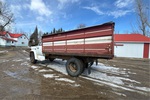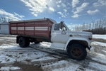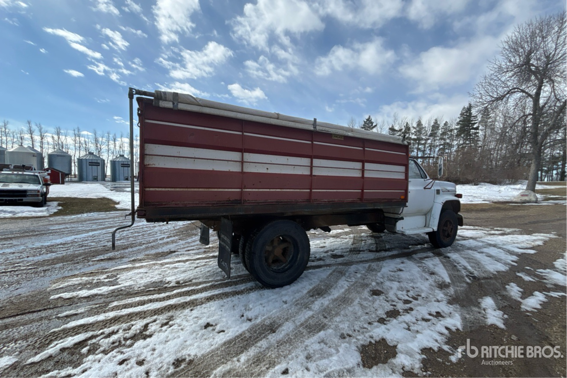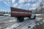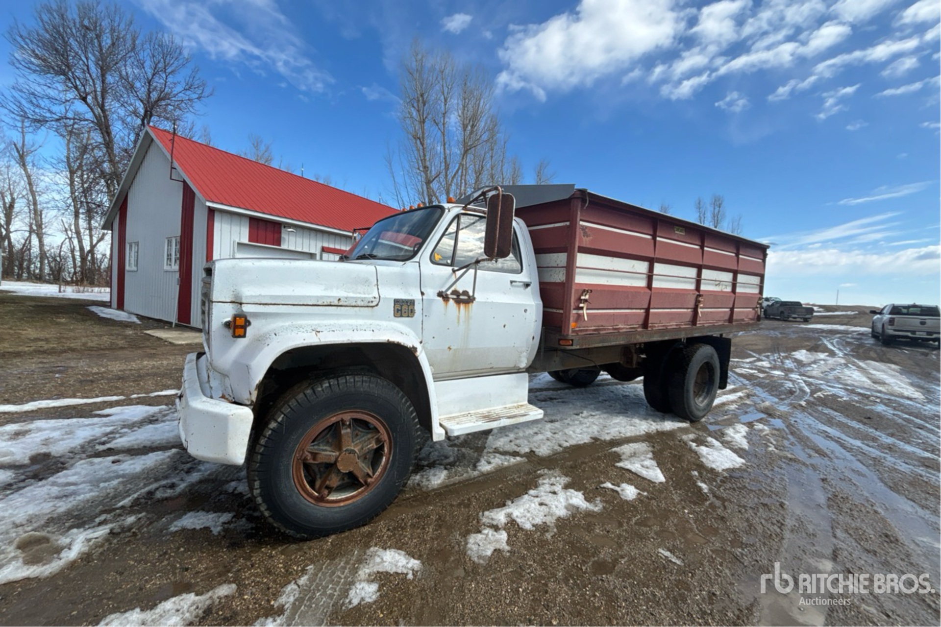 Moteur à essence V8, boîte de vitesses manuelle 5 rapports/2 rapports, essieu avant de 2268 kg, essieux arrière de 7300 kg, PTAC de 9600 kg, pneus avant 9.00-20, pneus arrière 10R22.5, suspension à ressorts, empattement de 457 cm, prise de force, benne en acier de 4,57 m de long x 1,17 m de haut, bâche à enroulement manuel, hayon arrière à ouverture latérale.