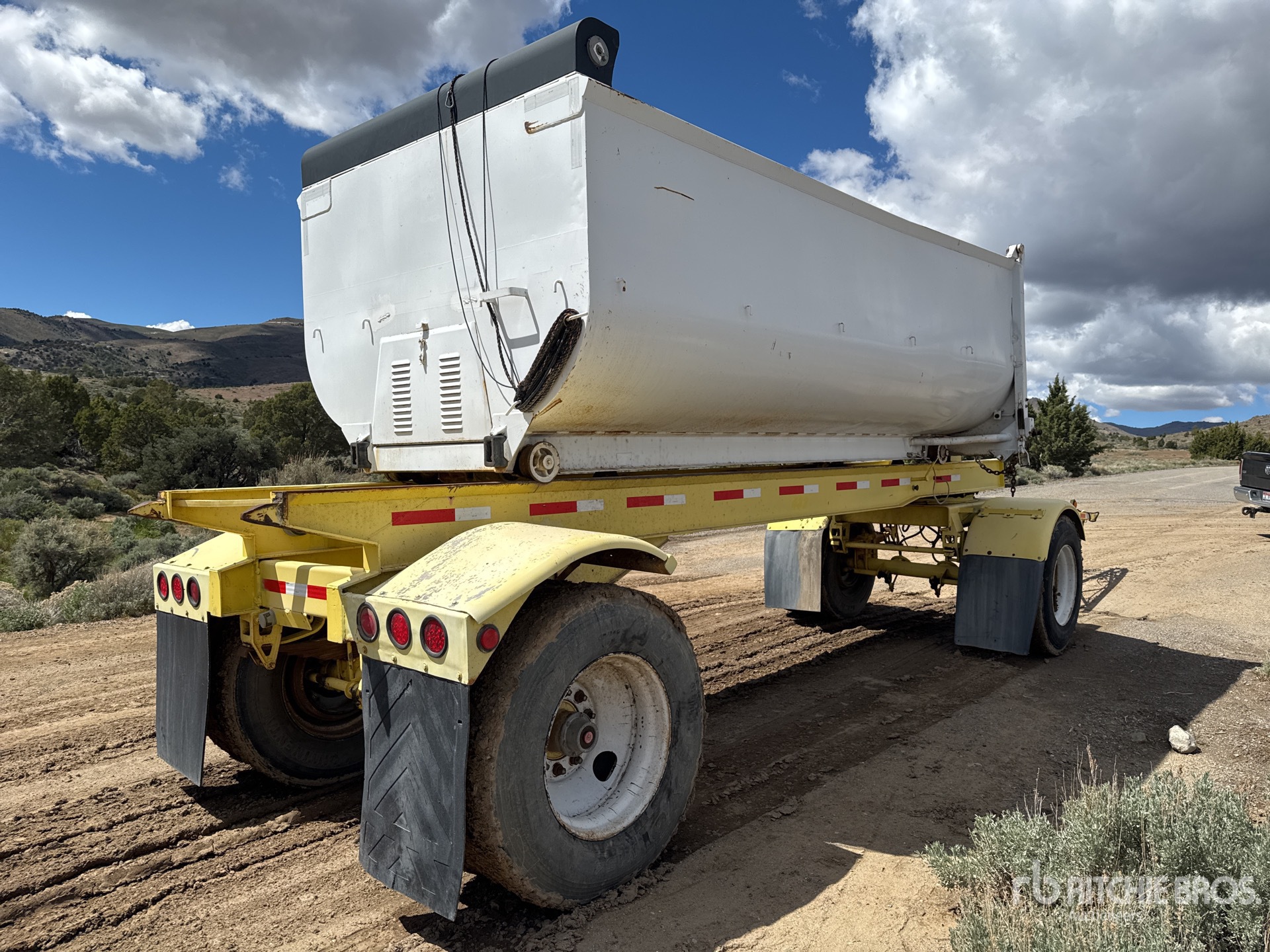 Attelage à anneau Lunette, suspension à ressorts, freins à air, caisse de 4,57 m (15 pi), parois latérales de 1,22 m (48 po), caisse en acier, bâche à enroulement manuel, pneus 11R24.5
