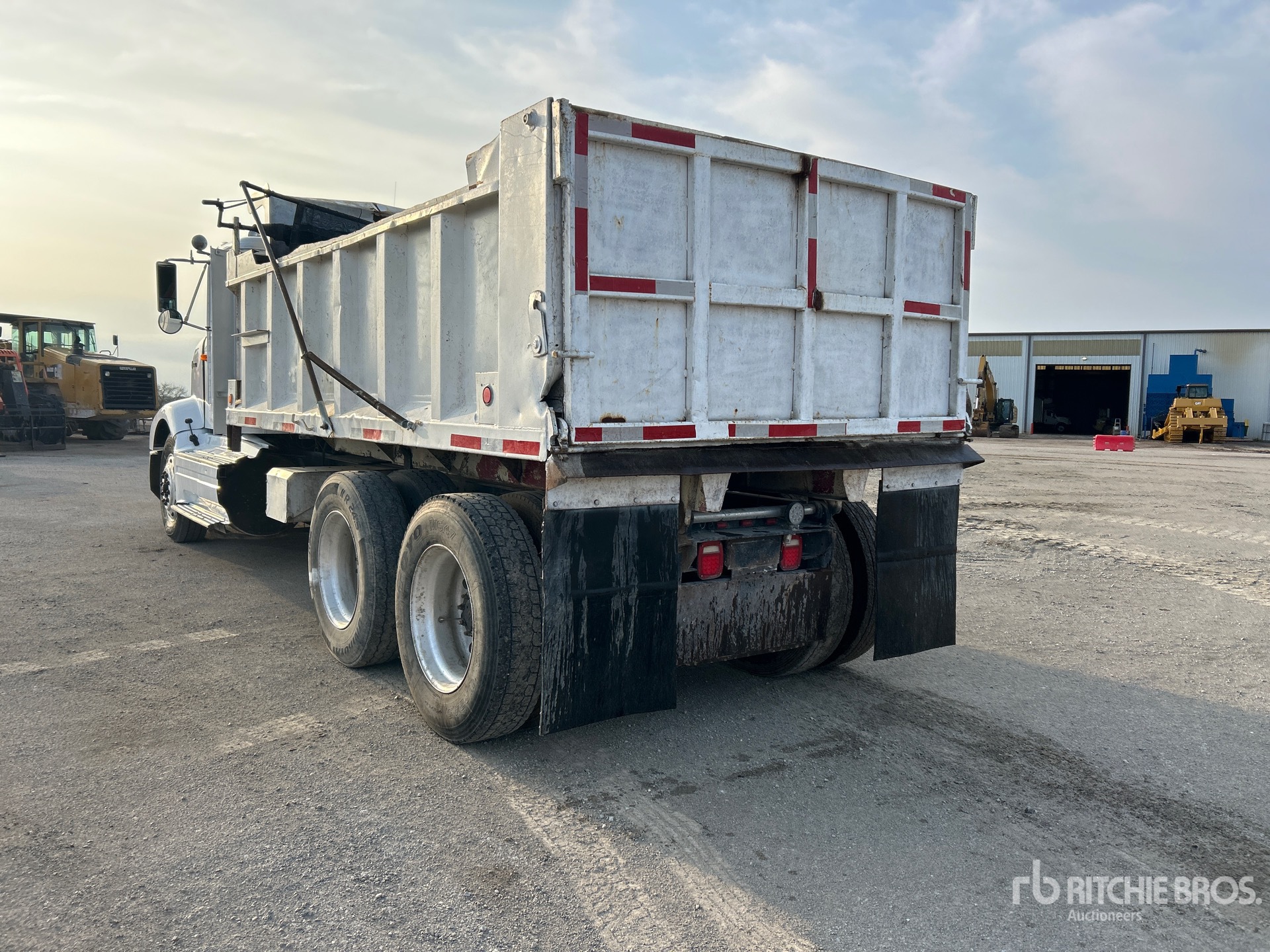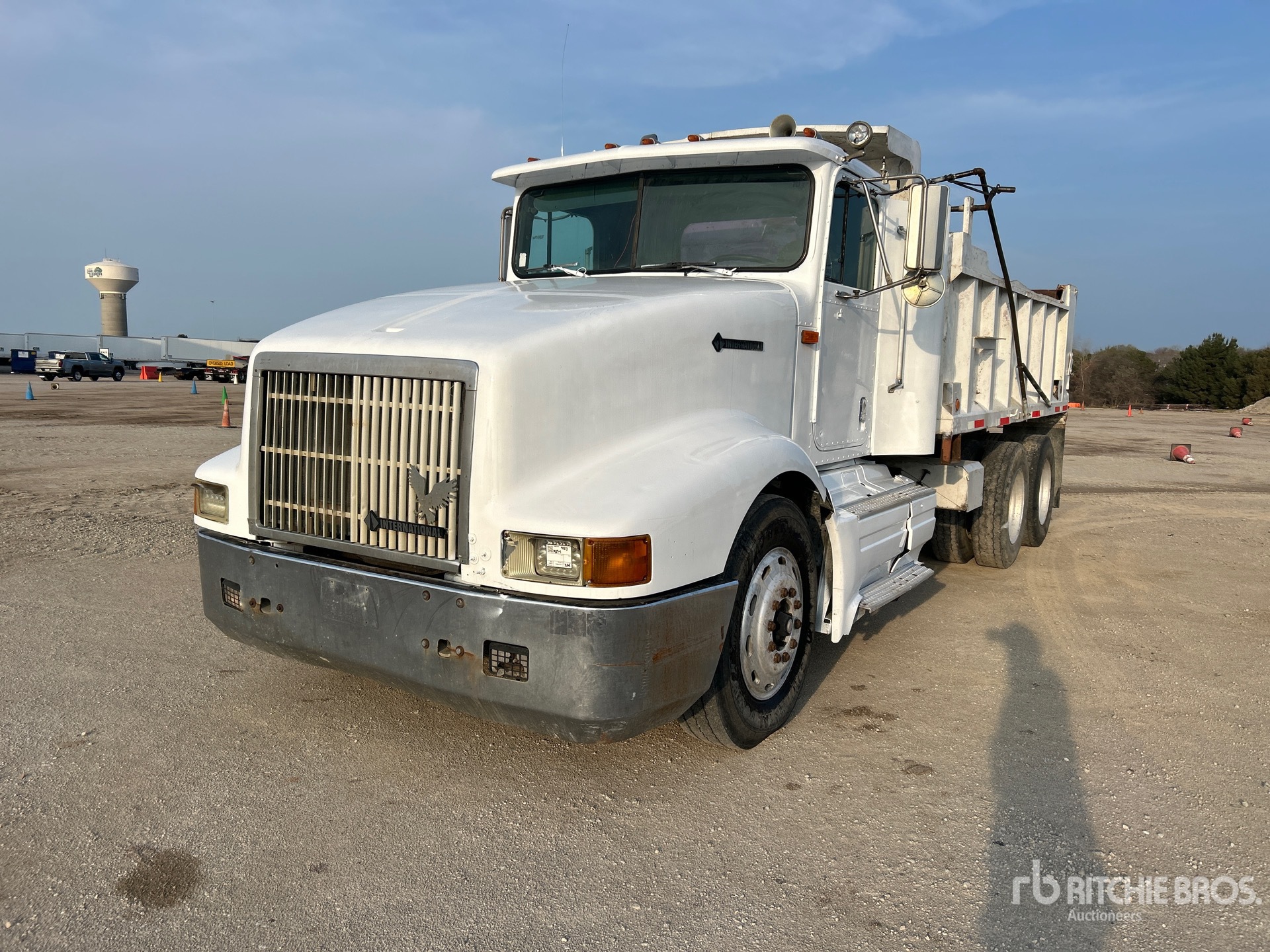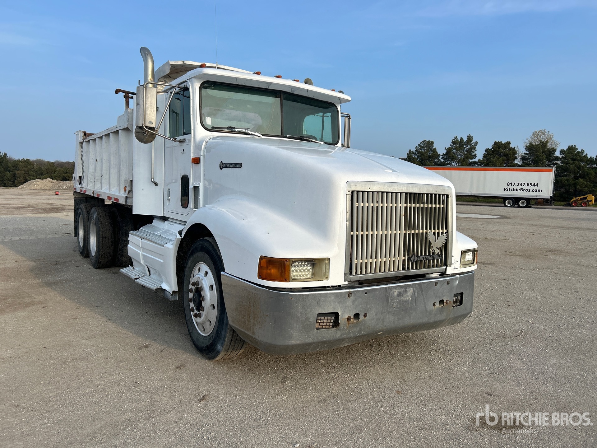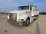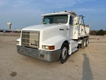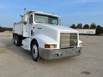 Moteur diesel Detroit Series 60 à 6 cylindres, homologué EPA (États-Unis) 1993, roues avant en aluminium, pneus 11R24.5, suspension pneumatique, empattement de 215 pouces, prise de force, benne en acier de 15 pieds de long x 3 pieds 2 pouces de haut, bâche à enroulement manuel