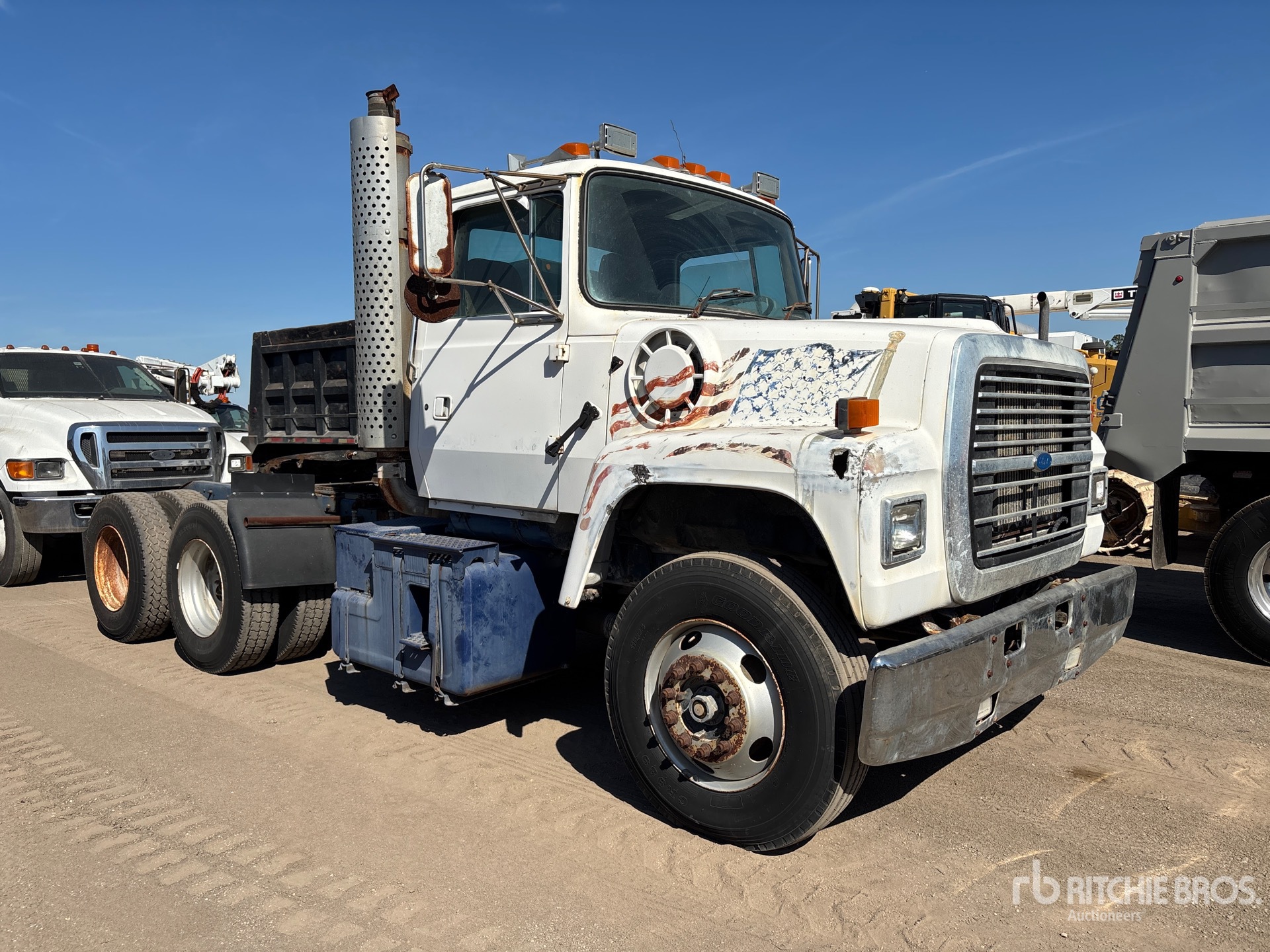 Moteur Caterpillar de 350 ch, 1031 heures de fonctionnement, transmission manuelle Eaton Fuller 8LL, essieu avant de 12 000 lb, essieu arrière de 40 000 lb, PTAC de 52 000 lb, empattement de 178 pouces, suspension à ressorts, pneus 11R22.5, sellette d'attelage coulissante pneumatique, deux réservoirs de carburant
