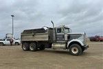 Moteur diesel Cat 3406 6 cylindres 14,6 L, homologué EPA US 1994, 2 875 heures moteur, frein moteur, boîte de vitesses manuelle Eaton Fuller RTLO187B 18 rapports, différentiel autobloquant, essieu avant 5 443 kg, essieu arrière 20 868 kg, PTAC 26 316 kg, pneus avant 385/65R22.5, pneus arrière 11R24.5, suspension à balancier en caoutchouc, empattement de 617 cm, prise de force, benne en aluminium de 4,57 m de long x 1,22 m de haut, bâche à enroulement électrique, système Ringfeder
