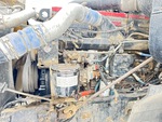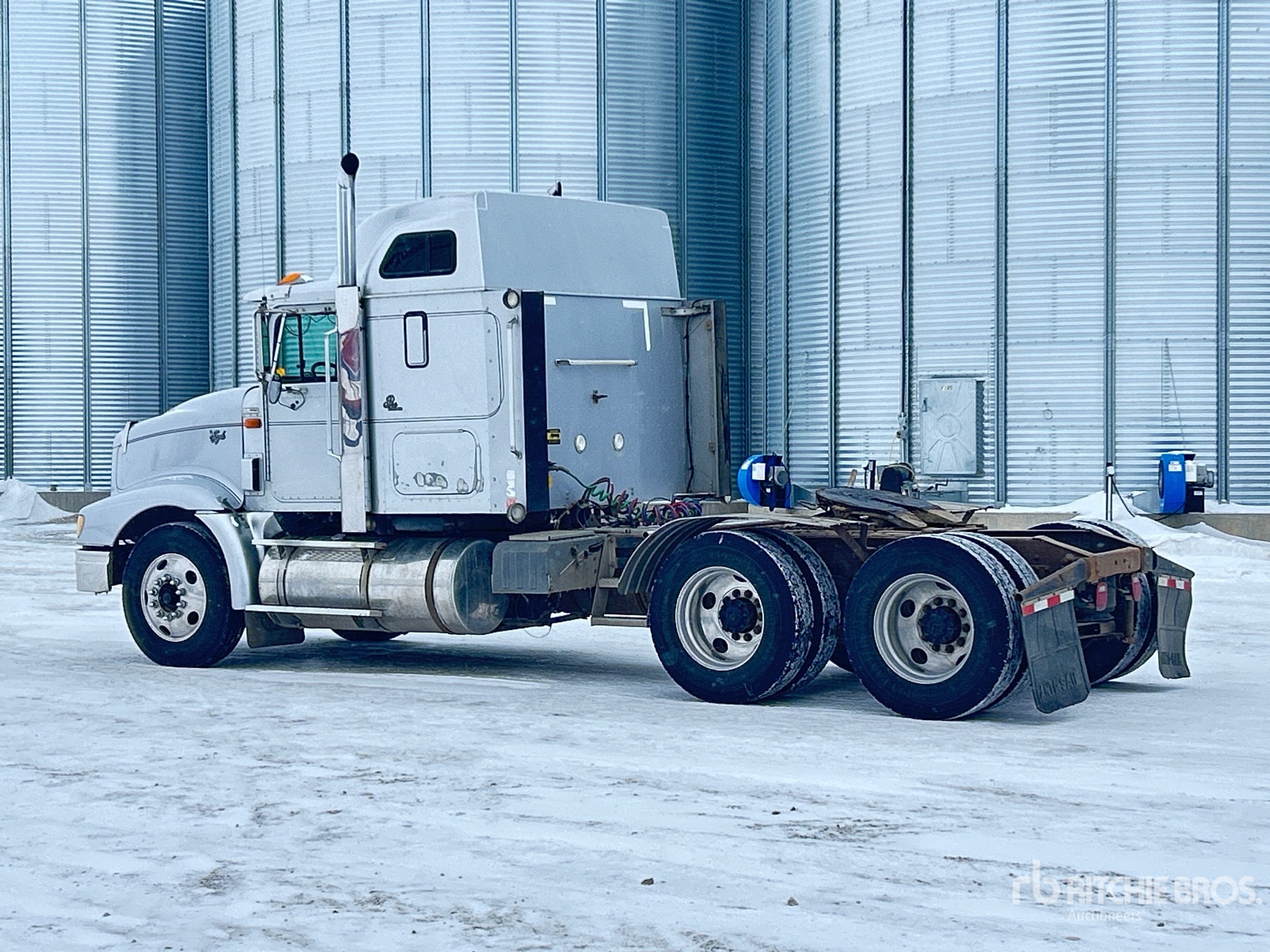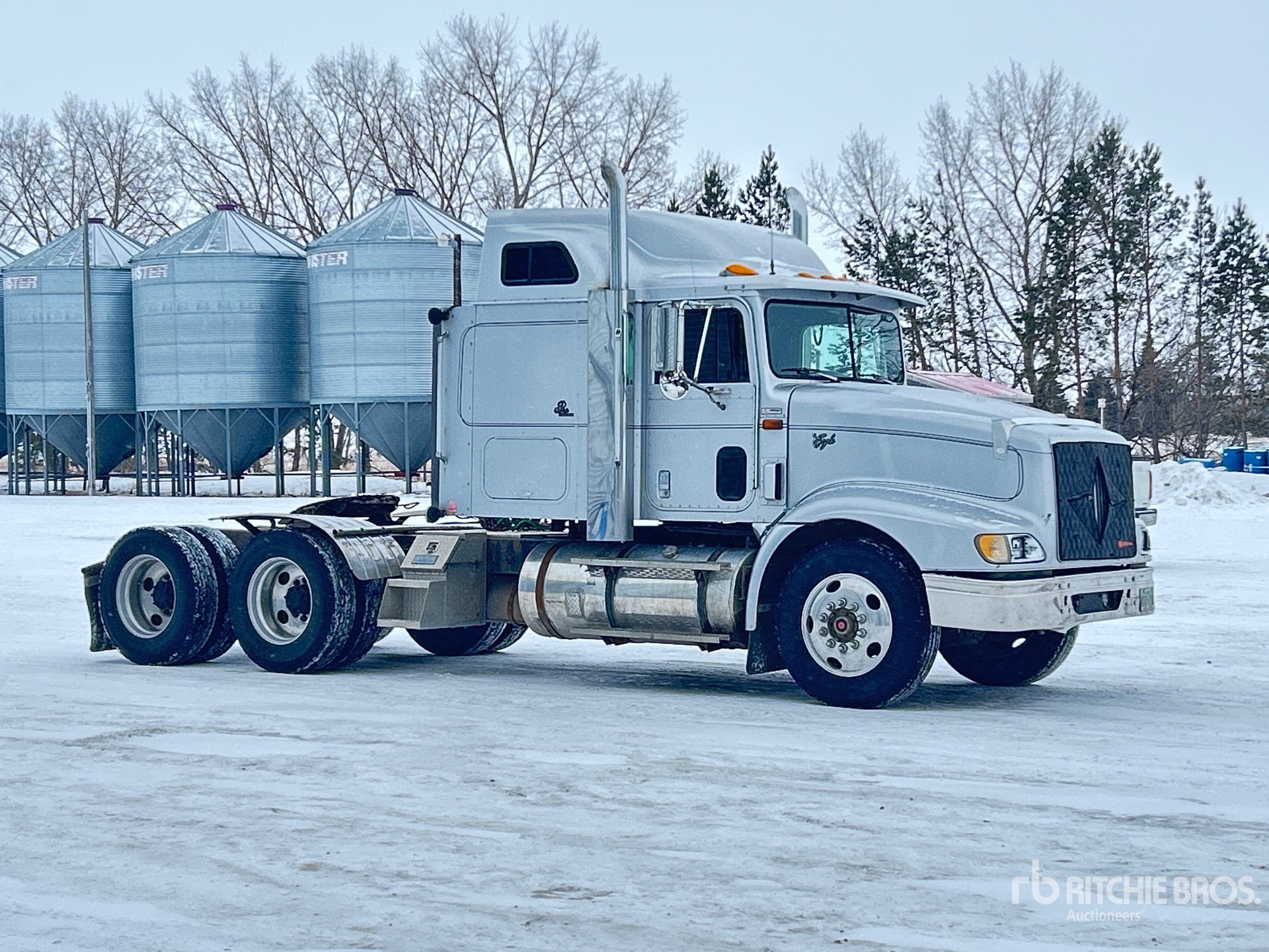 Moteur Cummins N14 Plus de 500 ch, 28 201 heures de fonctionnement, transmission manuelle Eaton Fuller à 18 rapports, essieu avant de 5 443 kg, essieu arrière de 18 144 kg, double blocage de différentiel, cabine couchette à toit surélevé de 130 cm, empattement de 620 cm, suspension pneumatique, jantes en aluminium, pneus 11R24.5, suspension avant à assistance pneumatique, réservoir de carburant double