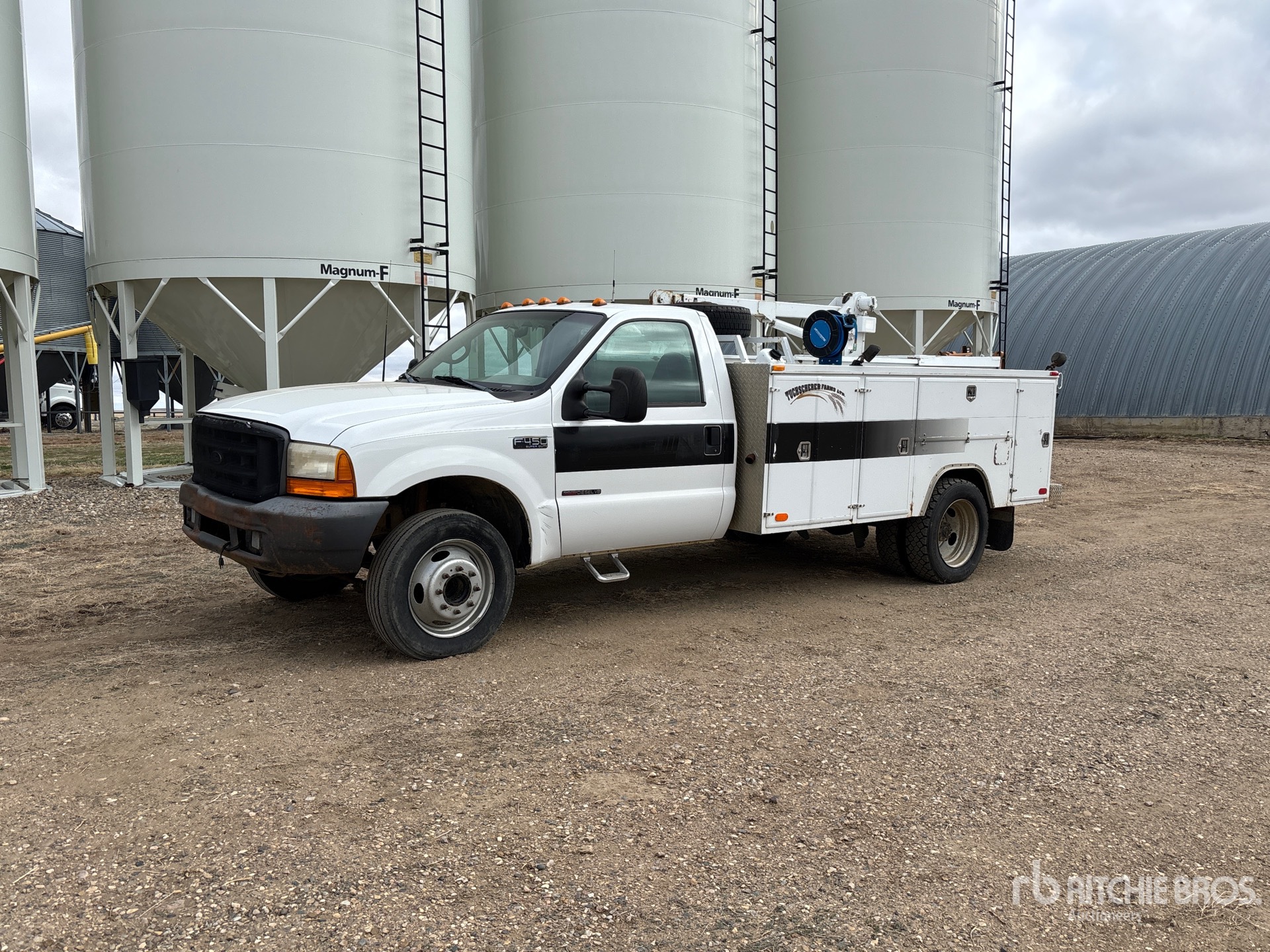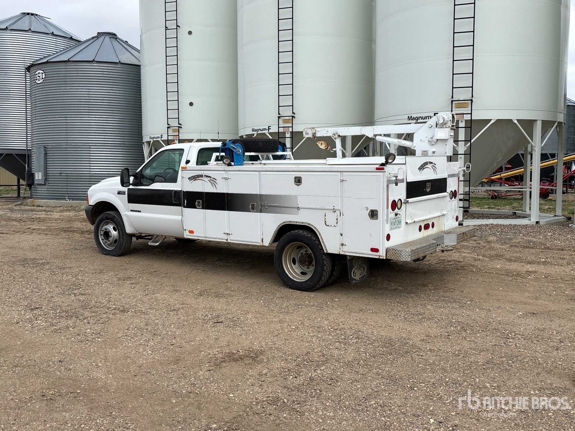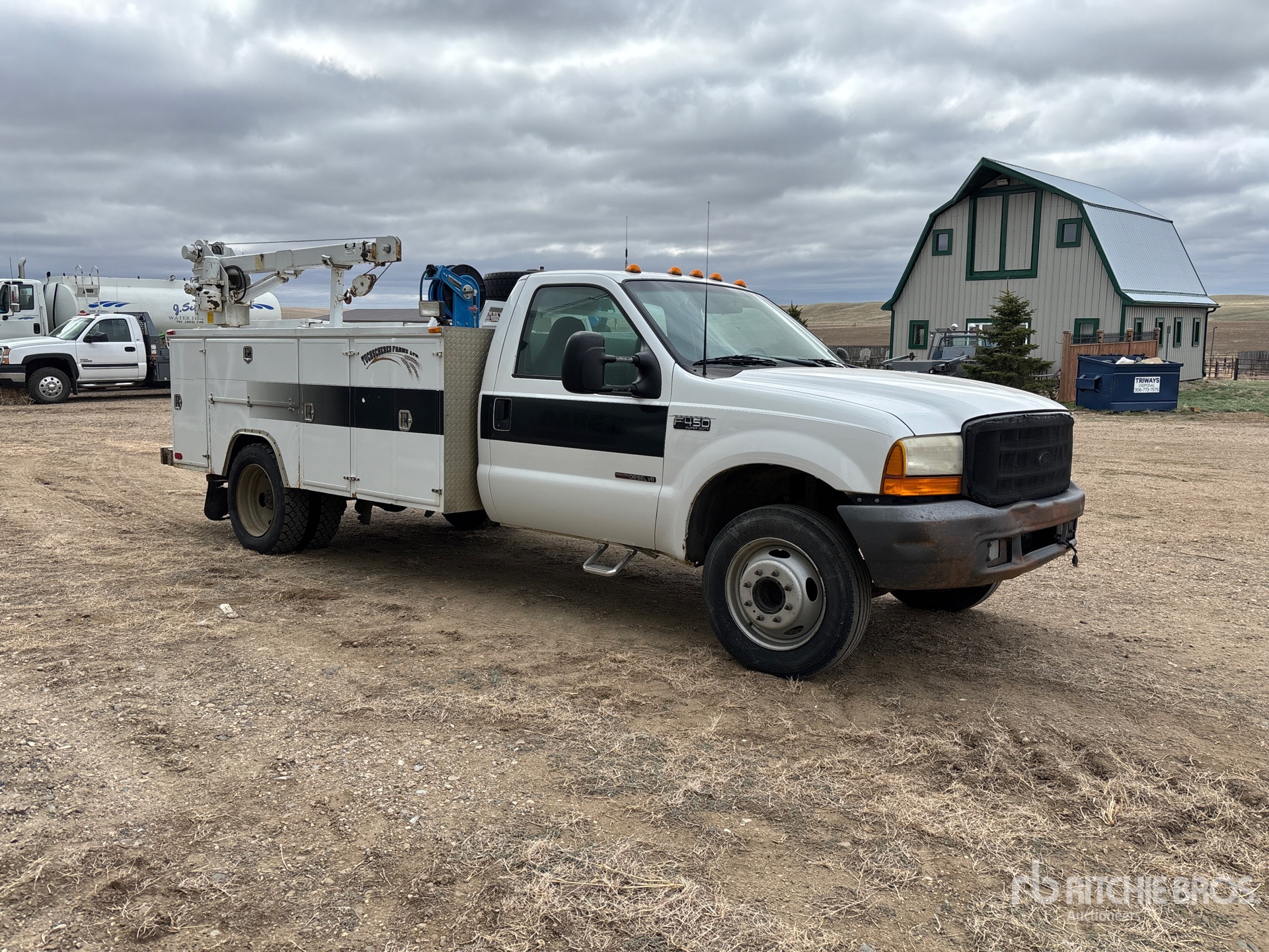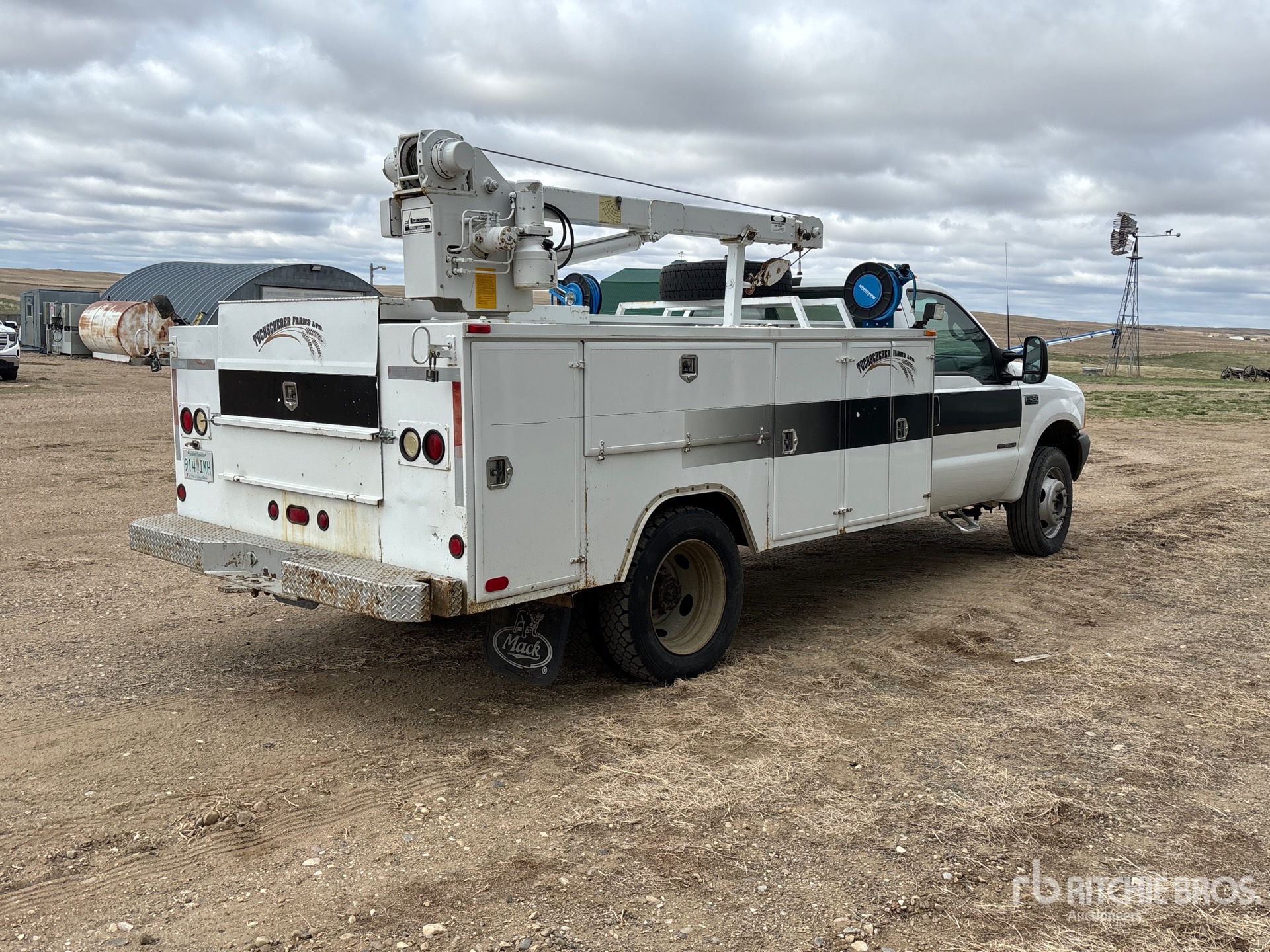 Moteur diesel 7,3 L, boîte manuelle 5 vitesses, pneus avant 225/70R19.5, pneus arrière 225/70R19.5, suspension à ressorts, empattement de 4,17 m (164 po), longueur de caisse de 3,35 m (11 pi), grue Liftmoore 3200 à 2 sections de 1 588 kg (3 500 lb)