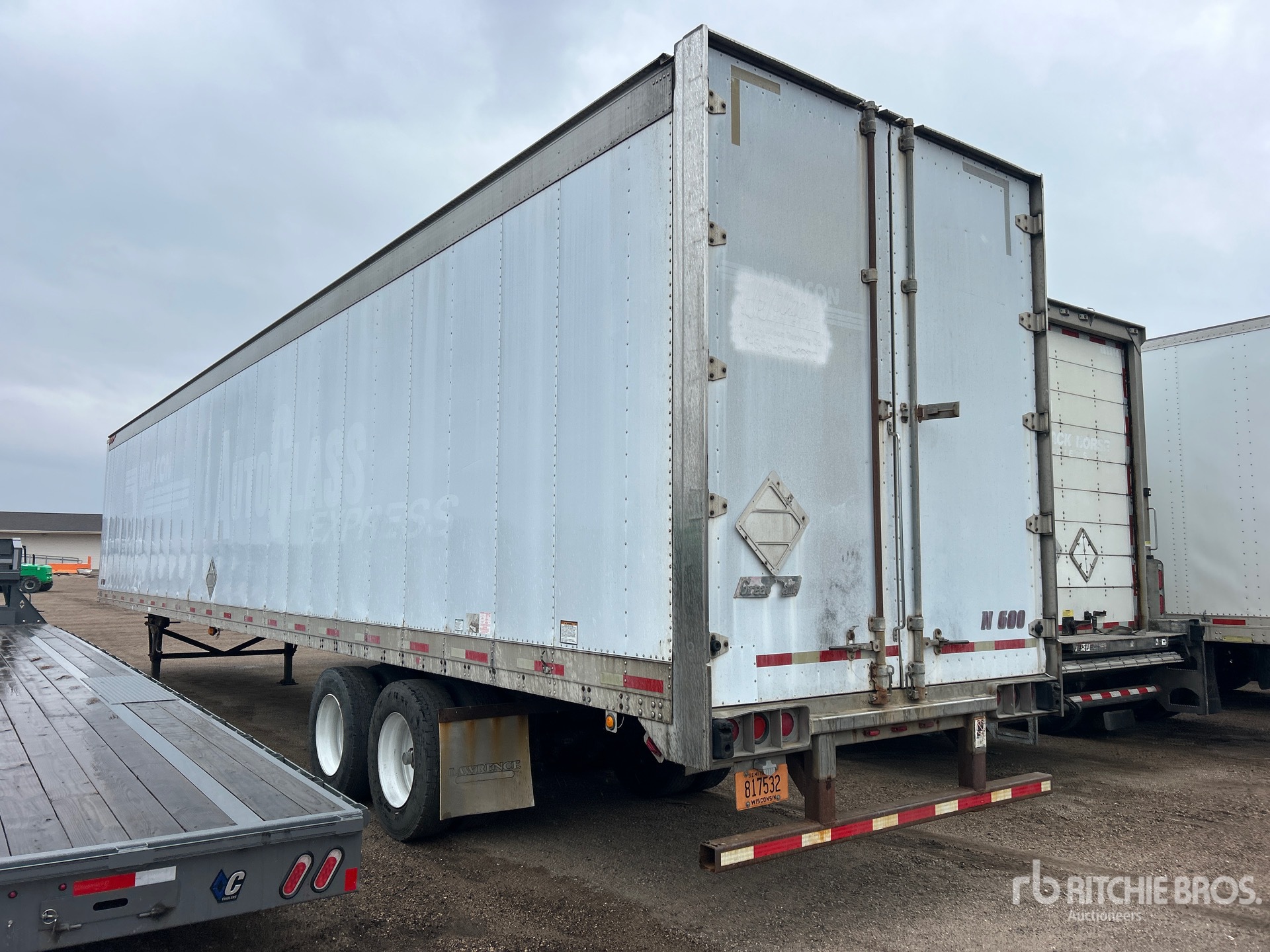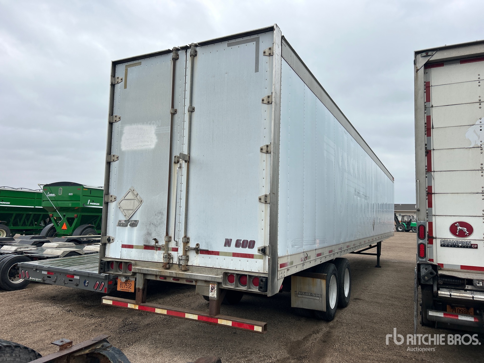 Cadre combiné aluminium/acier, suspension pneumatique coulissante, plancher de bois franc, porte battante, pneus 295/75R22.5