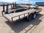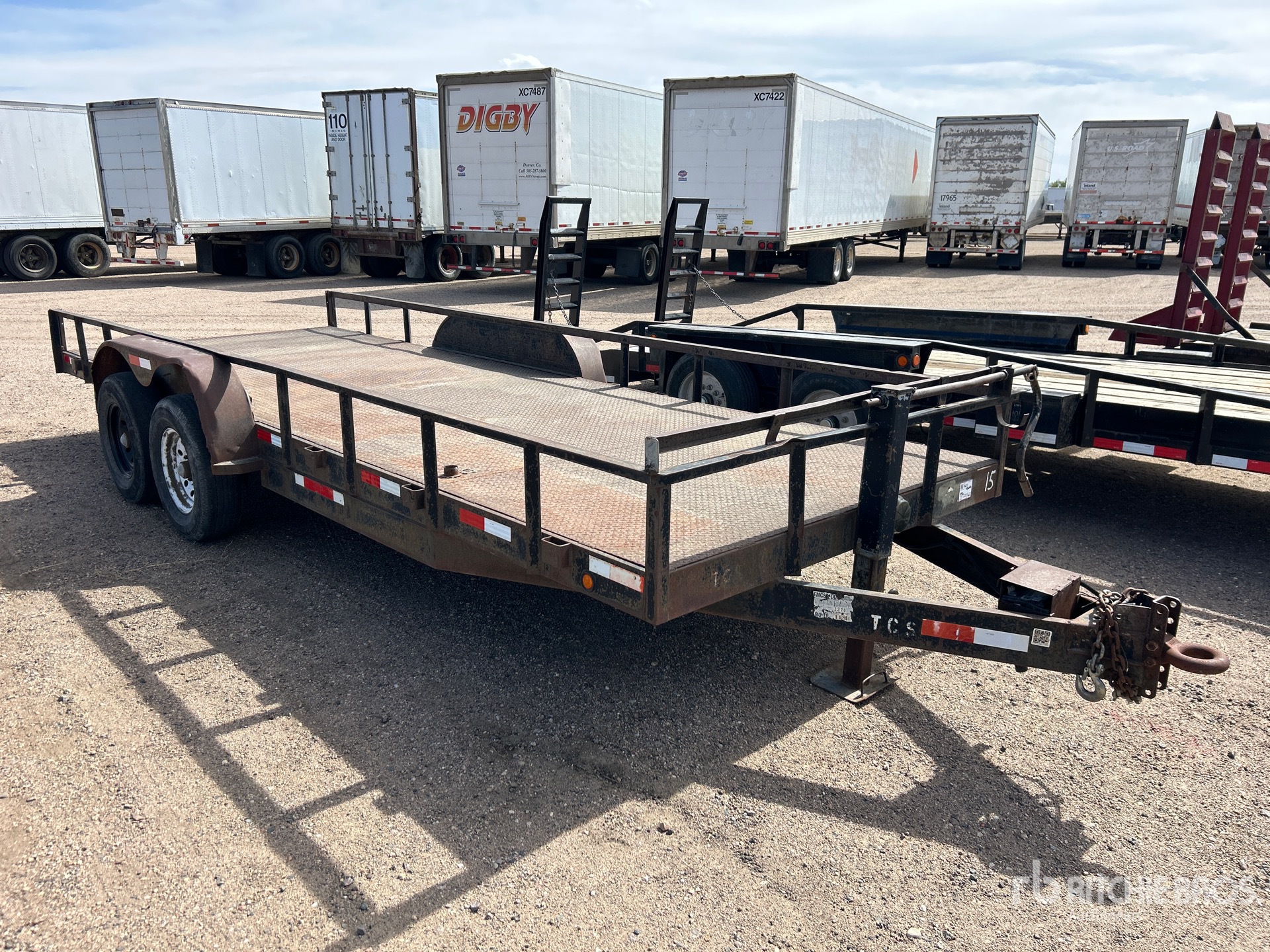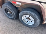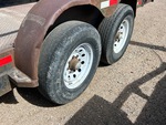 Situé sur la voie 23, emplacement 8, attelage à anneau Lunette, suspension à ressorts, largeur de plateau de 84 pouces, largeur hors tout de 84 pouces, plateau en acier, pneus 235/80R16