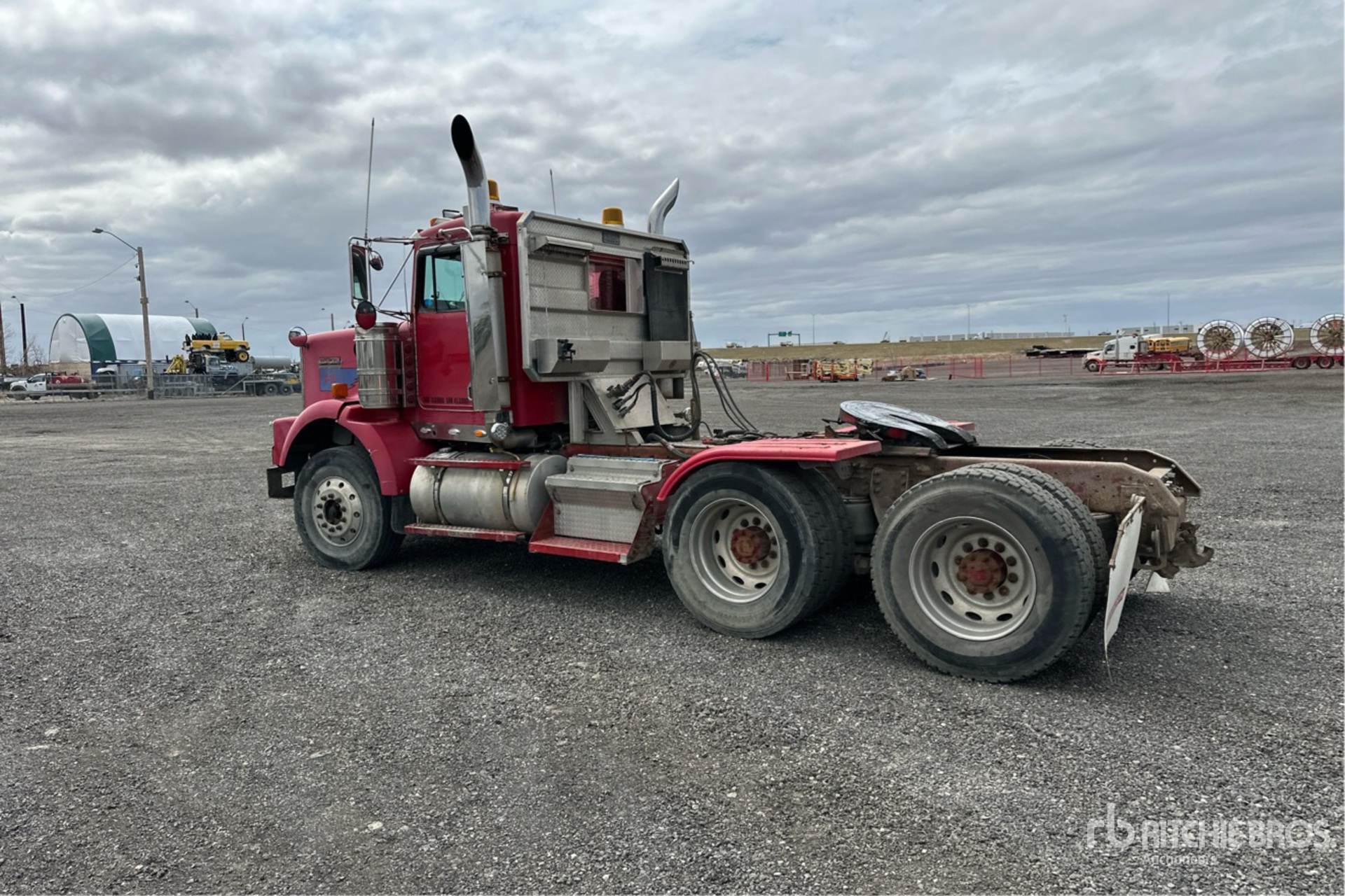 Moteur Cat 3406 de 475 ch, boîte manuelle Eaton Fuller RTLO-18718B à 18 rapports, essieu avant de 6 378 kg, essieu arrière de 20 868 kg, PTAC de 27 188 kg, frein moteur, double blocage de différentiel, empattement de 4,67 m, suspension pneumatique, jantes en aluminium, pneus avant 315/80R22.5, pneus arrière 11R24.5, direction double, système hydraulique, sellette d'attelage coulissante pneumatique, porte-bagages de cabine