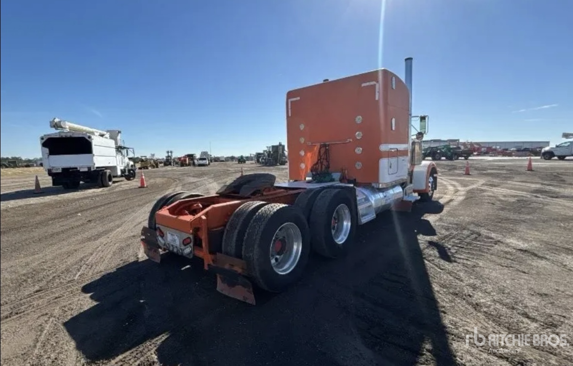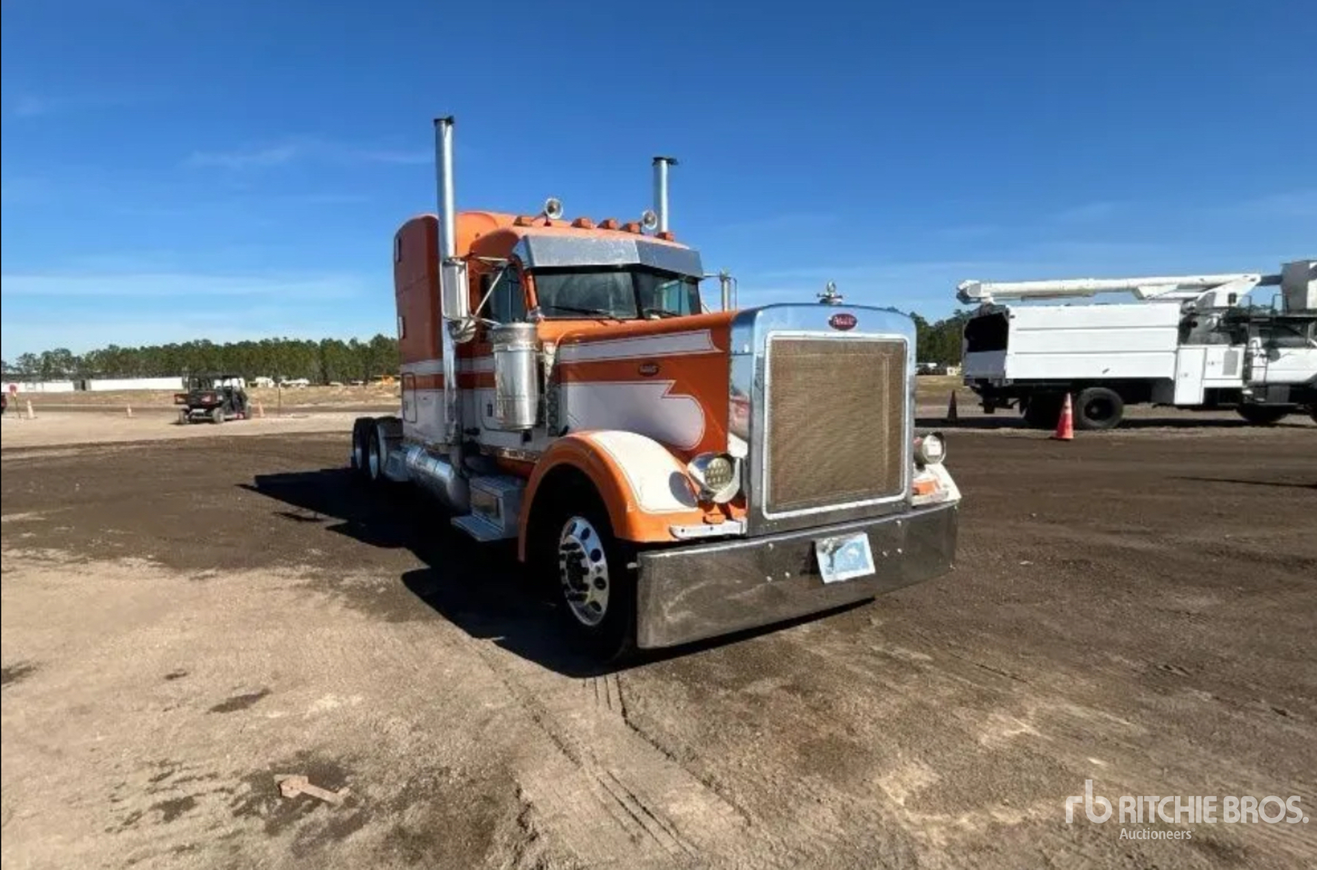 Moteur Cummins, transmission manuelle à 15 vitesses, essieu avant de 5 443 kg (12 000 lb), essieux arrière de 16 332 kg (36 000 lb), PTAC de 21 772 kg (48 000 lb), frein moteur, blocage de différentiel, cabine couchette à toit surélevé de 160 cm (63 po), empattement de 671 cm (264 po), suspension pneumatique, jantes en aluminium, pneus avant 275/80R22.5, pneus arrière 11R22.5, sellette d'attelage coulissante pneumatique, deux réservoirs de carburant