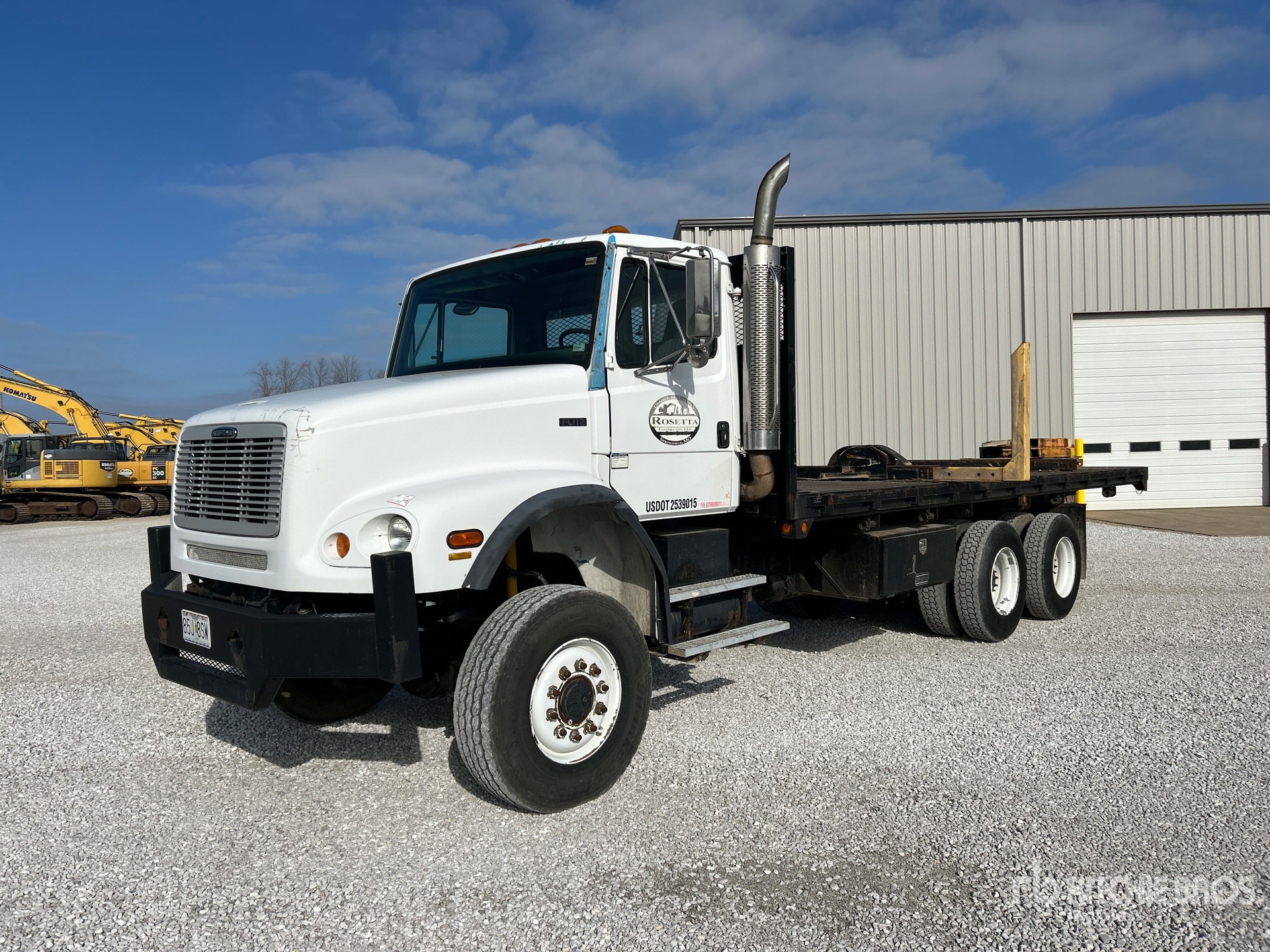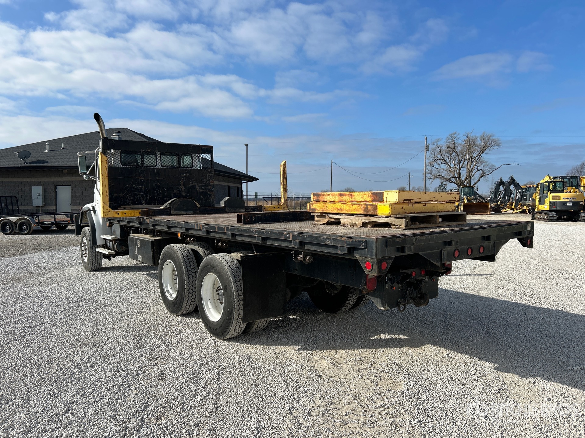 Moteur diesel Cummins ISM 6 cylindres, 8 066 heures de fonctionnement, transmission automatique Allison, double blocage de différentiel, essieu avant de 8 165 kg, essieux arrière de 18 144 kg, PTAC de 26 300 kg, pneus avant 315/80R22.5, pneus arrière 11R22.5, suspension Chalmers, empattement de 5,81 m, benne de 7,32 m x 2,54 m, attelage à anneau