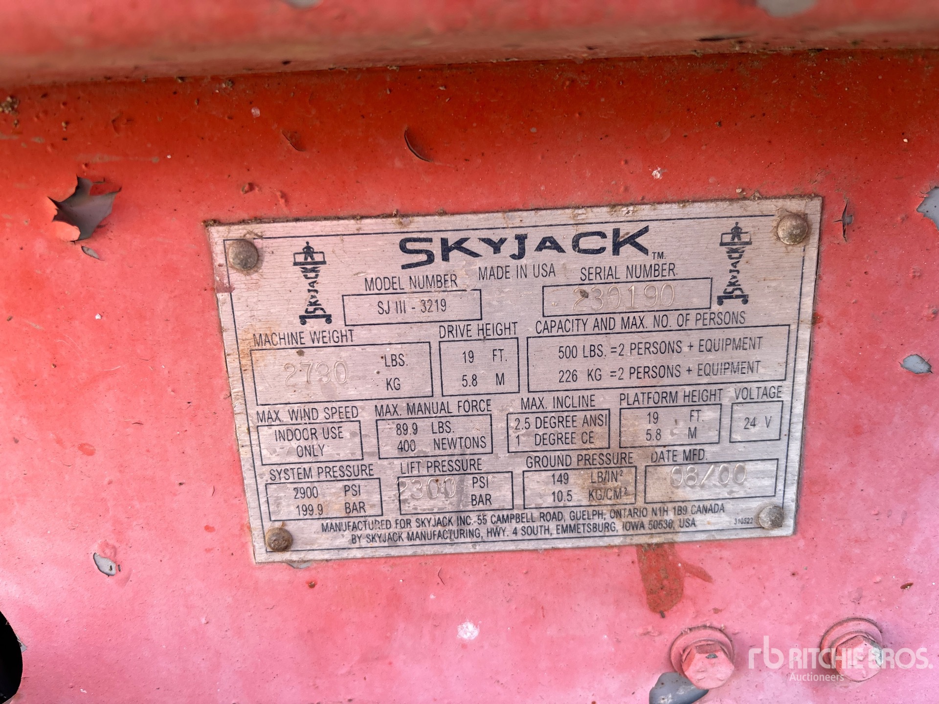 2000 Skyjack SJIII-3219 Electric Plateforme élévatrice à ciseaux