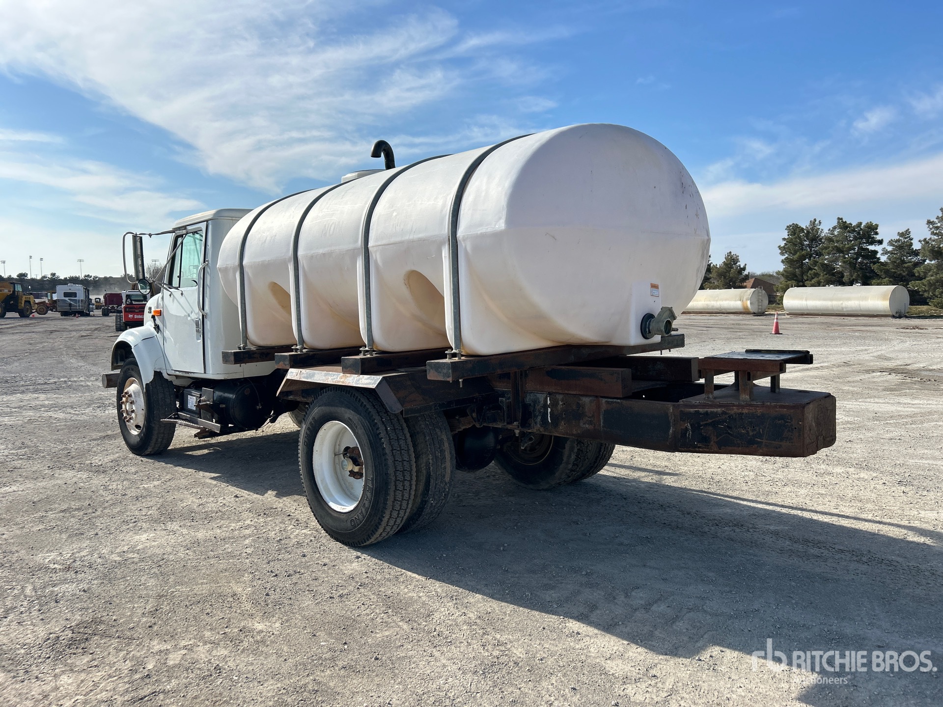 Moteur diesel 6 cylindres, boîte de vitesses manuelle à 5 rapports, pneus 11R22.5, suspension à ressorts, empattement de 386 cm (152 pouces), réservoir en polyéthylène de 757 litres (2000 gallons).
