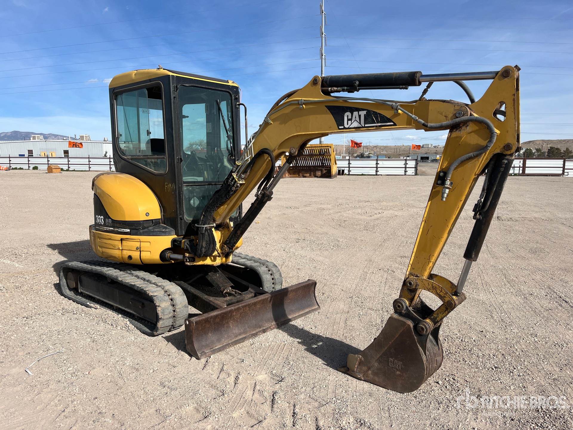 Cabine fermée, flèche pivotante, bras de 1,27 m, circuit hydraulique auxiliaire, lame de remblayage, chenilles en caoutchouc de 30,5 cm, godet de terrassement de 33 cm