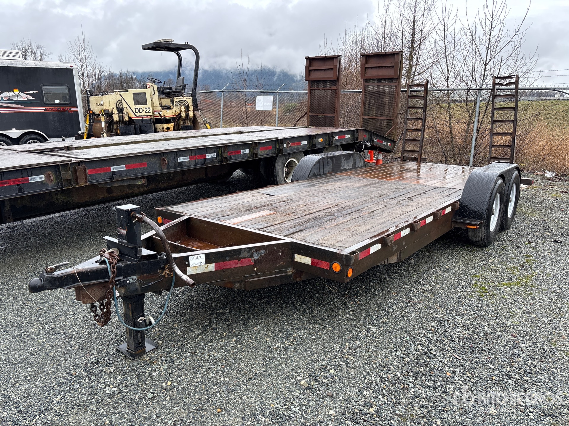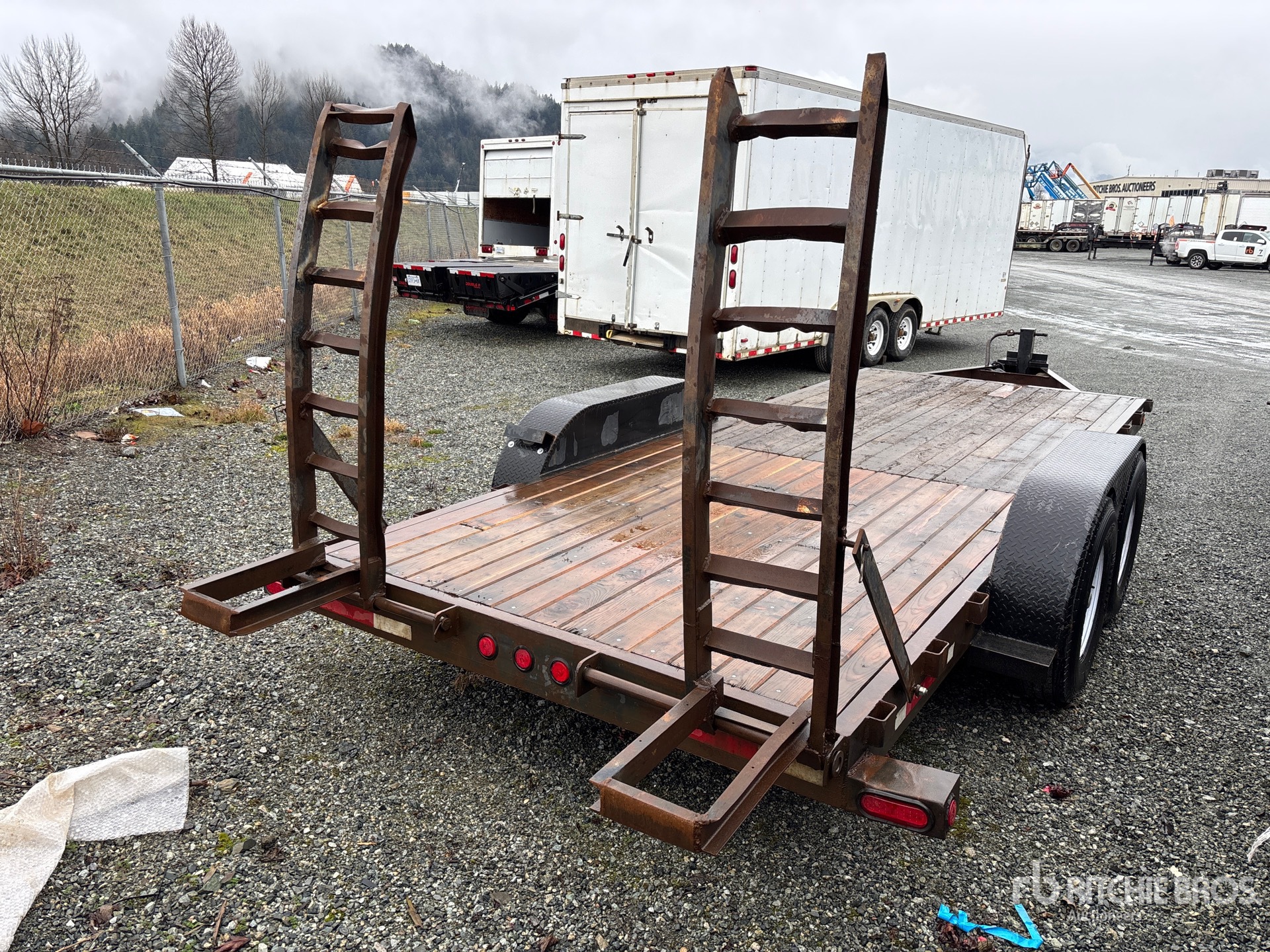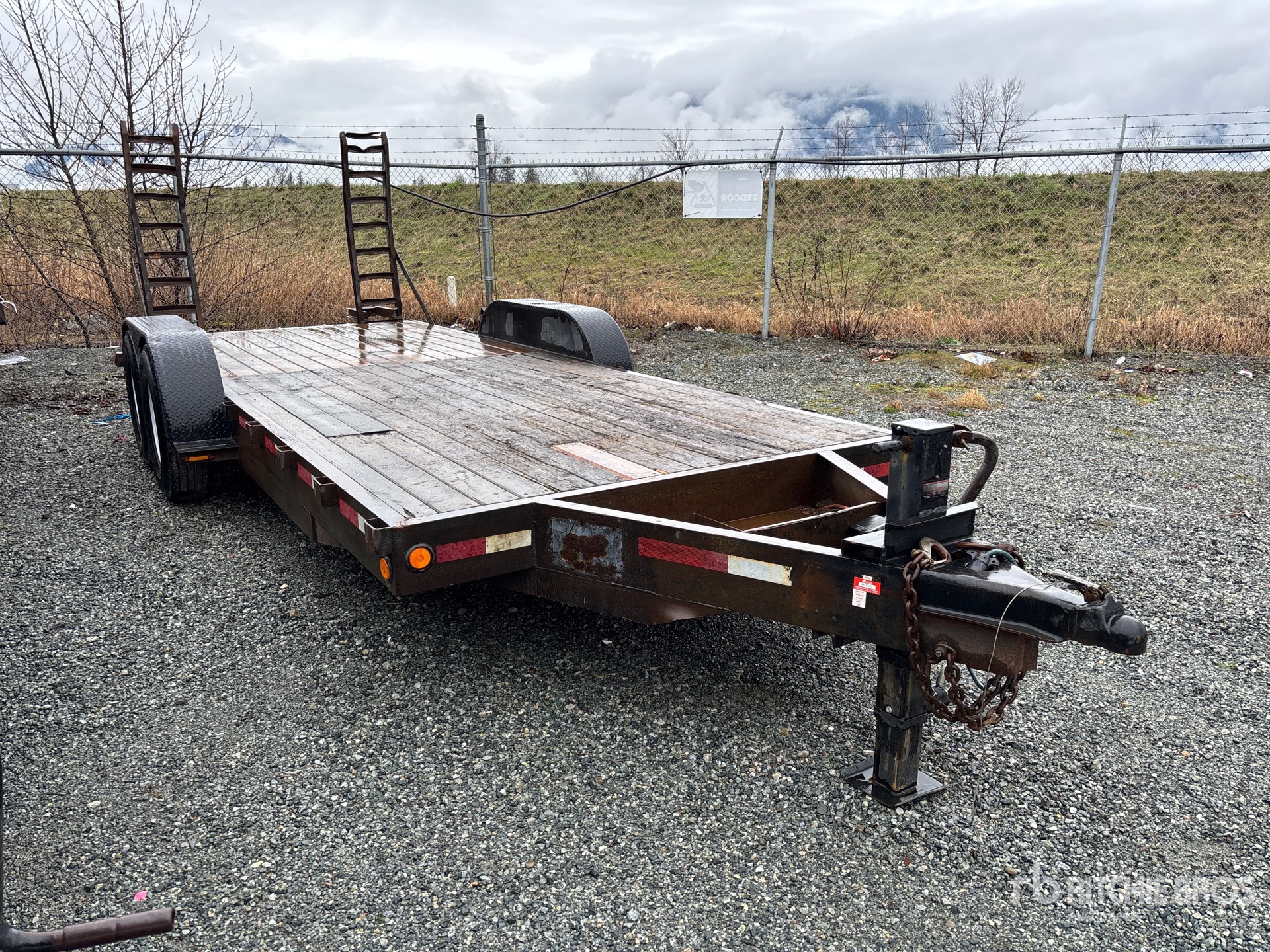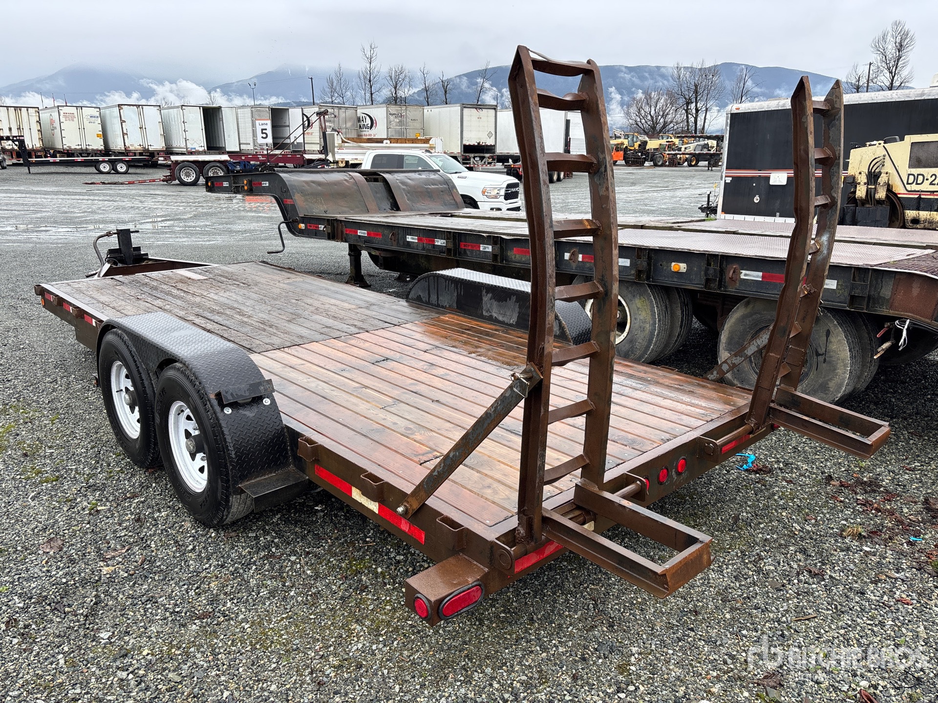 Attelage à boule, suspension à balancier, freins électriques, largeur totale du plateau de 79,5 po, rampes manuelles, plancher en bois, pneus 235/85R16