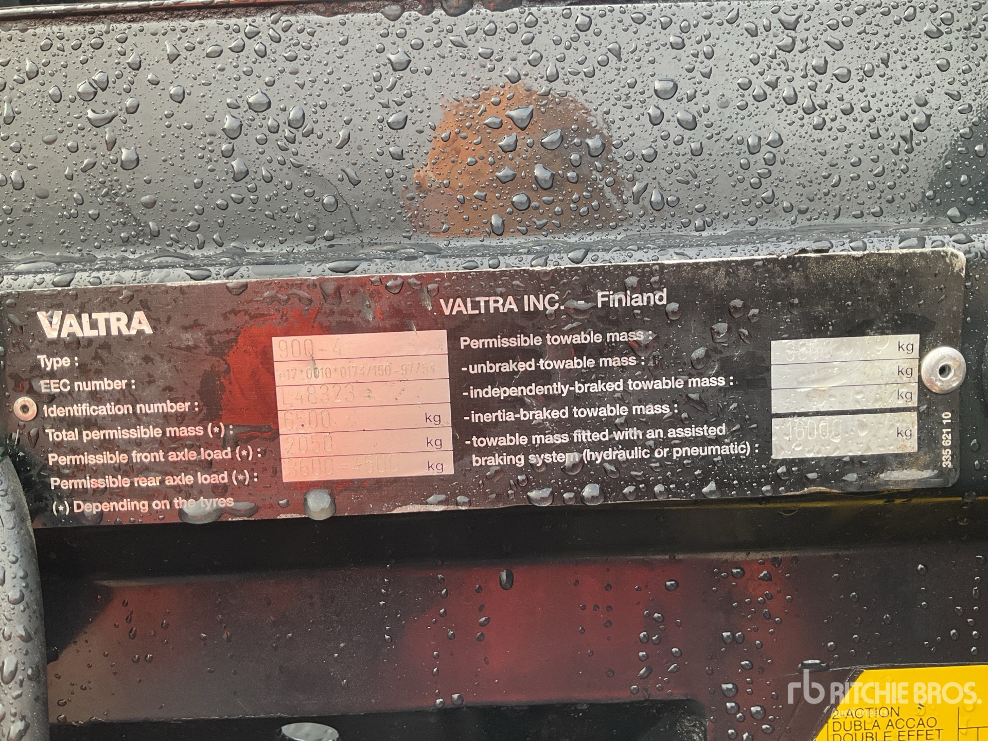 Les Informations détaillées de l’équipement sont d’une portée limitée, et les Encans Ritchie Bros. n’ont inspecté aucun autre aspect ou composant de l’équipement que ceux présentés expressément. Sauf indication précise, nous n’offrons aucune représentation ou garantie, officielle ou implicite, sur l’équipement ou ses composants, sans aucune limite de représentation ou de garantie en ce qui concerne la fonctionnalité, la conformité à toute norme de sécurité ou l’exigence de toute autorité ou agence de régulation en vigueur, l’adaptation à un quelconque usage, ou la valeur commerciale. Il vous est fortement conseillé d’effectuer votre propre inspection détaillée de l’équipement avant d’enchérir.