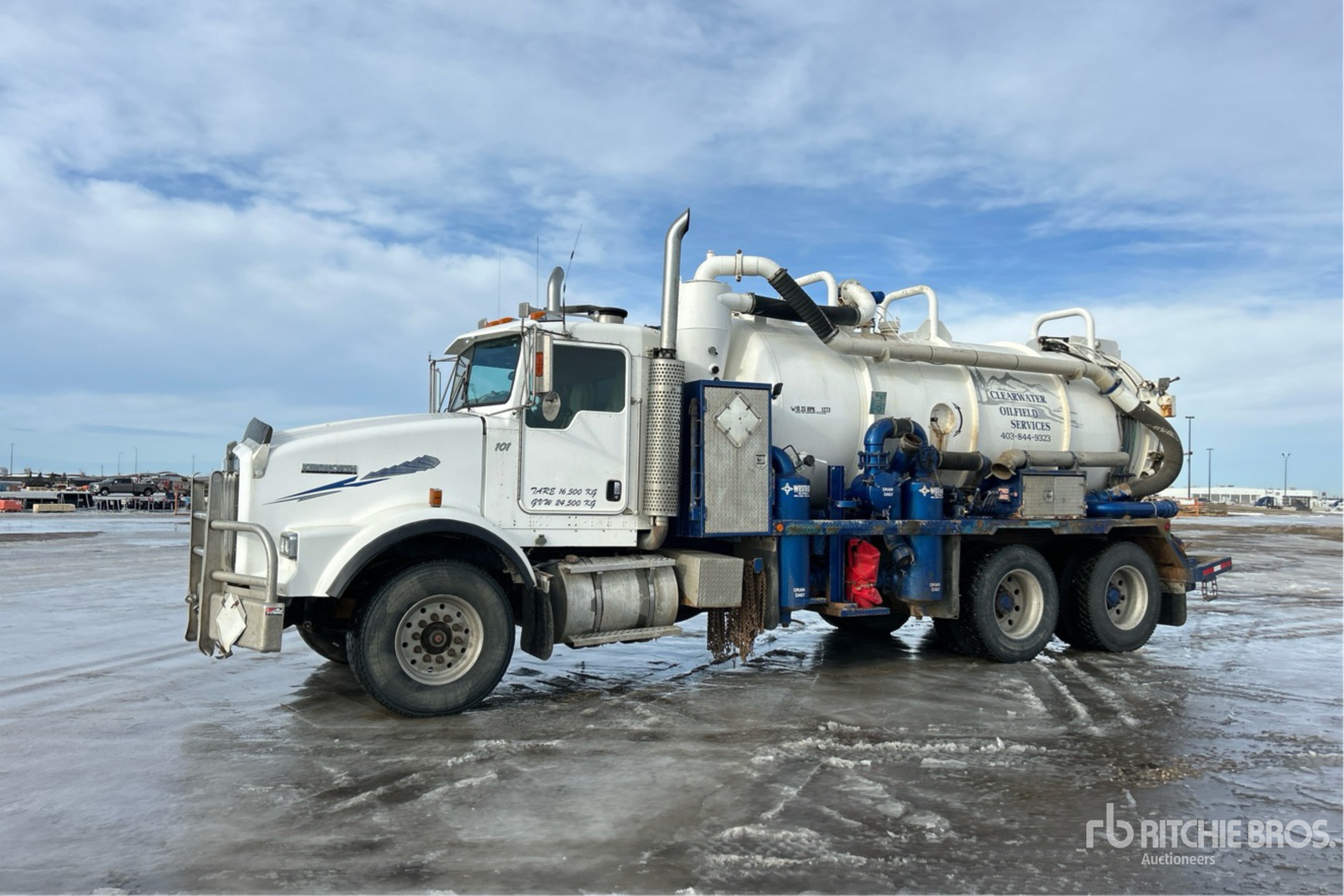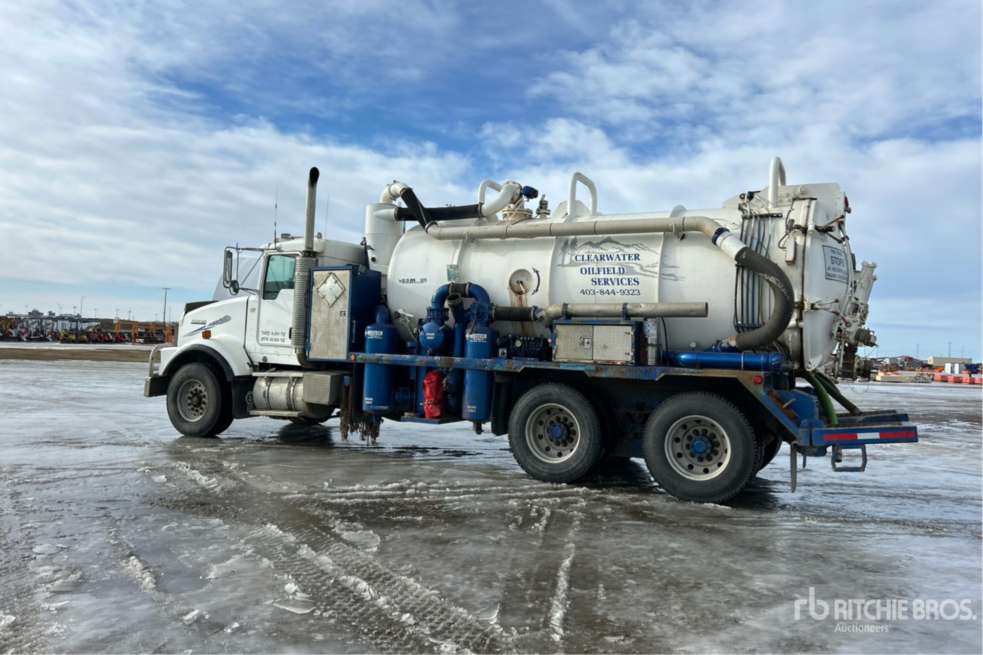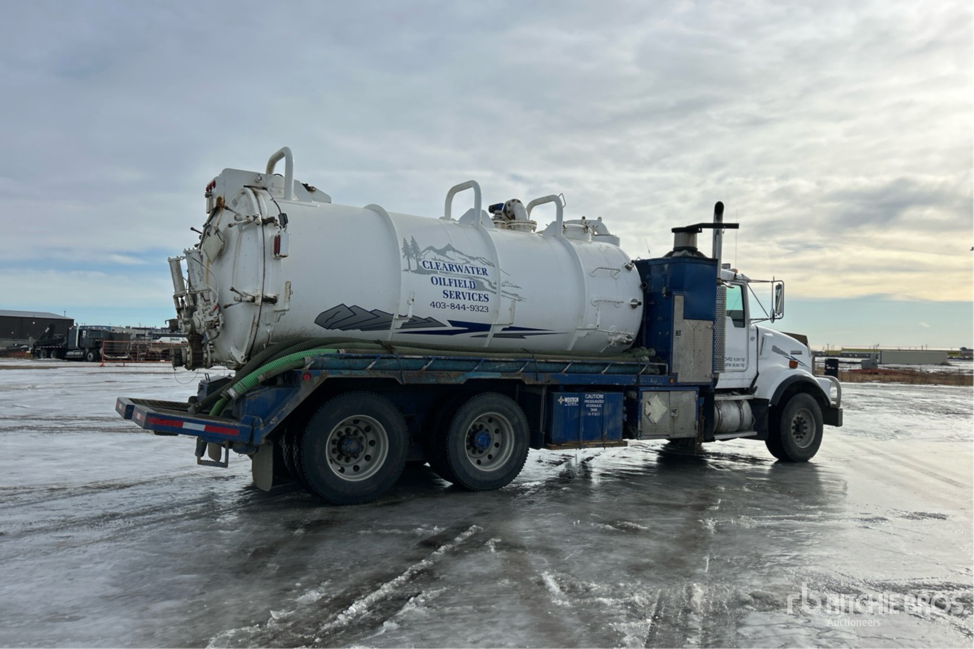 Moteur diesel Cat C15 6 cylindres 14,6 L 475 ch, soupape d'arrêt d'air positive, 8 757 heures moteur, frein moteur, boîte de vitesses manuelle Eaton Fuller 18 rapports, double blocage de différentiel, essieu avant 9 030 kg, essieux arrière 20 860 kg, PTAC 29 840 kg, jantes en aluminium, pneus avant 385/65R22.5, pneus arrière 11R24.5, double direction, châssis renforcé, suspension à balancier Hendrickson Haulmaax avec silentblocs en caoutchouc, empattement de 6 245 mm, prise de force, cuve à déchets en acier de 11 615 L, code TC350, treuil, vibrateur, enrouleur de tuyau arrière, réservoir d'eau propre de 2 000 L, hayon à ouverture totale, système de lavage, verrouillage manuel du hayon, pompe à prise de force Cat 3560, souffleur Hibon 820XL, 750 000 BTU chaudière
