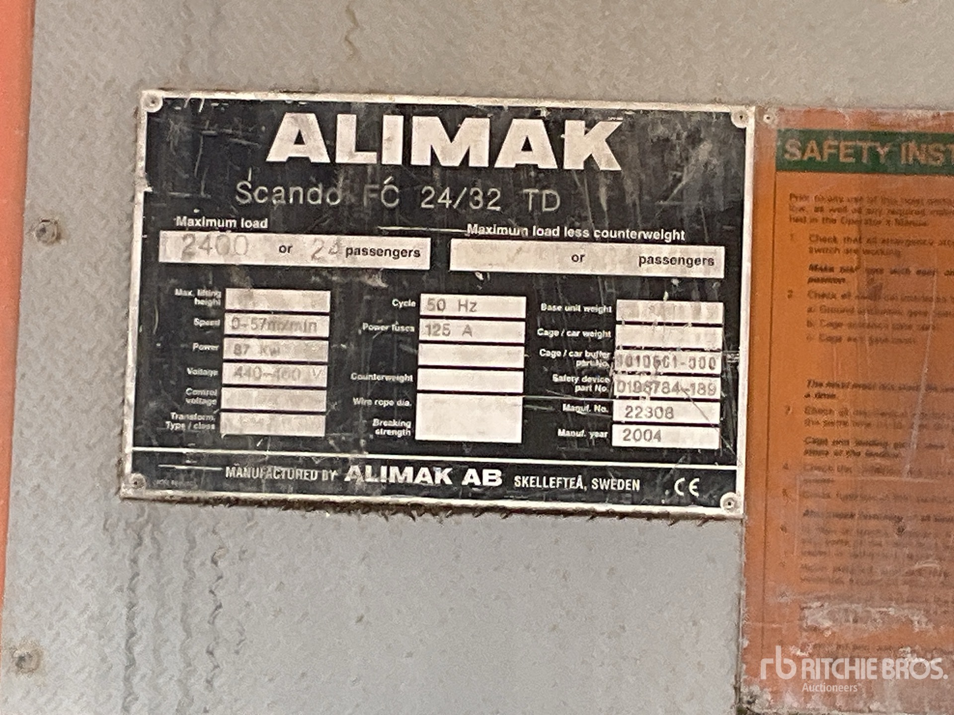 Les Informations détaillées de l’équipement sont d’une portée limitée, et les Encans Ritchie Bros. n’ont inspecté aucun autre aspect ou composant de l’équipement que ceux présentés expressément. Sauf indication précise, nous n’offrons aucune représentation ou garantie, officielle ou implicite, sur l’équipement ou ses composants, sans aucune limite de représentation ou de garantie en ce qui concerne la fonctionnalité, la conformité à toute norme de sécurité ou l’exigence de toute autorité ou agence de régulation en vigueur, l’adaptation à un quelconque usage, ou la valeur commerciale. Il vous est fortement conseillé d’effectuer votre propre inspection détaillée de l’équipement avant d’enchérir.