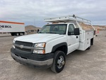Moteur à essence V8 de 6,0 L, homologué EPA 2004, transmission automatique, pneus 215/85R16, suspension à ressorts, empattement de 162 pouces, benne de 12 pieds x 96 pouces