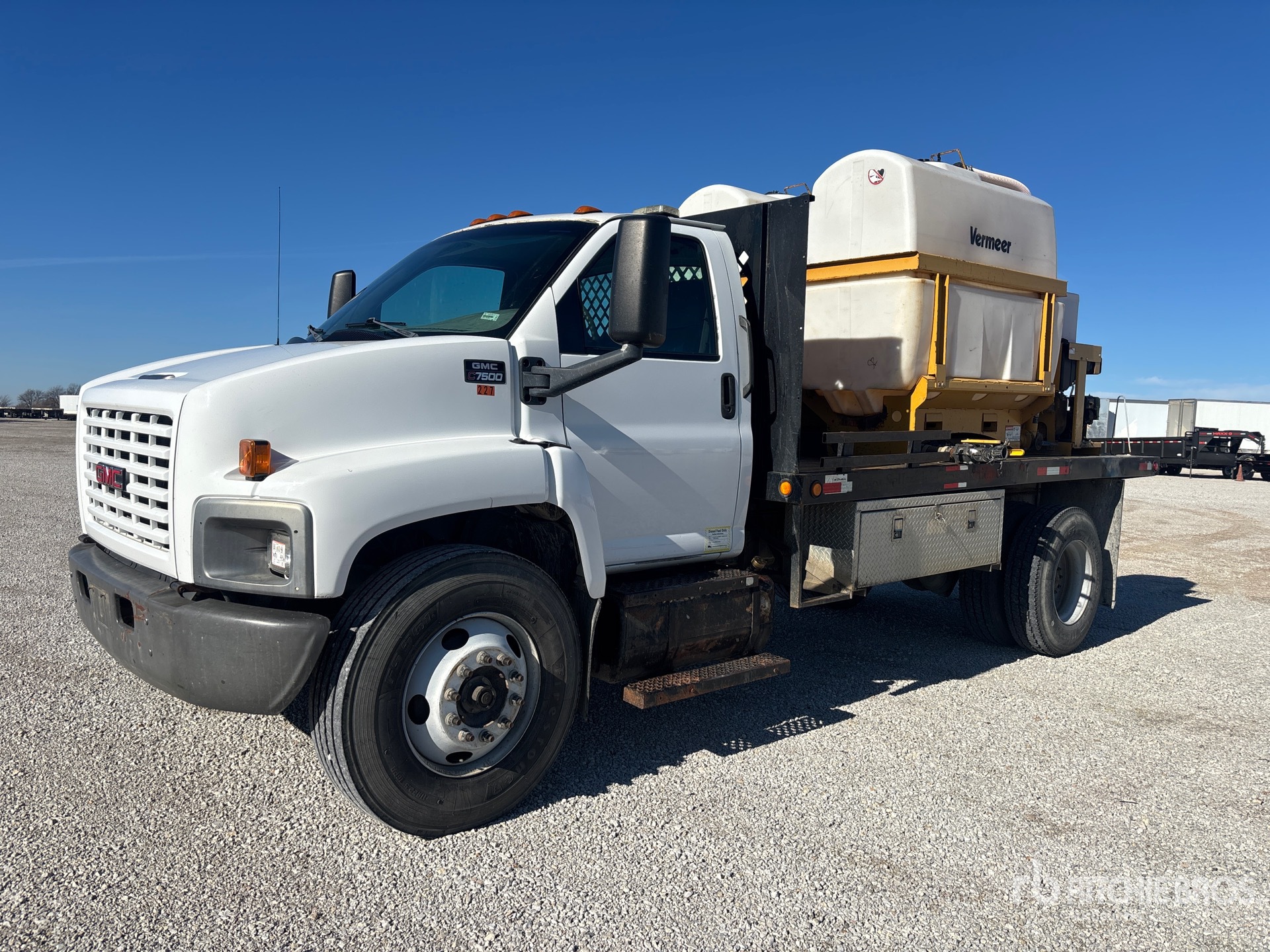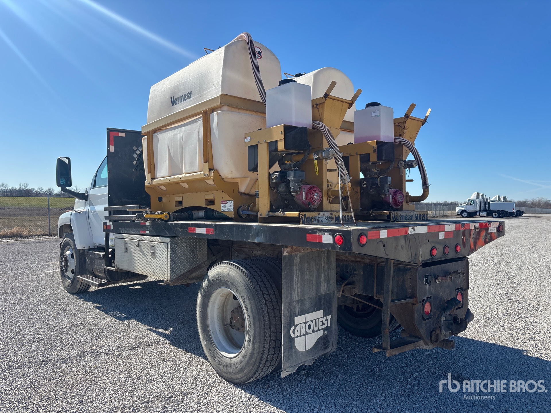 Moteur diesel 6 cylindres Caterpillar, transmission automatique, essieu avant de 5443 kg, essieux arrière de 9525 kg, PTAC de 1499 kg, pneus 11R22.5, suspension à ressorts, empattement de 4,93 m, benne de 4,67 m x 2,44 m, station de mélange de boue Vermeer MX125 montée sur la benne