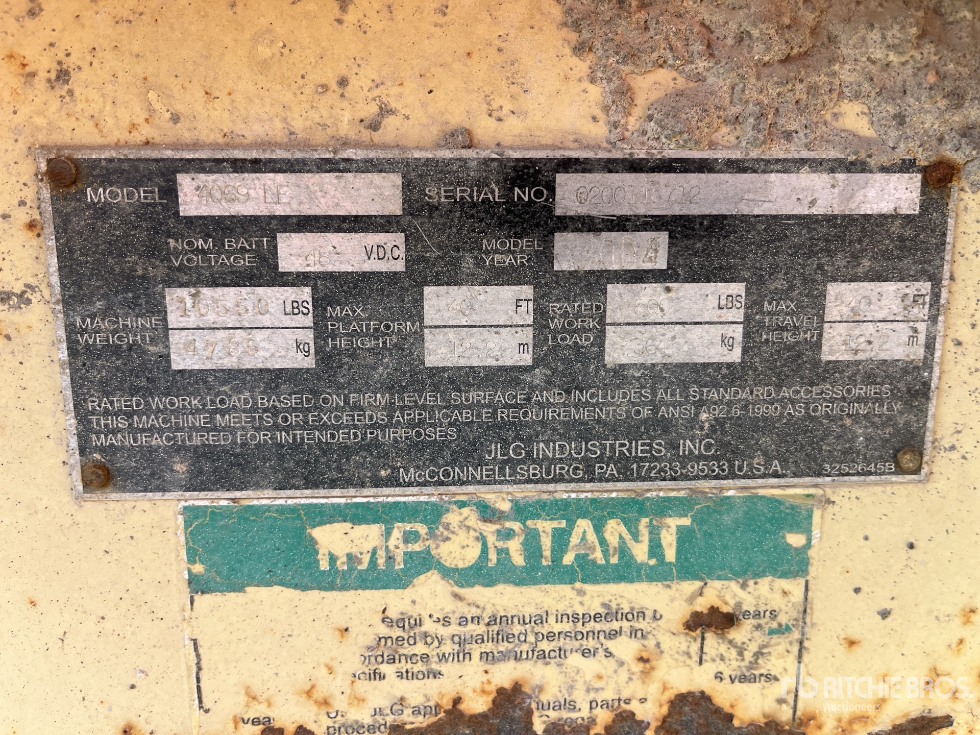 Hauteur maximale de la plateforme : 40 pi, capacité de charge maximale : 800 lb, rallonge de la plateforme, alimentation électrique, pneus non marquants, boîtier de commande supérieur