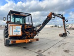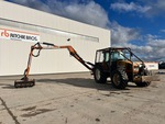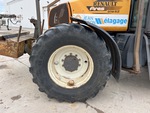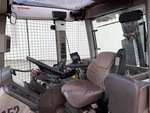 Cabine fermée, climatisation, 32 vitesses avant et arrière, transmission hydrostatique, suspension de cabine, moteur de 156 ch, homologation EPA américaine 2004, masses avant, essieu avant suspendu, 3 distributeurs hydrauliques arrière, commandes extérieures d'attelage 3 points, attelage 3 points, masses arrière, tondeuse Rousseau F10P 1200 mm, pneus avant 540/65R28, pneus arrière 620/70R38, masses de roues arrière