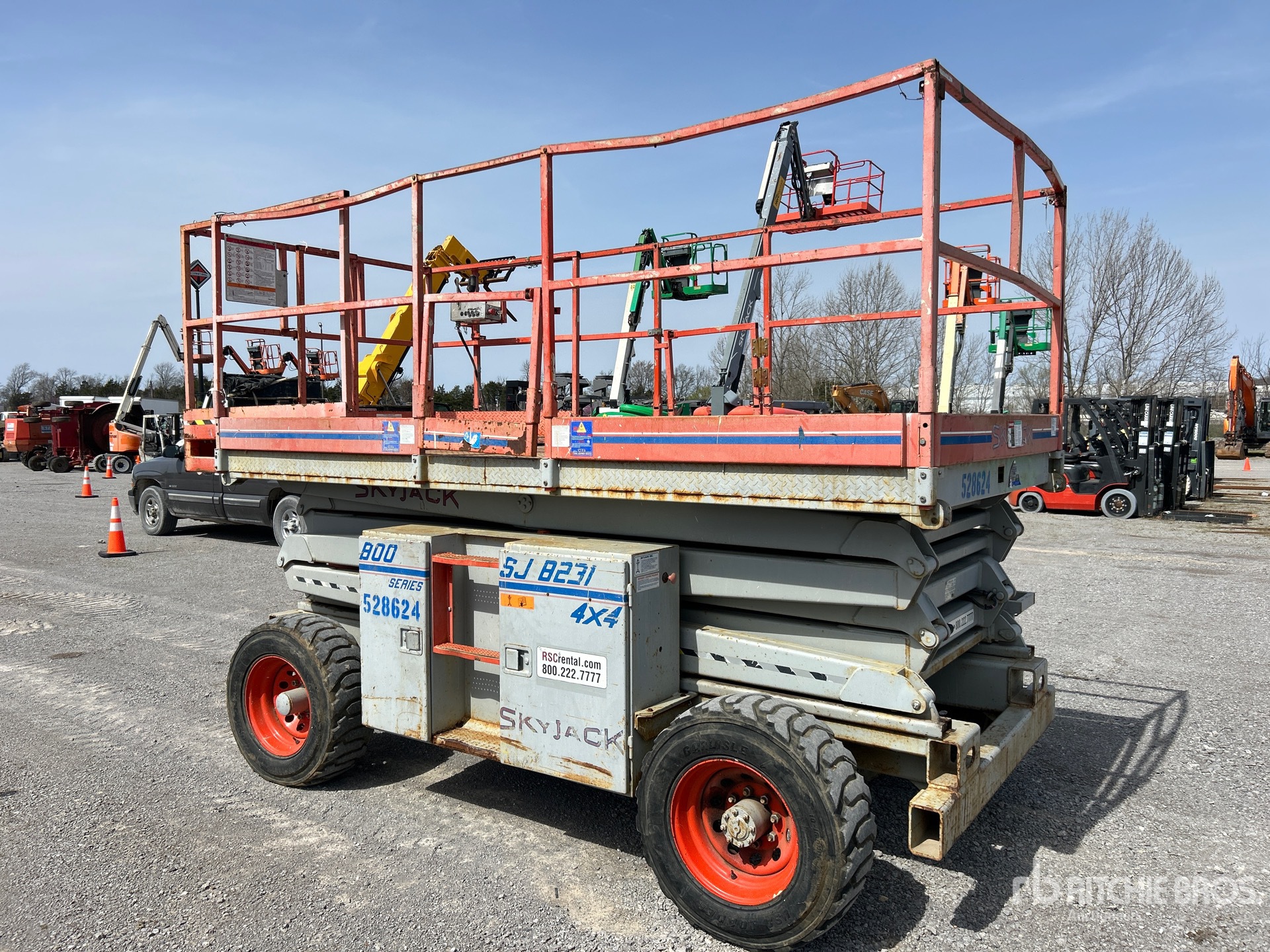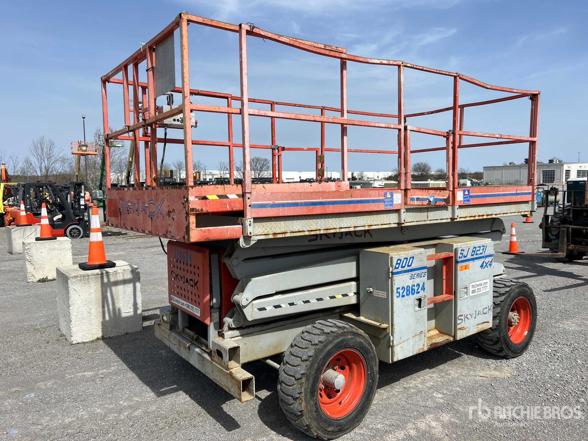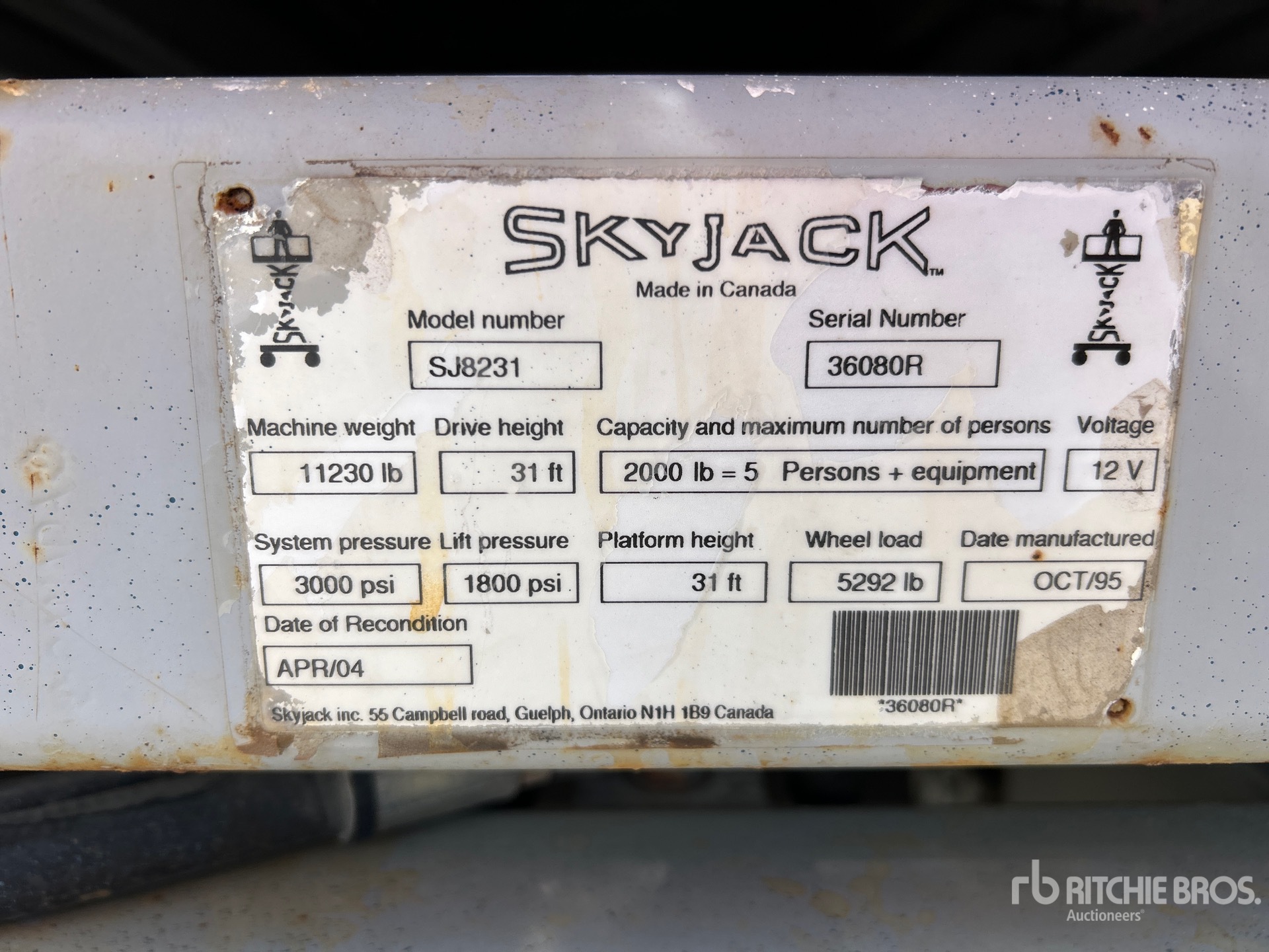 Hauteur maximale de la plateforme : 9,45 m (31 pi), capacité de charge maximale : 907 kg (2 000 lb), rallonge de plateforme, alimentation électrique de la plateforme, pneus remplis de mousse, boîtier de commande supérieur, moteur Kubota DF752 à double carburant