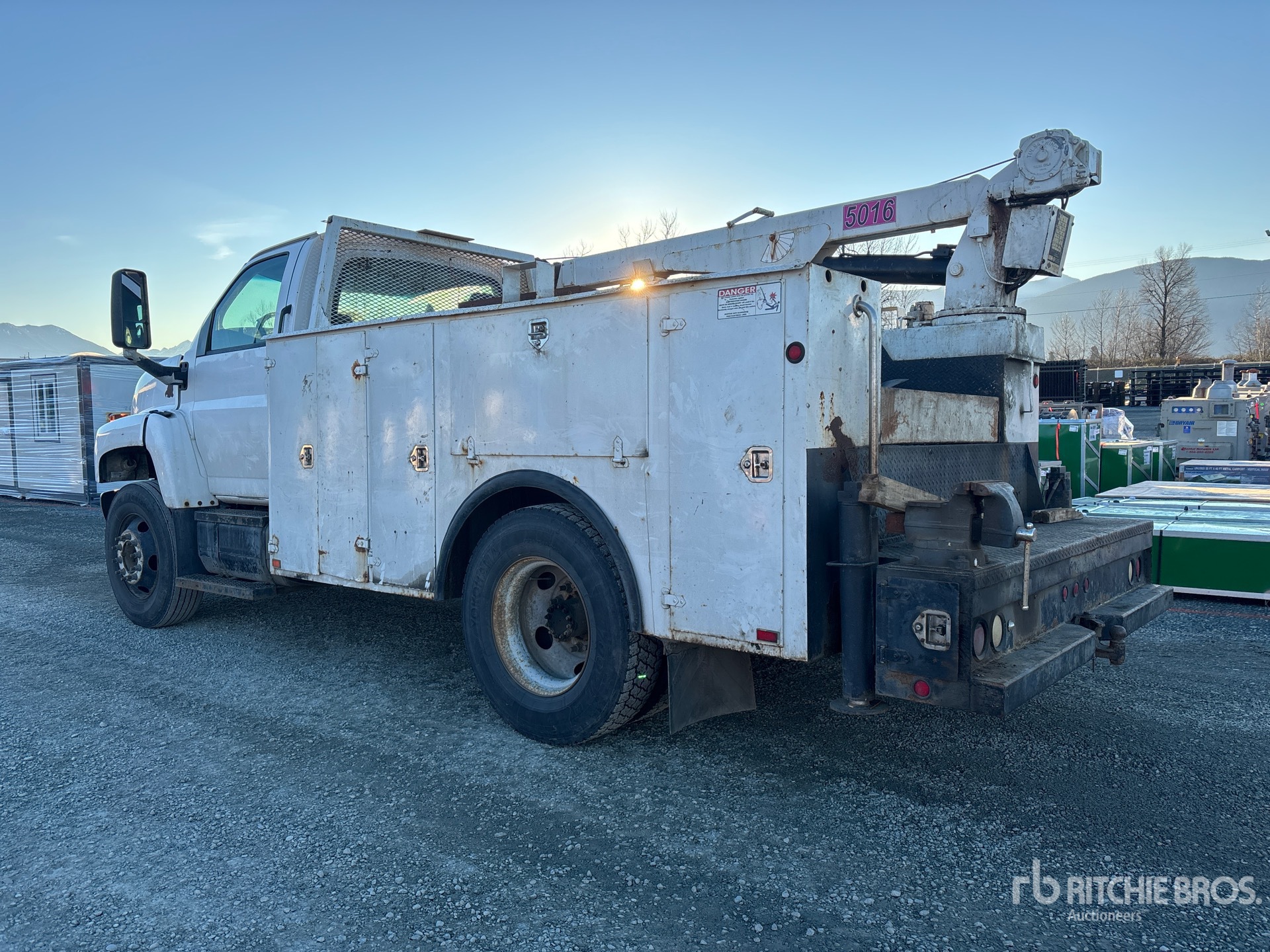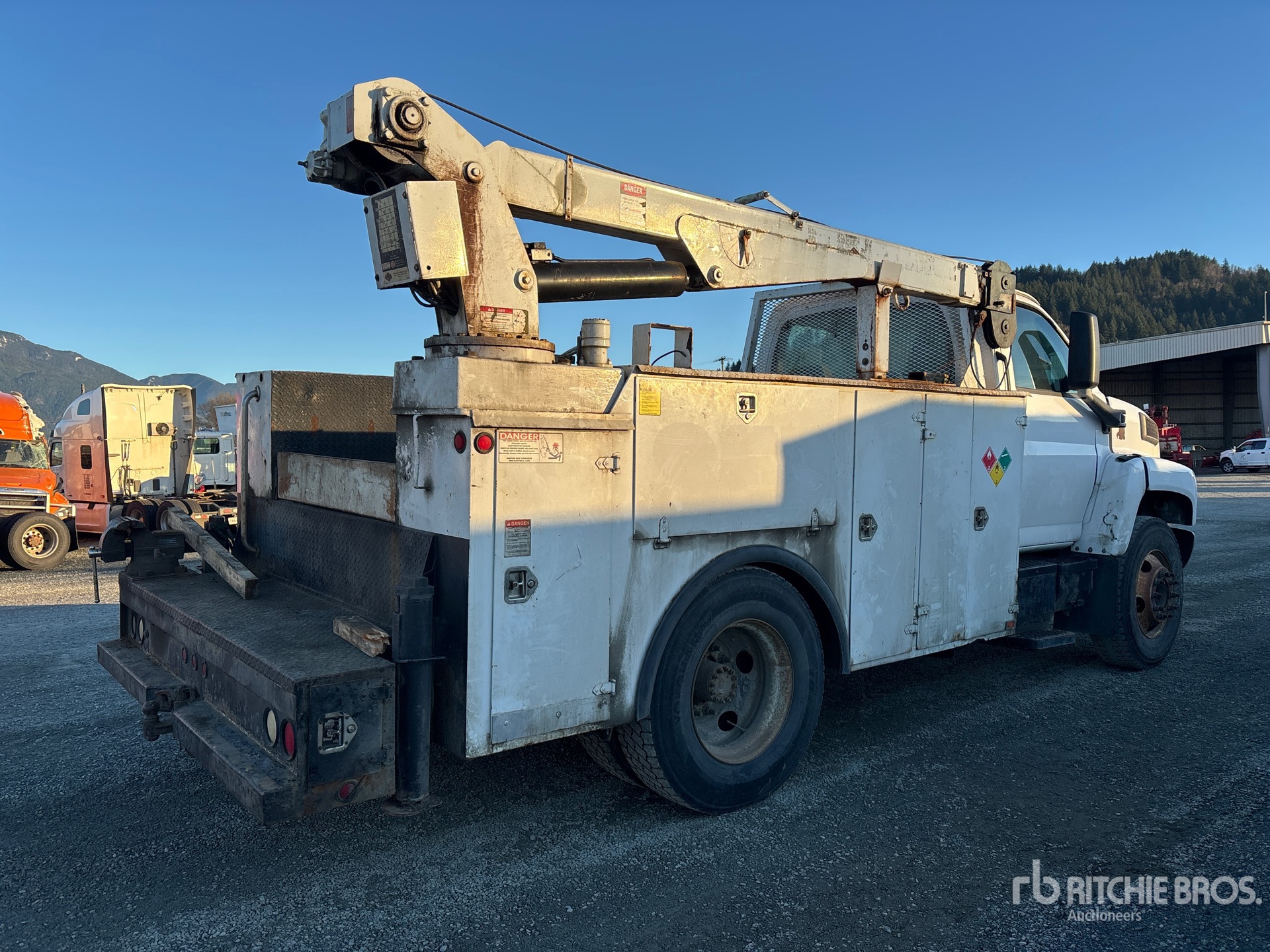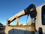 Moteur diesel Caterpillar, transmission manuelle, essieu avant de 3 629 kg, essieux arrière de 4 536 kg, PTAC de 5 300 kg, pneus 295/75R22.5, suspension à ressorts, empattement de 3 890 mm, prise de force, benne de 4 m, stabilisateurs hydrauliques, grue hydraulique IMT 5016 à 3 sections de 3 900 kg