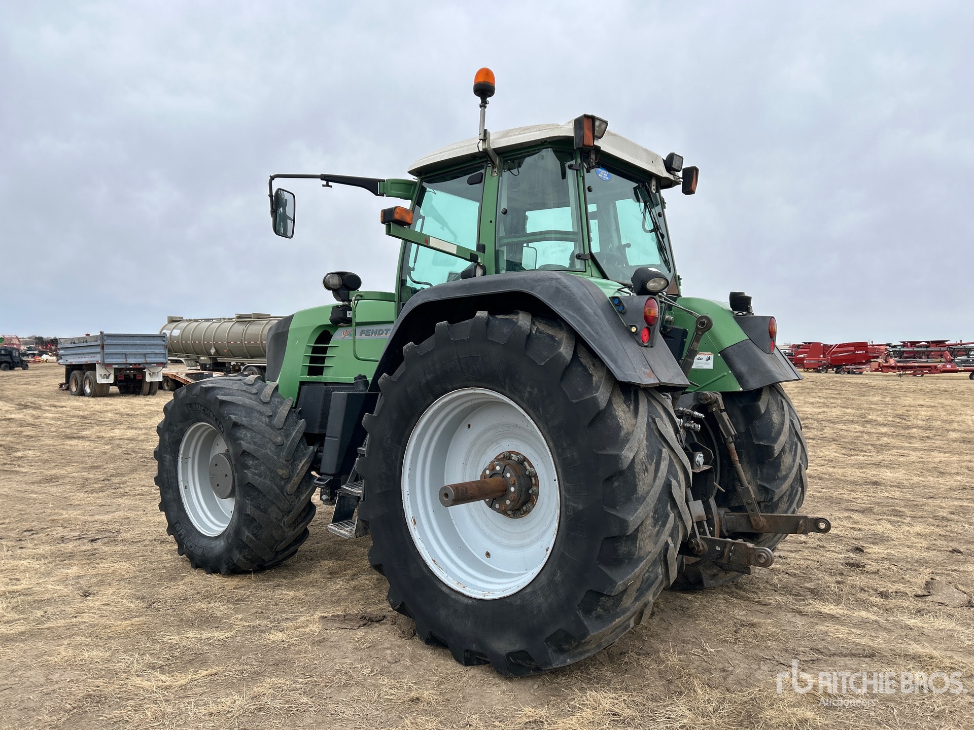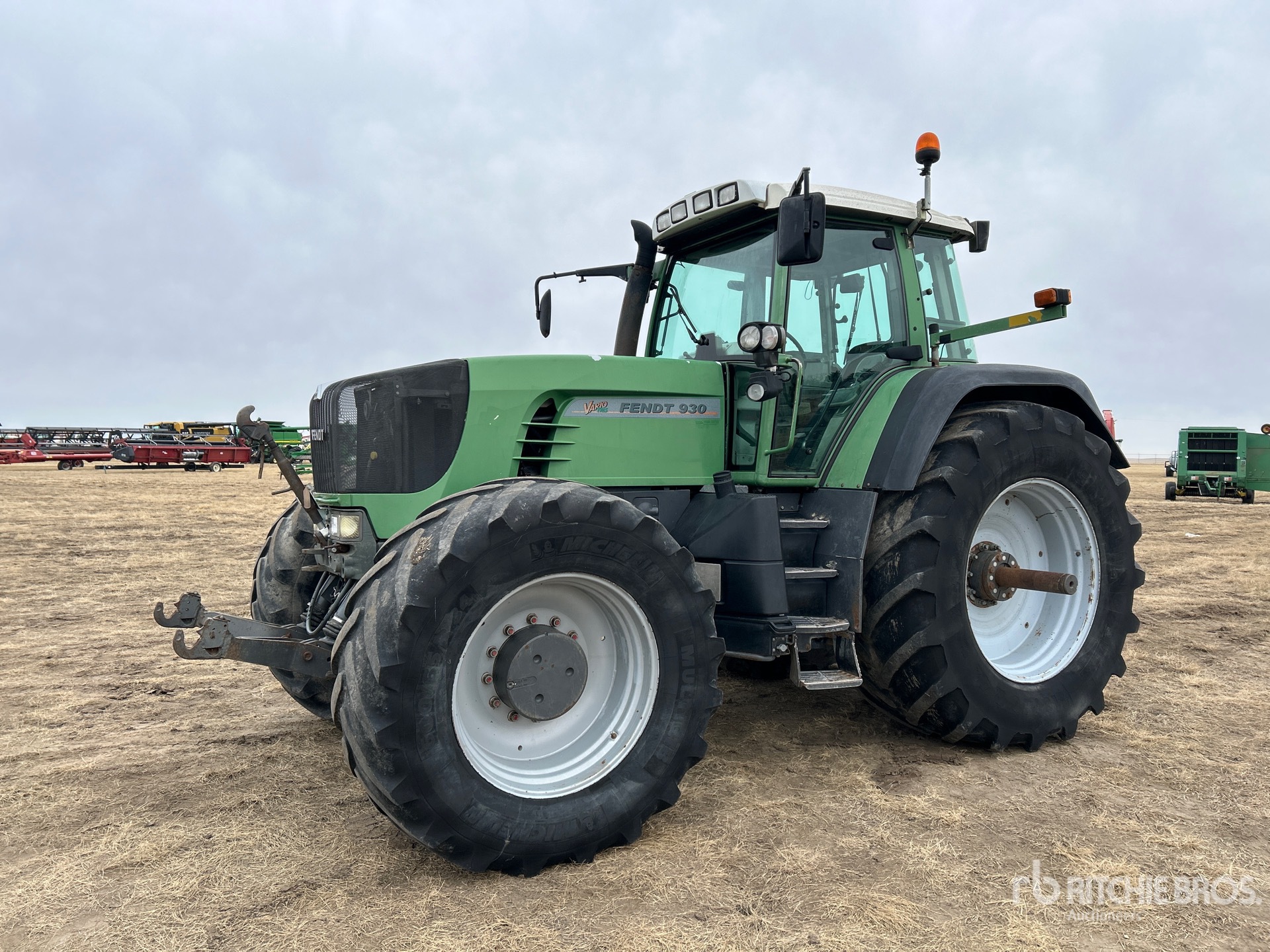 Blocage du différentiel, inverseur gauche, suspension de cabine, attelage rapide avant à 3 points, 4 distributeurs hydrauliques arrière, système Power Beyond, système de freinage pneumatique, commandes extérieures d'attelage à 3 points, prise de force Big 1000, attelage à 3 points, pneus avant 600/65R34, pneus arrière 710/70R42