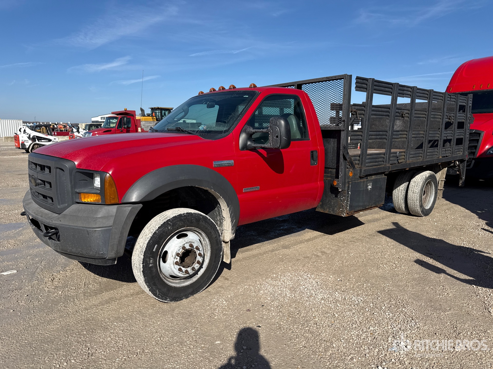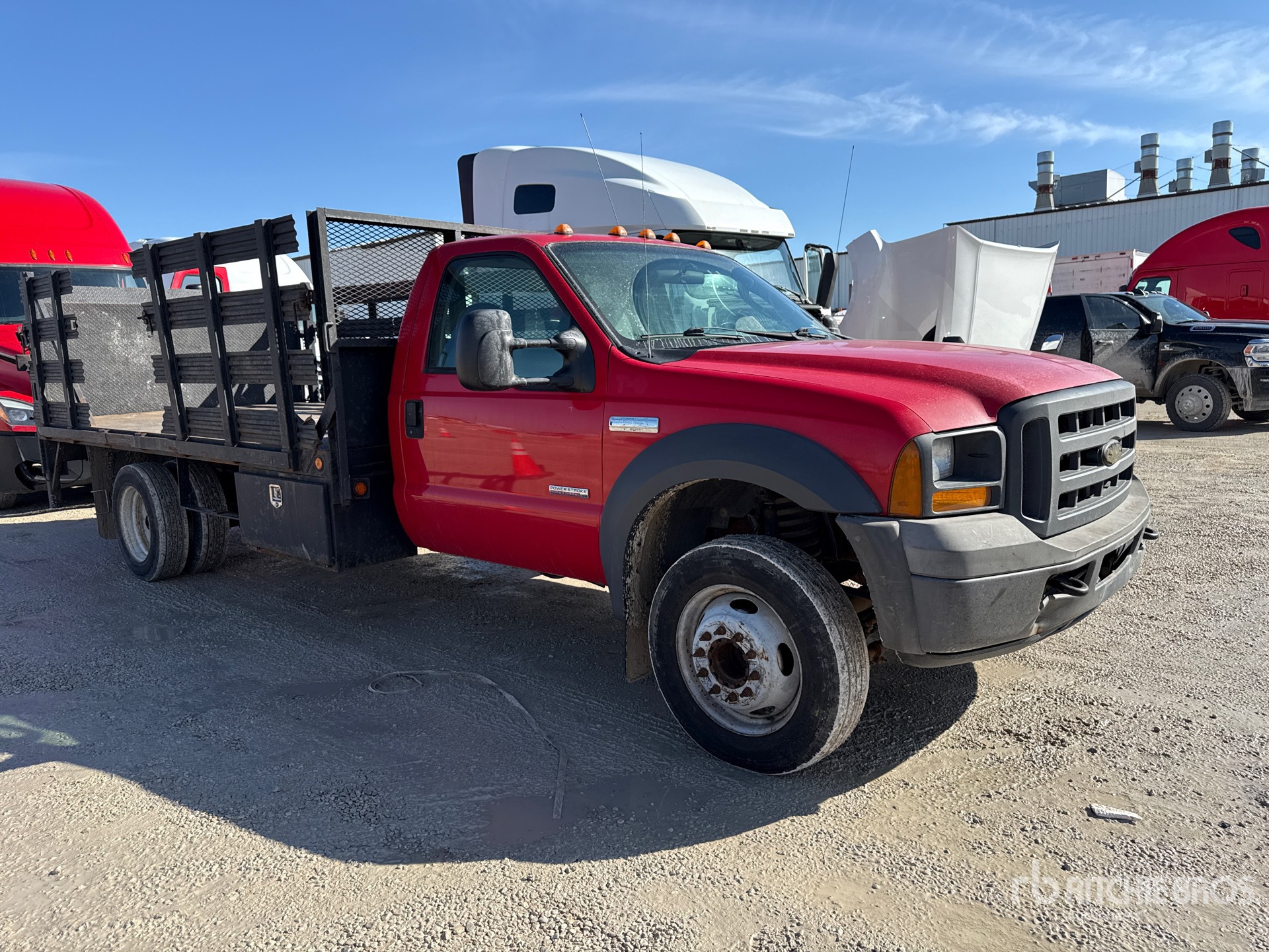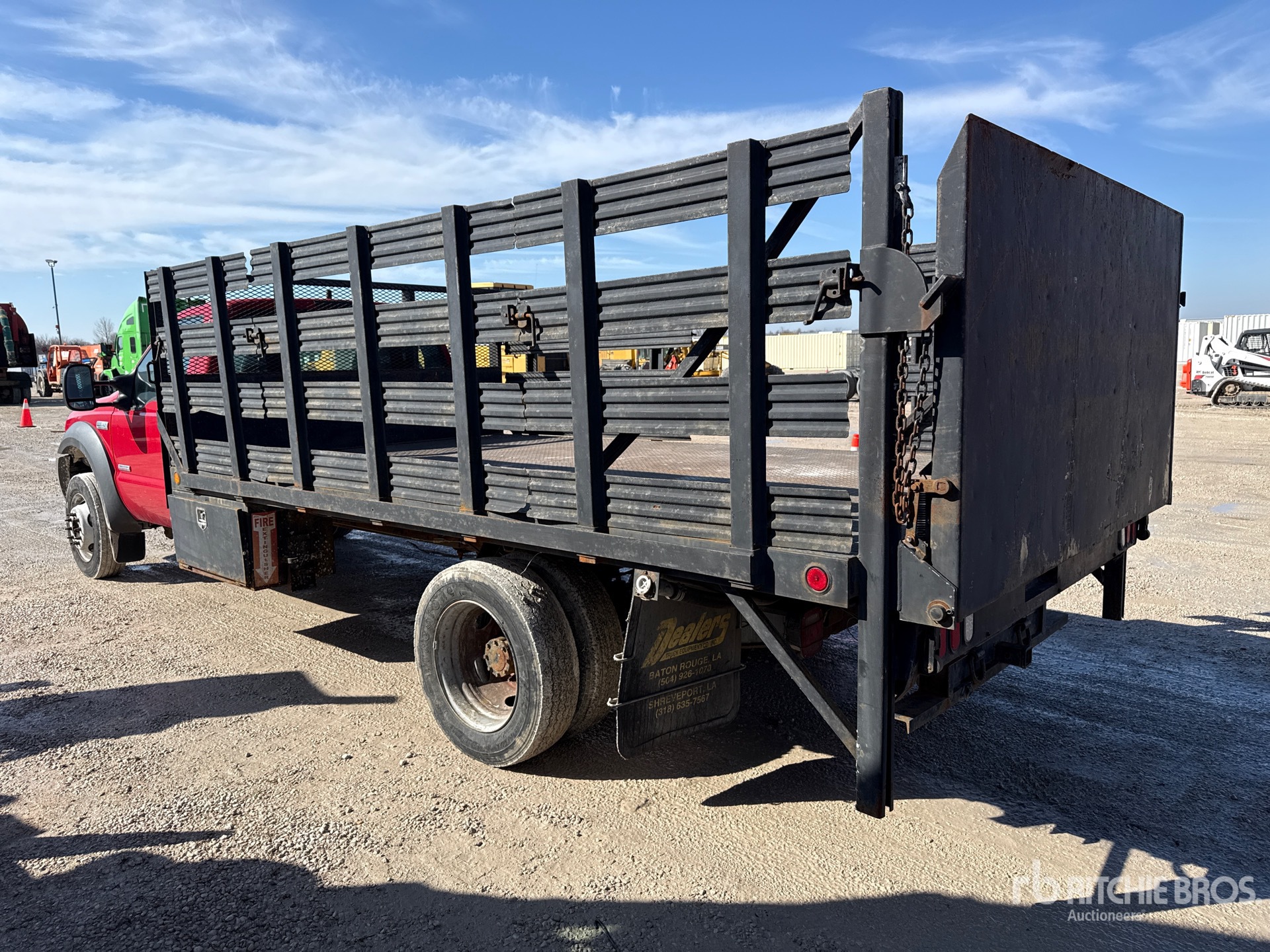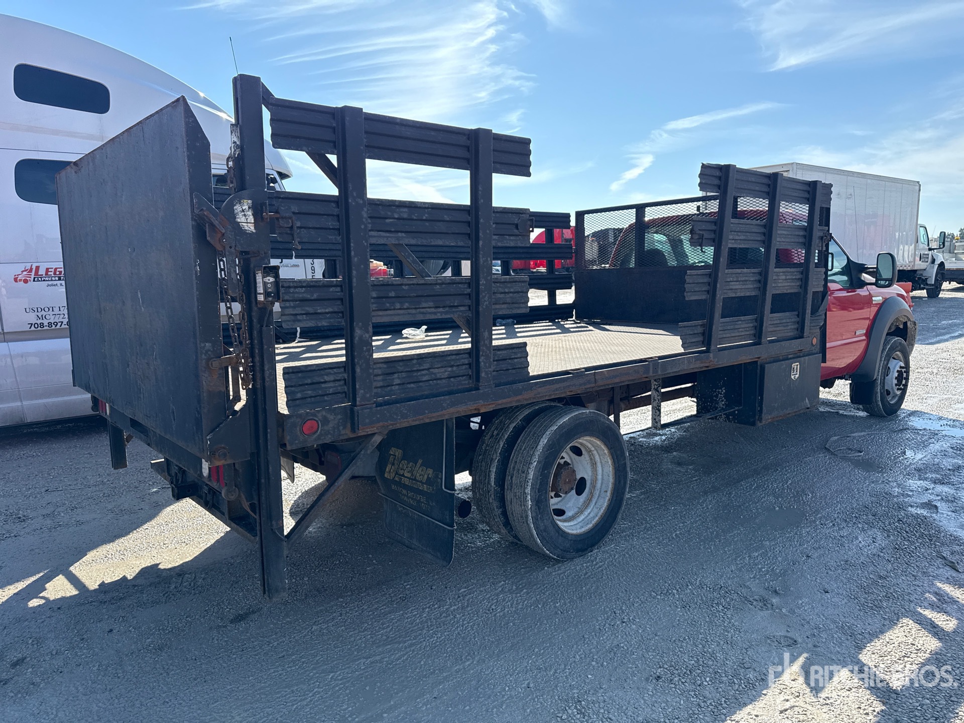 Situé sur la voie 2, emplacement 24, moteur diesel V8 6 L, homologué EPA 2005, 3 033 heures moteur, transmission automatique, essieu avant de 2 948 kg, essieu arrière de 6 185 kg, PTAC de 8 180 kg, pneus 225/70R19.5, suspension à ressorts, empattement de 4,80 m, benne de 4,27 m x 2,44 m, hayon élévateur