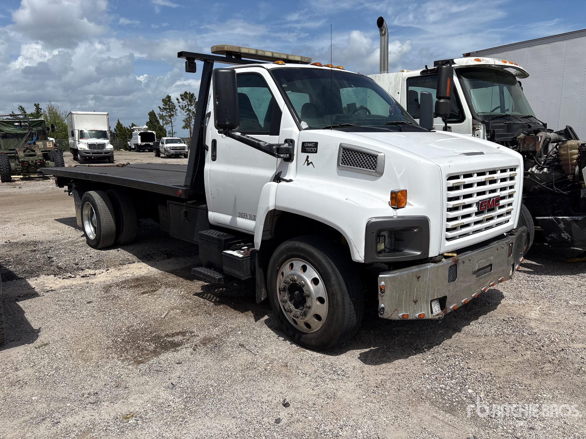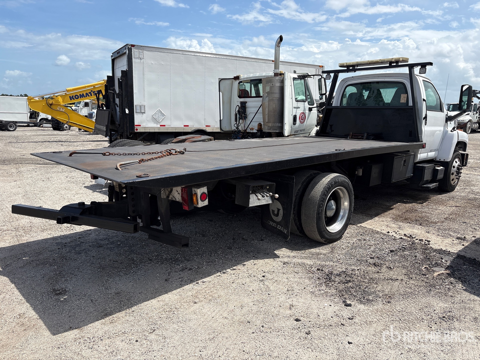 Transmission automatique, essieu avant de 3 629 kg, essieu arrière de 8 618 kg, PTAC de 11 780 kg, pneus 255/70R22.5, empattement de 4,83 m, caisse de 5,49 m x 2,29 m, treuil