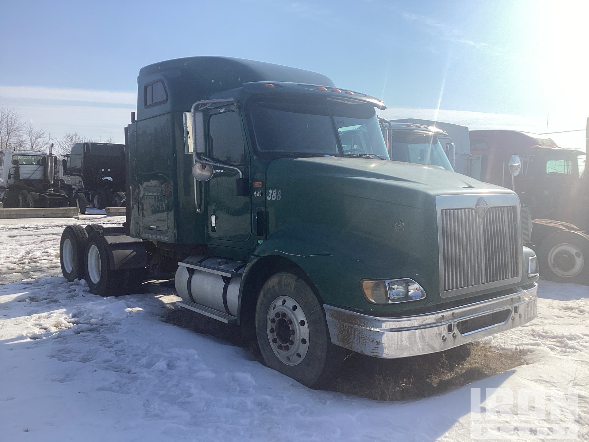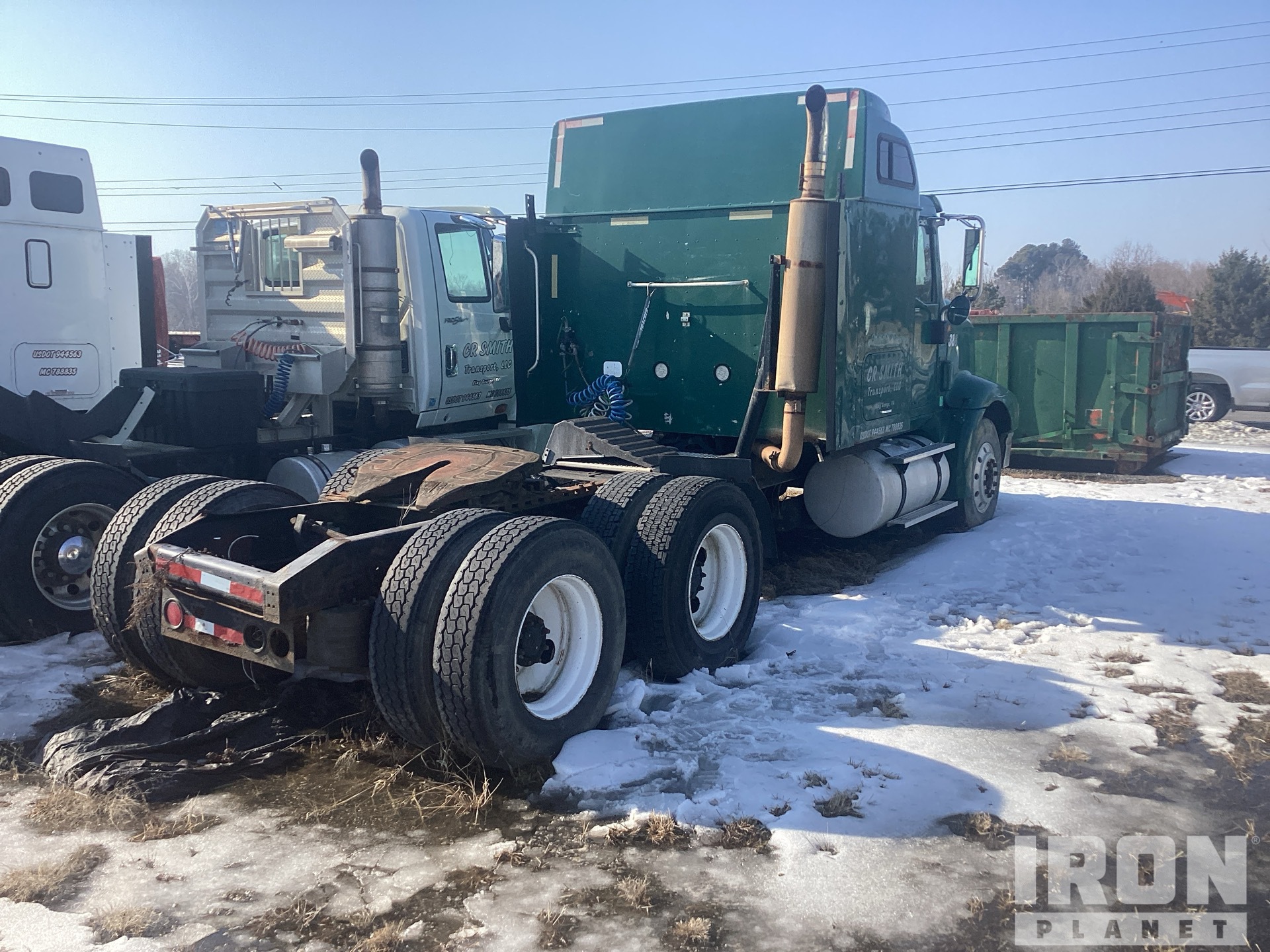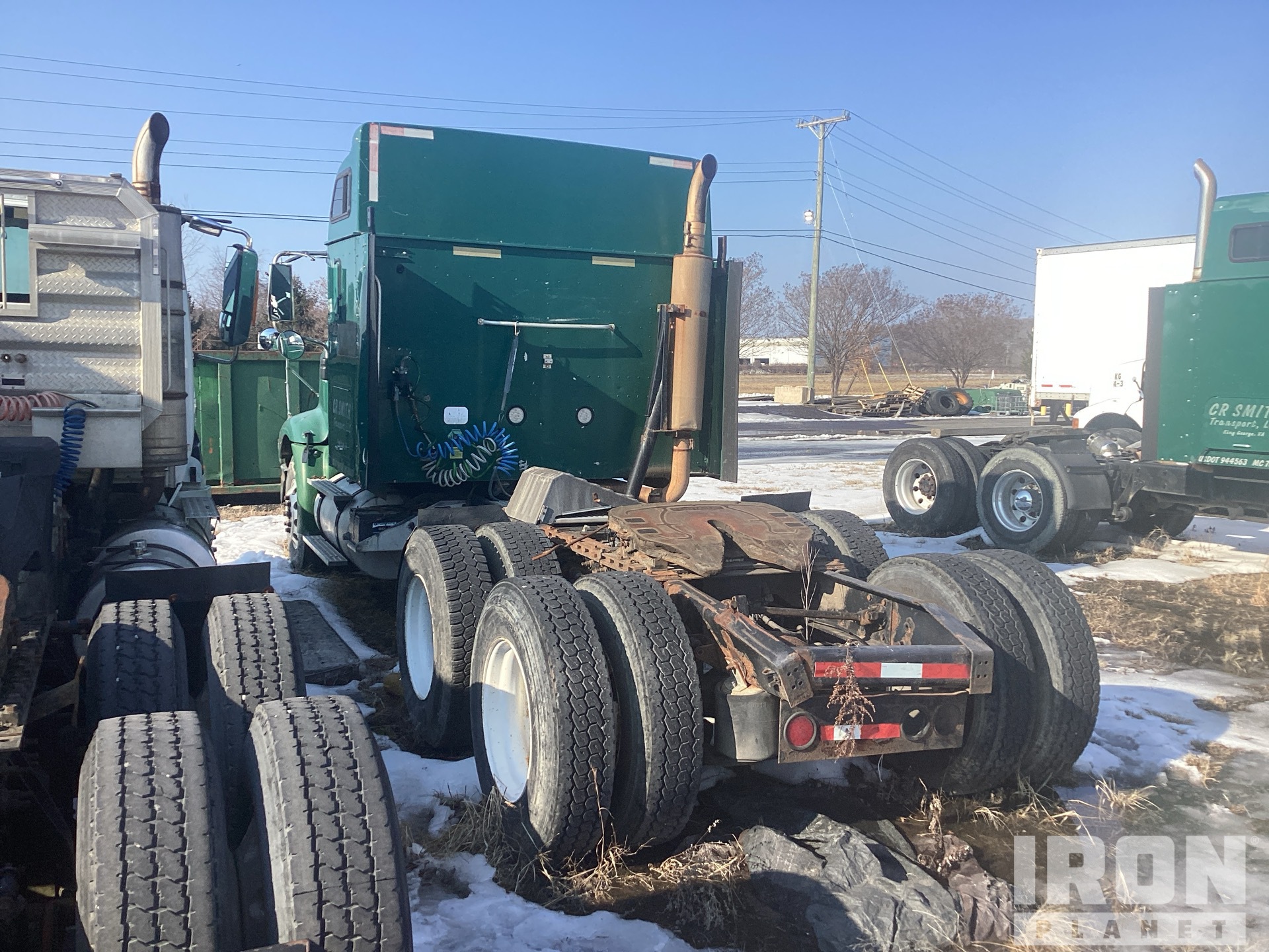 Moteur Cummins, transmission manuelle Eaton Fuller à 10 vitesses, essieu avant de 12 000 lb, essieux arrière de 40 000 lb, PTAC de 52 000 lb, cabine couchette à toit surélevé, empattement de 212 po, suspension pneumatique, roues avant en aluminium, pneus 11R22.5, sellette d'attelage coulissante pneumatique, deux réservoirs de carburant