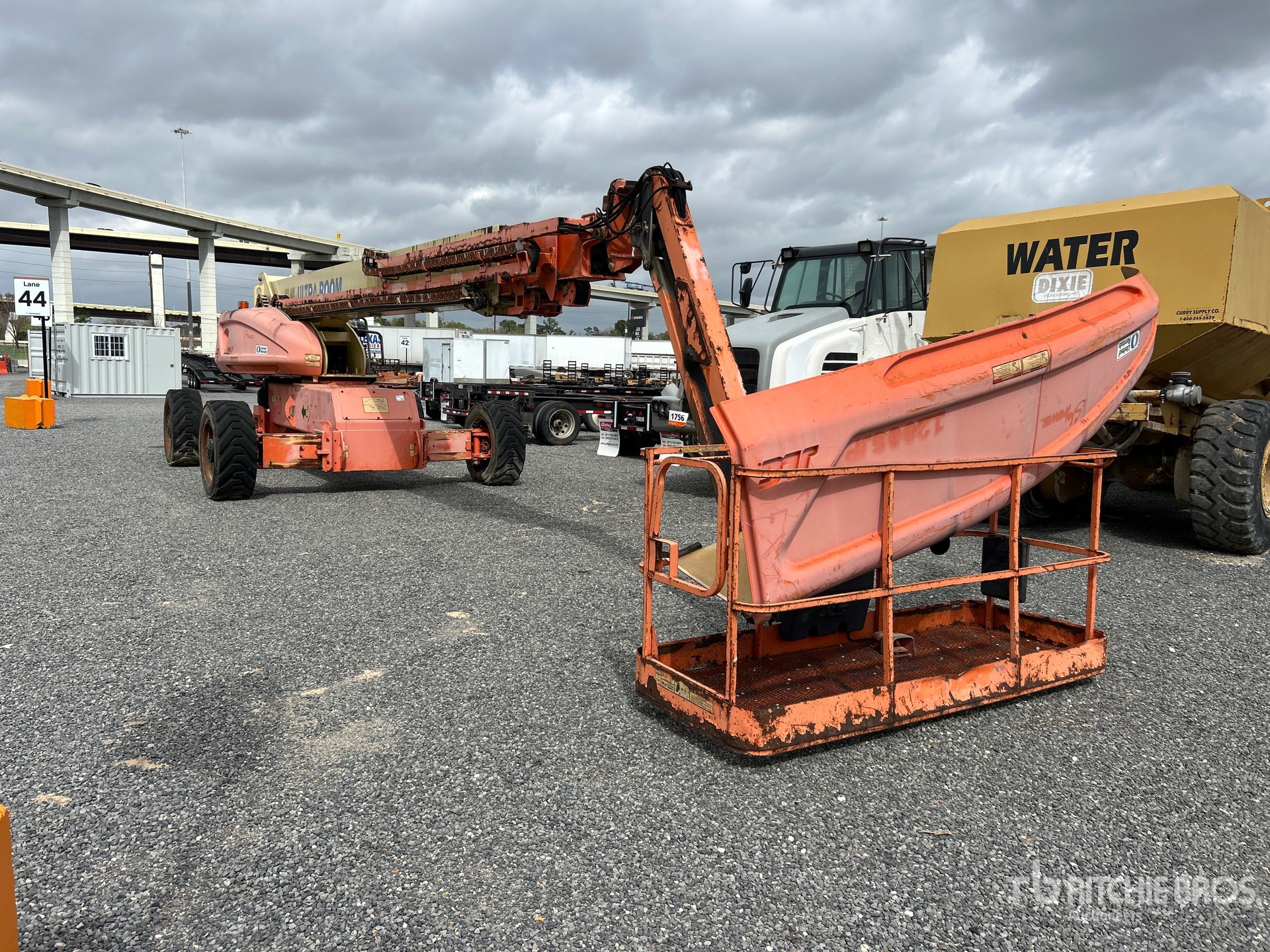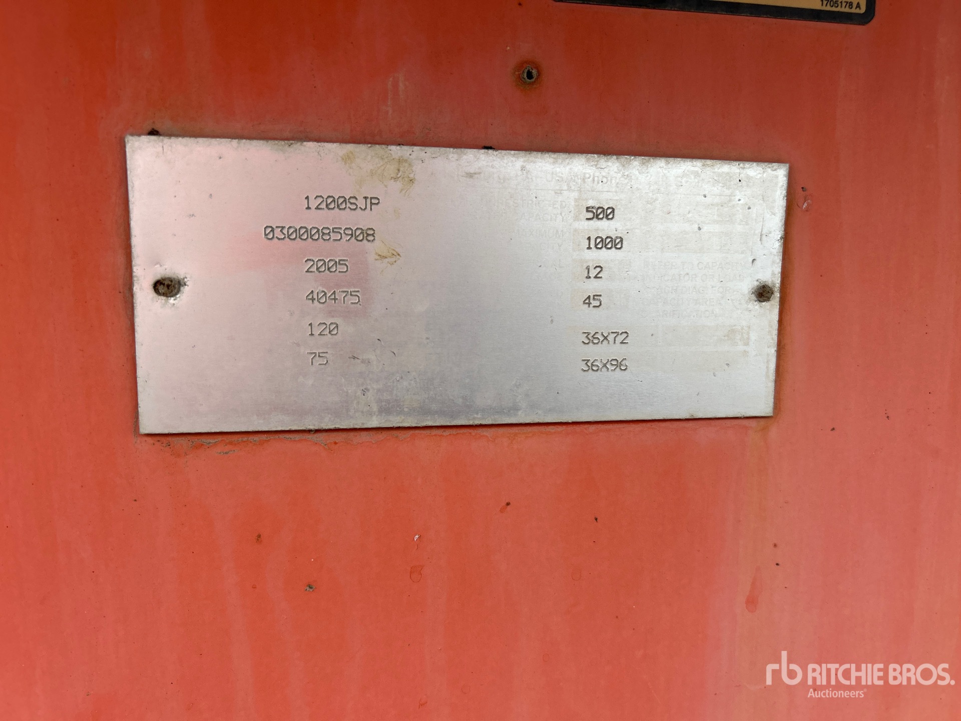 Hauteur de plateforme maximale de 36,6 m (120 pi), capacité de charge maximale de 227 kg (500 lb), flèche, essieux extensibles, alimentation électrique de la plateforme, moteur diesel Deutz à 4 cylindres, pneus 445/50D710