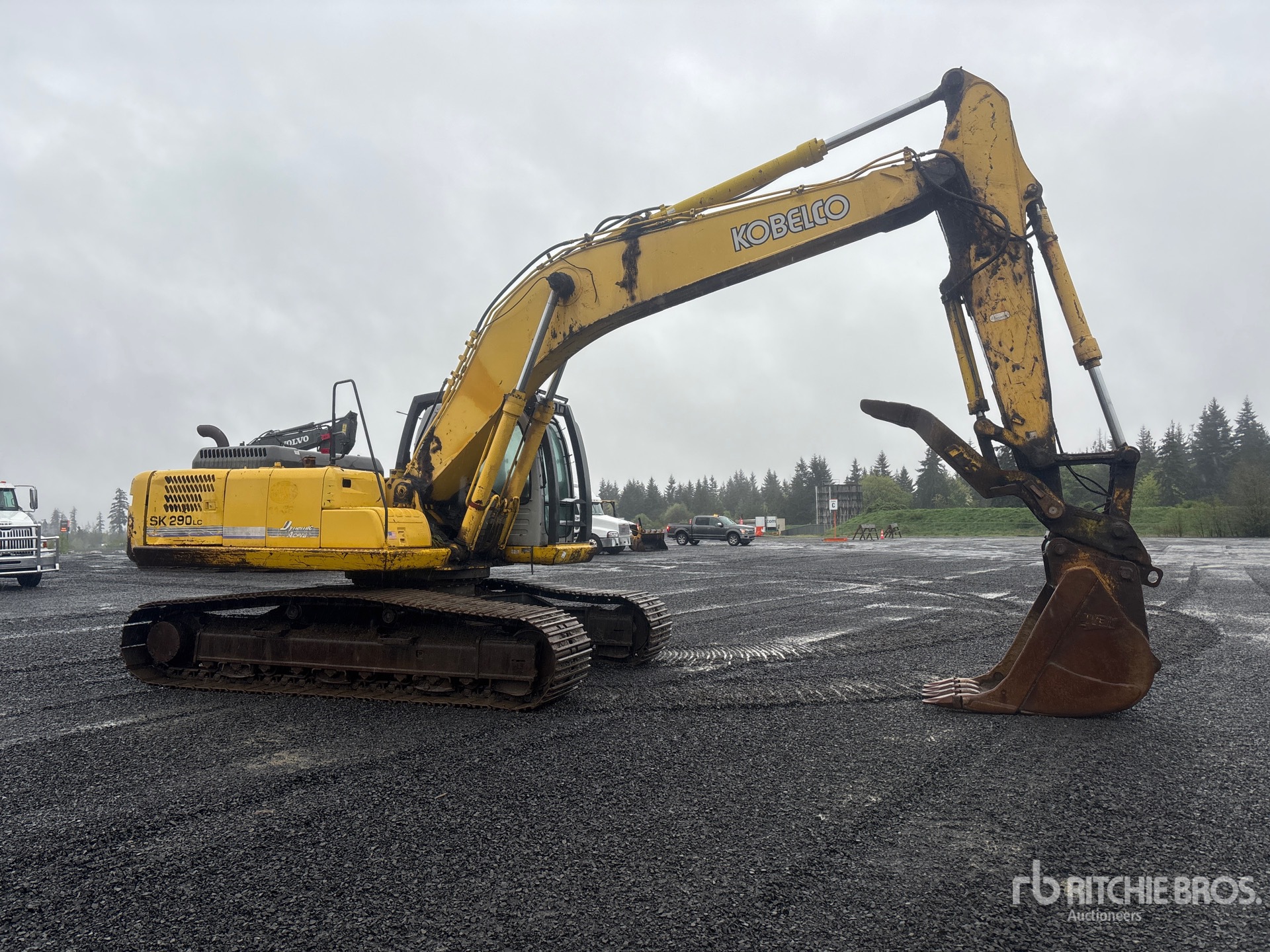 Situé sur la voie 3, emplacement 20, avec écrans de cabine, étiquette EPA américaine 2005, bras de 3,20 m, chenilles à triple crampon de 80 cm, attache rapide hydraulique, godet de creusement de 86 cm, pince hydraulique