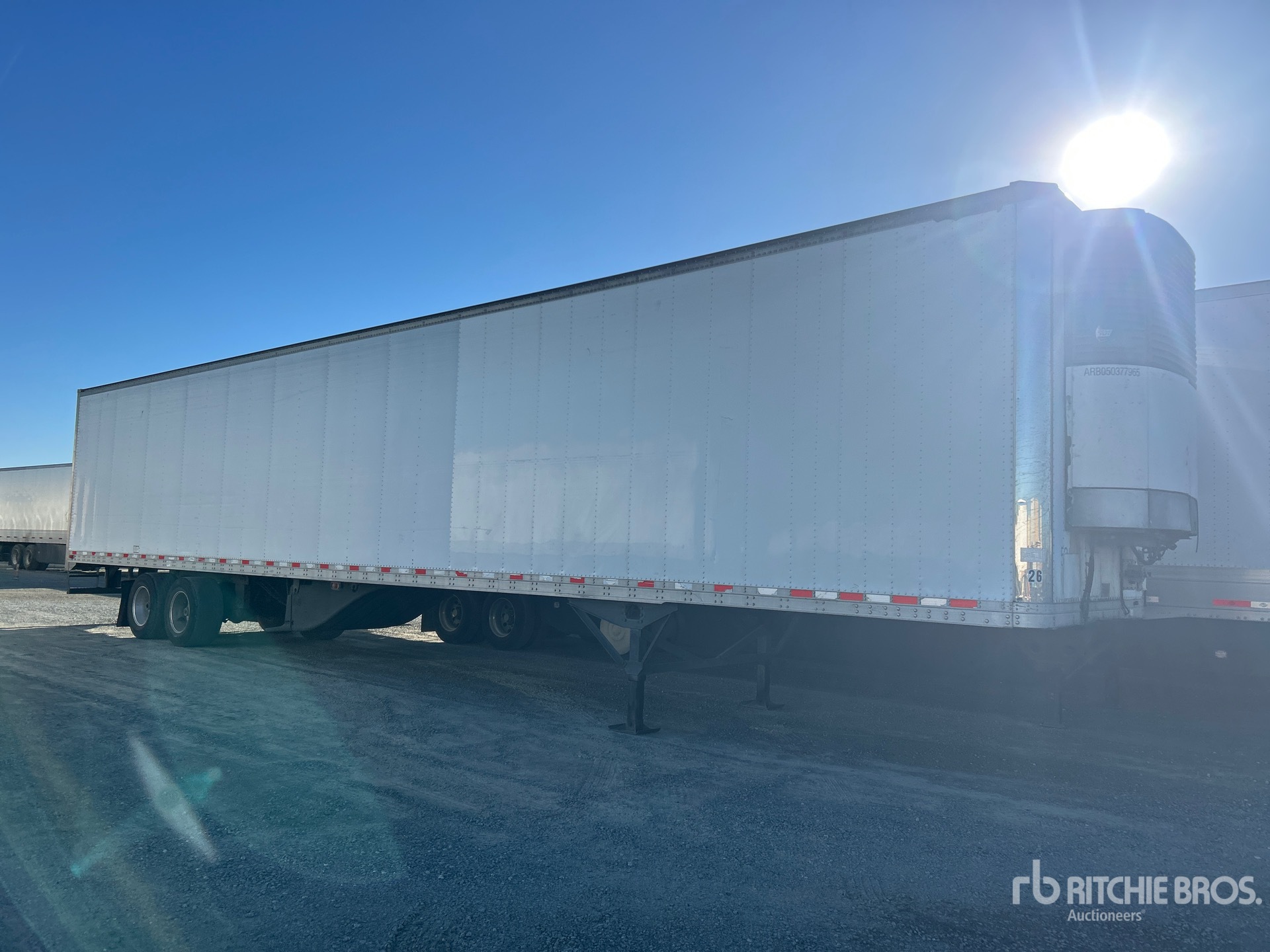 Situé sur la voie 40, emplacement 62, ce camion frigorifique Carrier NDA93VN1-AM-B2 de 2006 affiche 45 985 heures de fonctionnement, une suspension pneumatique coulissante, un plancher en aluminium, une porte sectionnelle et des pneus Super Single 445/50R22.5. Son PTAC est de 68 000 lb (30 800 kg).