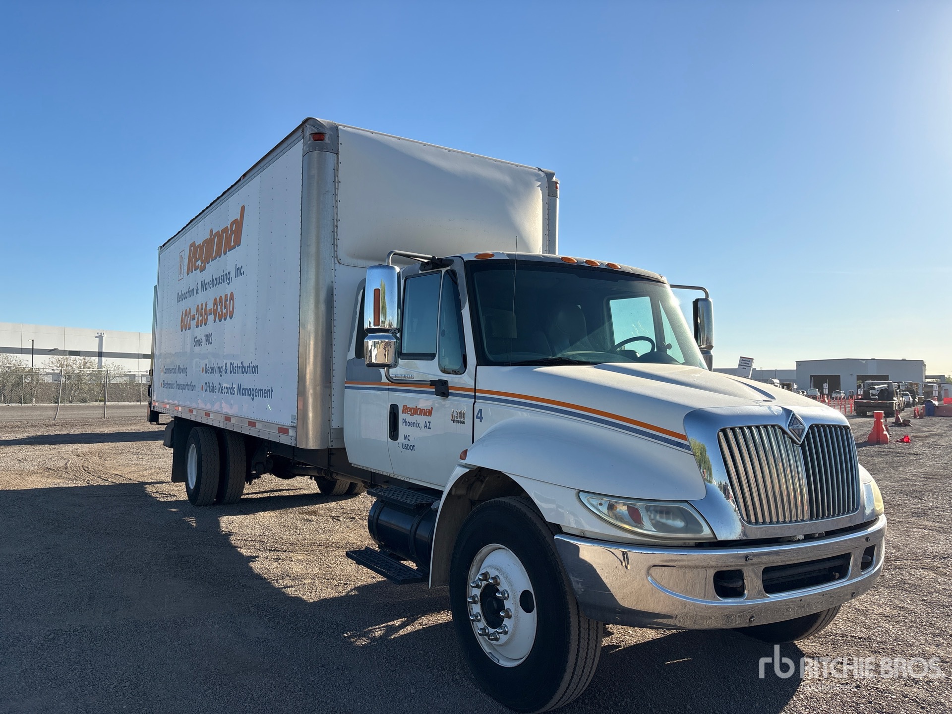 Moteur diesel International 6 cylindres 7,6 L, homologué EPA 2005, boîte manuelle, pneus avant et arrière 11R22.5, suspension pneumatique, empattement de 706 mm (278 po), châssis Morgan de 7,32 m (24 pi) de long, 2,59 m (102 po) de large et 2,57 m (101 po) de haut, hayon élévateur