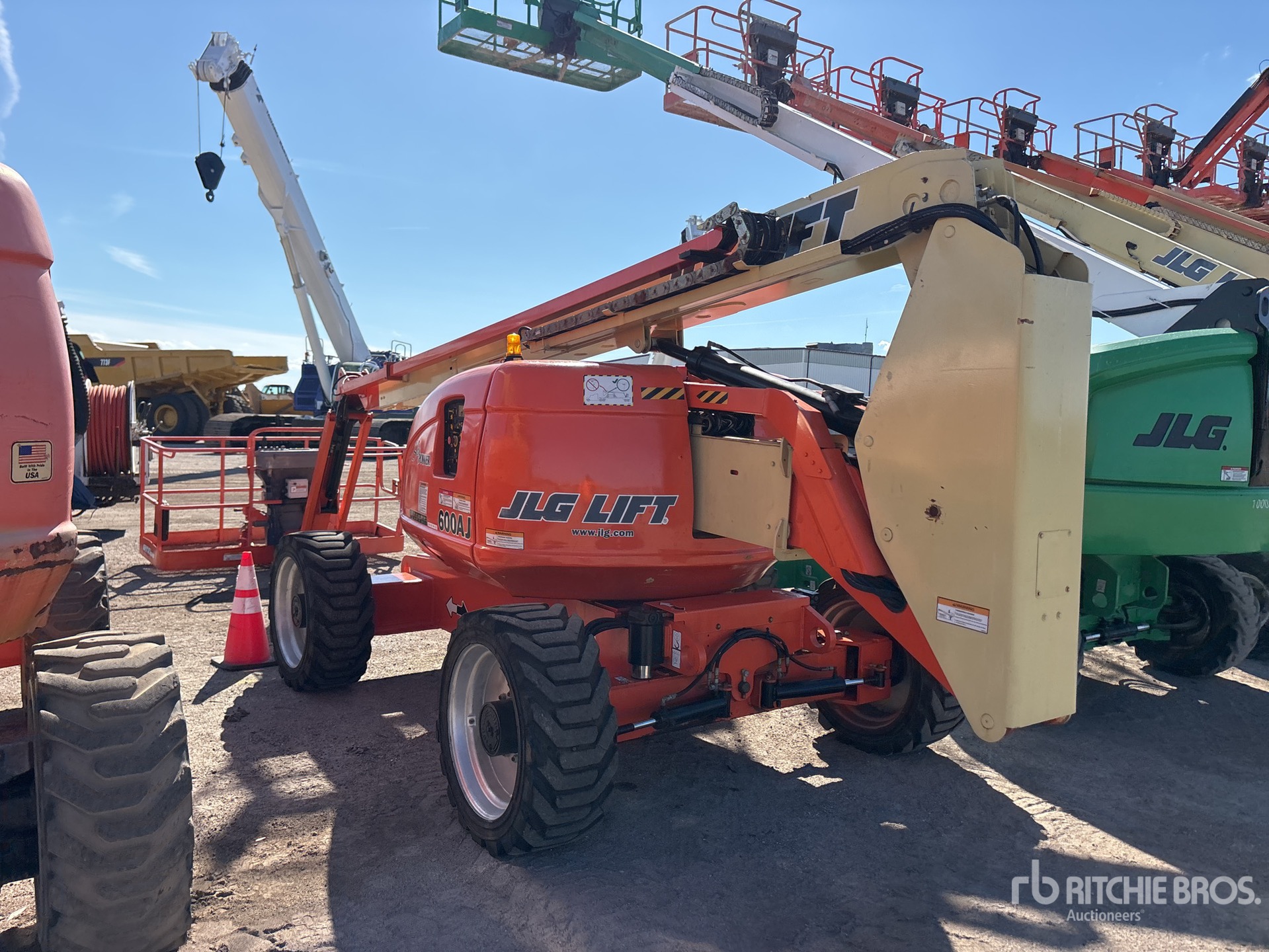 Hauteur maximale de la plateforme : 18,3 m (60 pi), capacité de charge maximale : 227 kg (500 lb), flèche, alimentation électrique de la plateforme, homologation EPA américaine 2006, moteur diesel Deutz 4 cylindres 66 ch 3,1 L, pneus 355/55D625