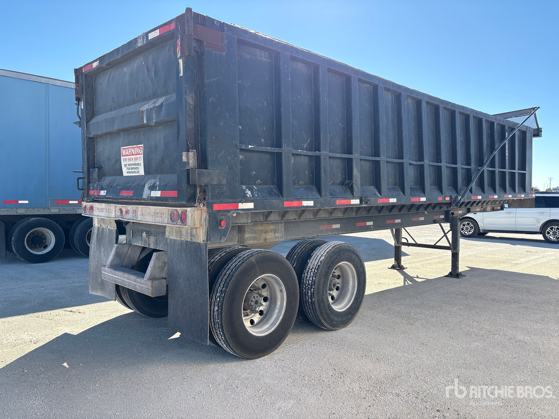 Suspension à ressorts, caisse de 9,14 m (30 pi), parois latérales de 1,37 m (54 po), caisse en acier, bâche à enroulement électrique, hayon battant, pneus 11R22.5, PTAC de 34 tonnes (75 000 lb)