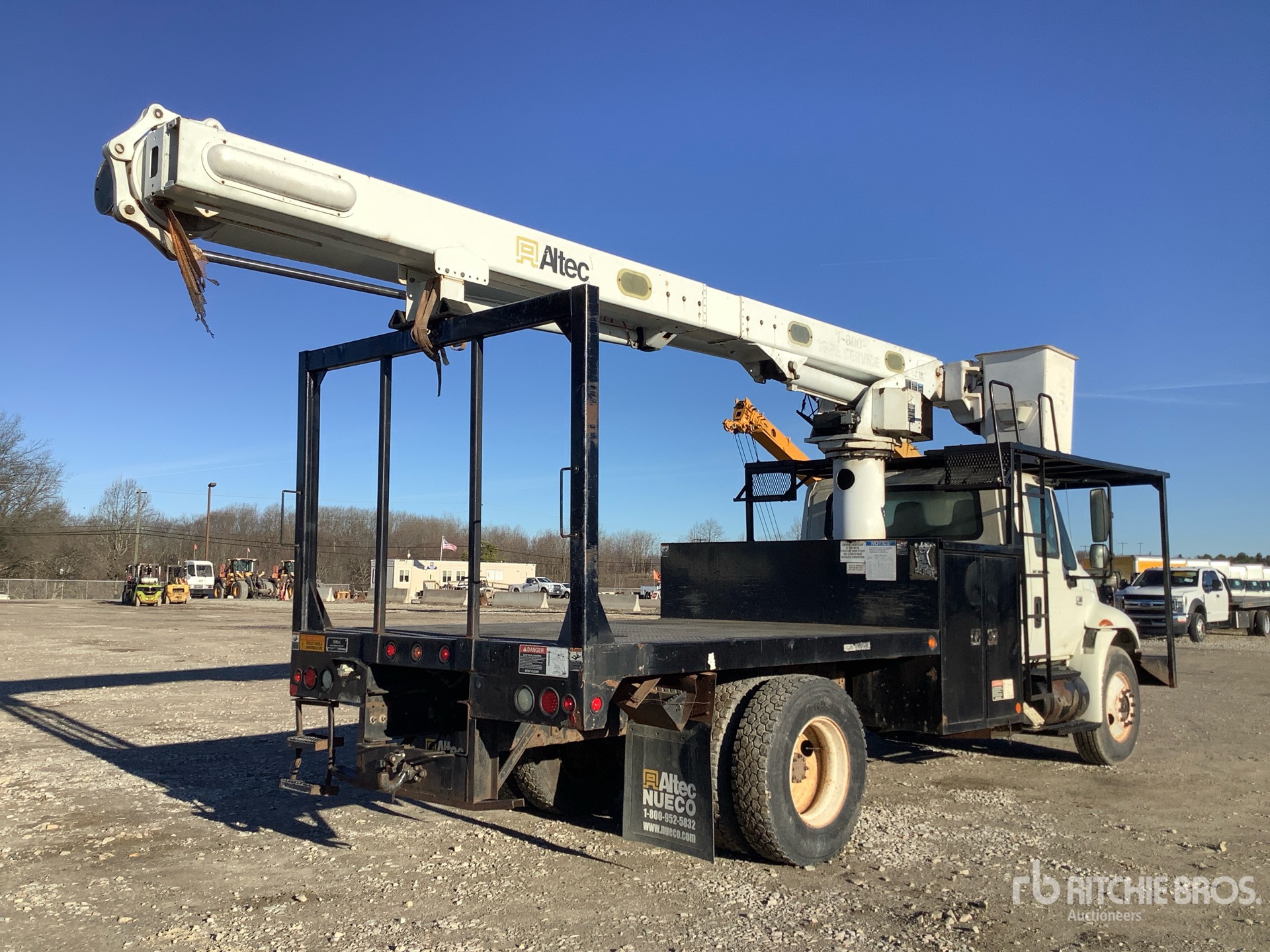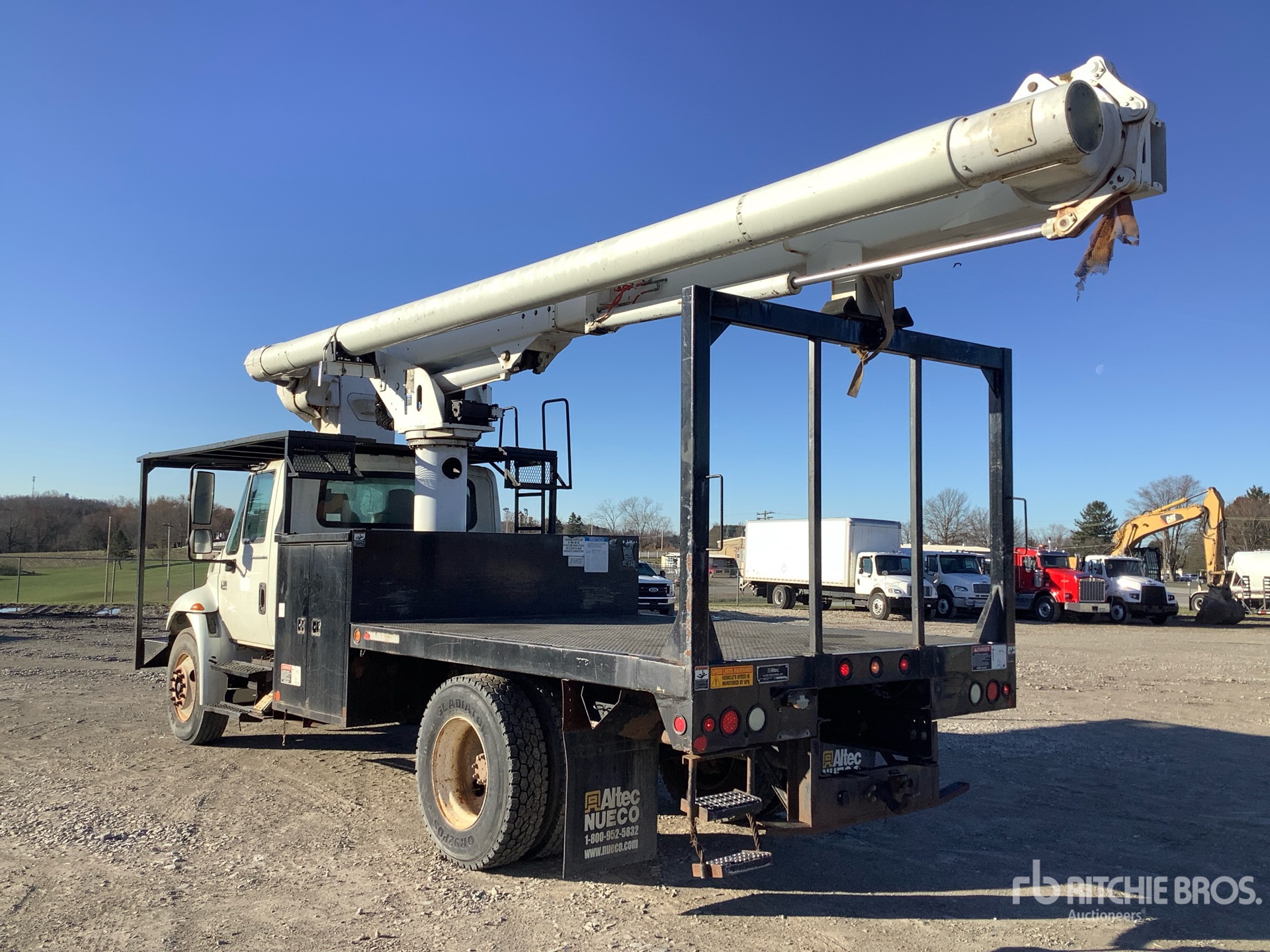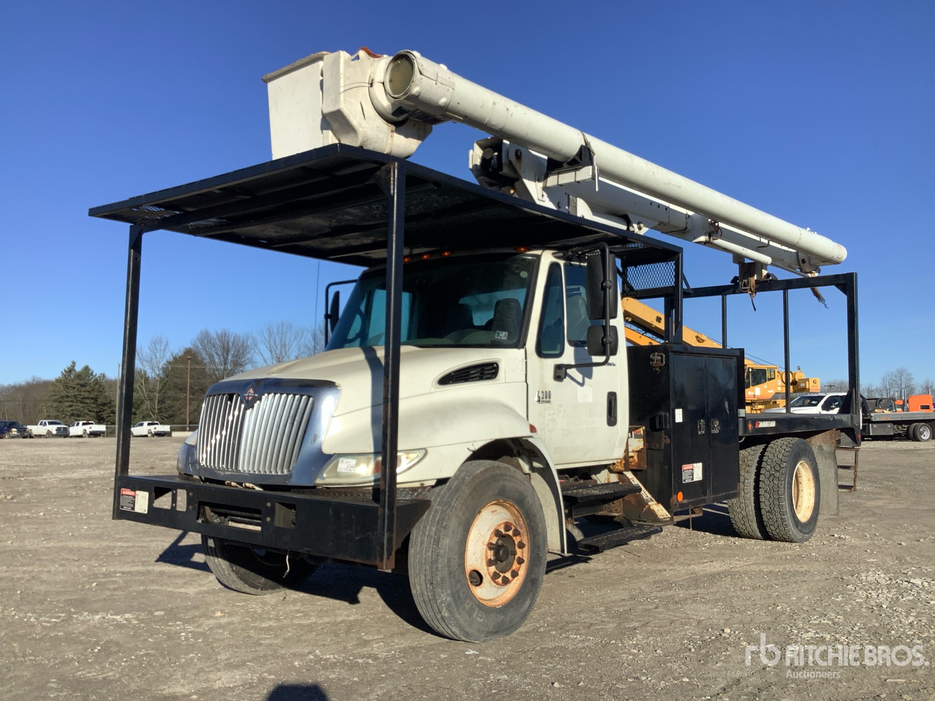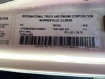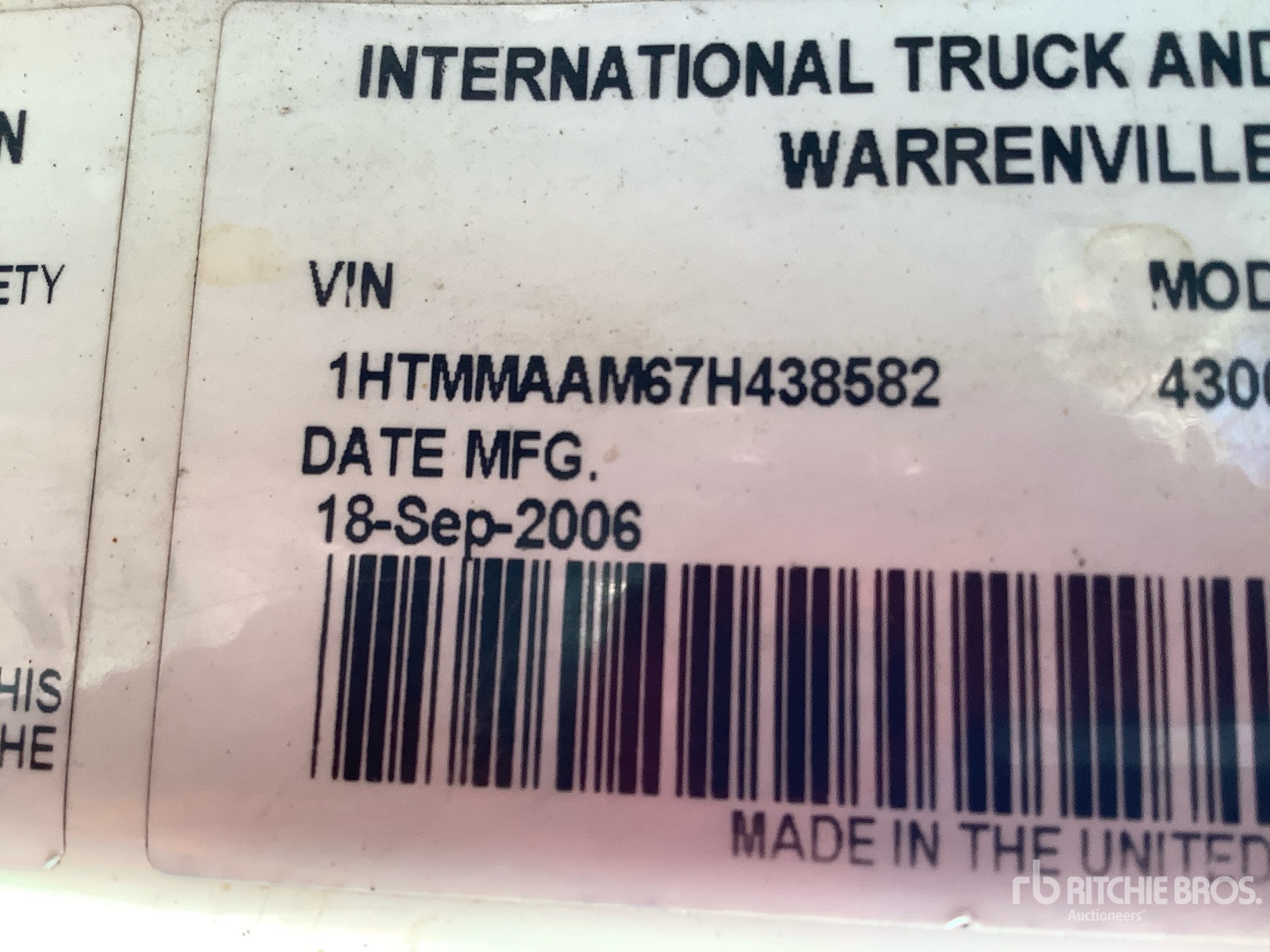 Moteur diesel International DT466 6 cylindres 7,6 L 210 ch, homologué EPA 2006, conforme aux normes CARB, 40 heures moteur, transmission manuelle Eaton Fuller 6 vitesses, pneus 11R22.5, suspension à ressorts, empattement de 4,75 m (187 po), prise de force avant, flèche articulée monoplace, insert en fibre de verre sur la partie inférieure de la flèche, benne utilitaire, stabilisateurs en A, plateau de 4,57 m x 2,44 m (15 pi x 96 po), attelage à anneau
