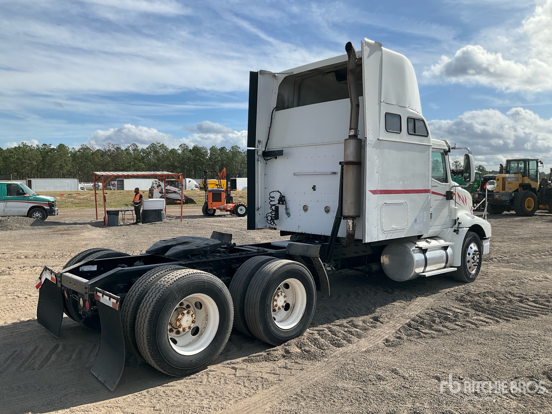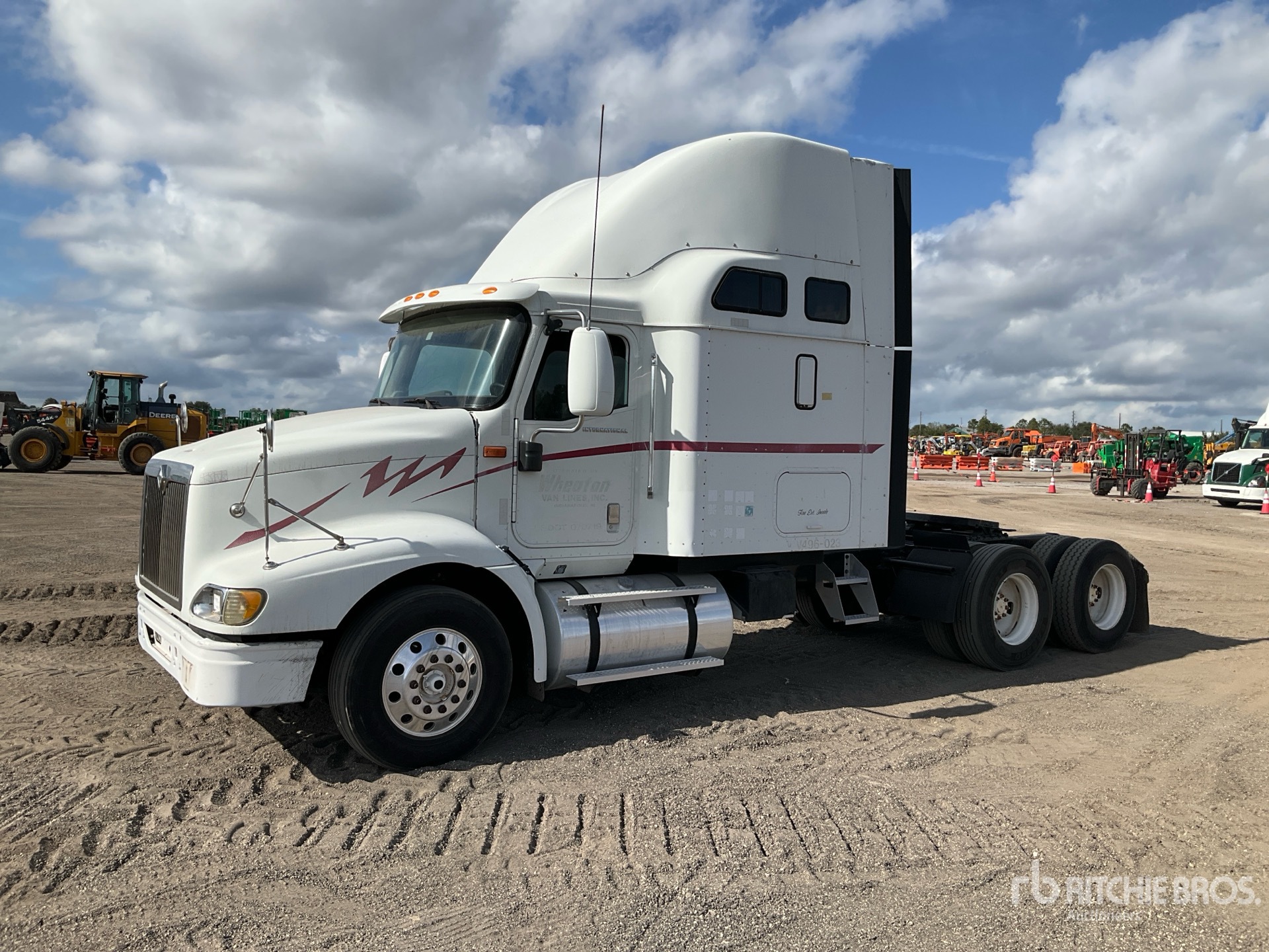 Situé sur la voie 3, emplacement 309, moteur Cummins ISX 435 ch, homologué EPA 2006, 25 334 heures moteur, transmission automatisée Eaton Fuller, essieu avant de 5 443 kg, essieu arrière de 18 144 kg, PTAC de 23 591 kg, frein moteur, cabine couchette à toit surélevé de 130 cm, lits superposés, empattement de 584 cm, suspension pneumatique, jantes avant en aluminium, pneus 295/75R22.5, sellette d'attelage coulissante pneumatique, double réservoir de carburant.