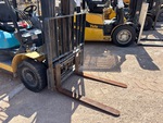 Mât à 3 sections, levage libre total, hauteur de levage maximale de 4,78 m, hauteur de mât abaissée de 2,11 m, fourches de 1,07 m, translation latérale, transpalette simple/double, homologation EPA américaine 2007, moteur 4 cylindres bicarburation