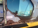 Les composants/systèmes défectueux comprennent, sans s'y limiter : la section de transmission, des trous dans le godet, des coupures/soudures sur la face avant du châssis du train de roulement, l'impossibilité d'abaisser la flèche (probablement en raison d'une fuite au niveau du clapet anti-retour), une vitesse de déplacement lente, une fuite au niveau du tuyau du clapet anti-retour de la flèche, et l'absence de la vitre inférieure avant.