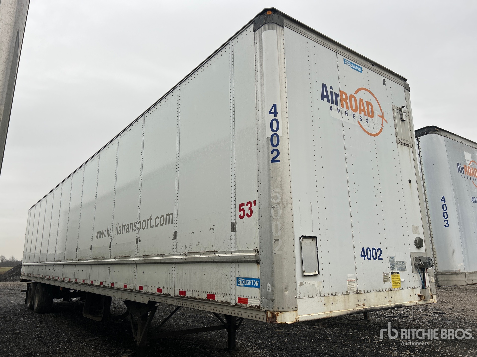 Suspension pneumatique coulissante, plancher de bois franc, porte battante, pneus super simples 445/50R22.5, PTAC de 70 000 lb