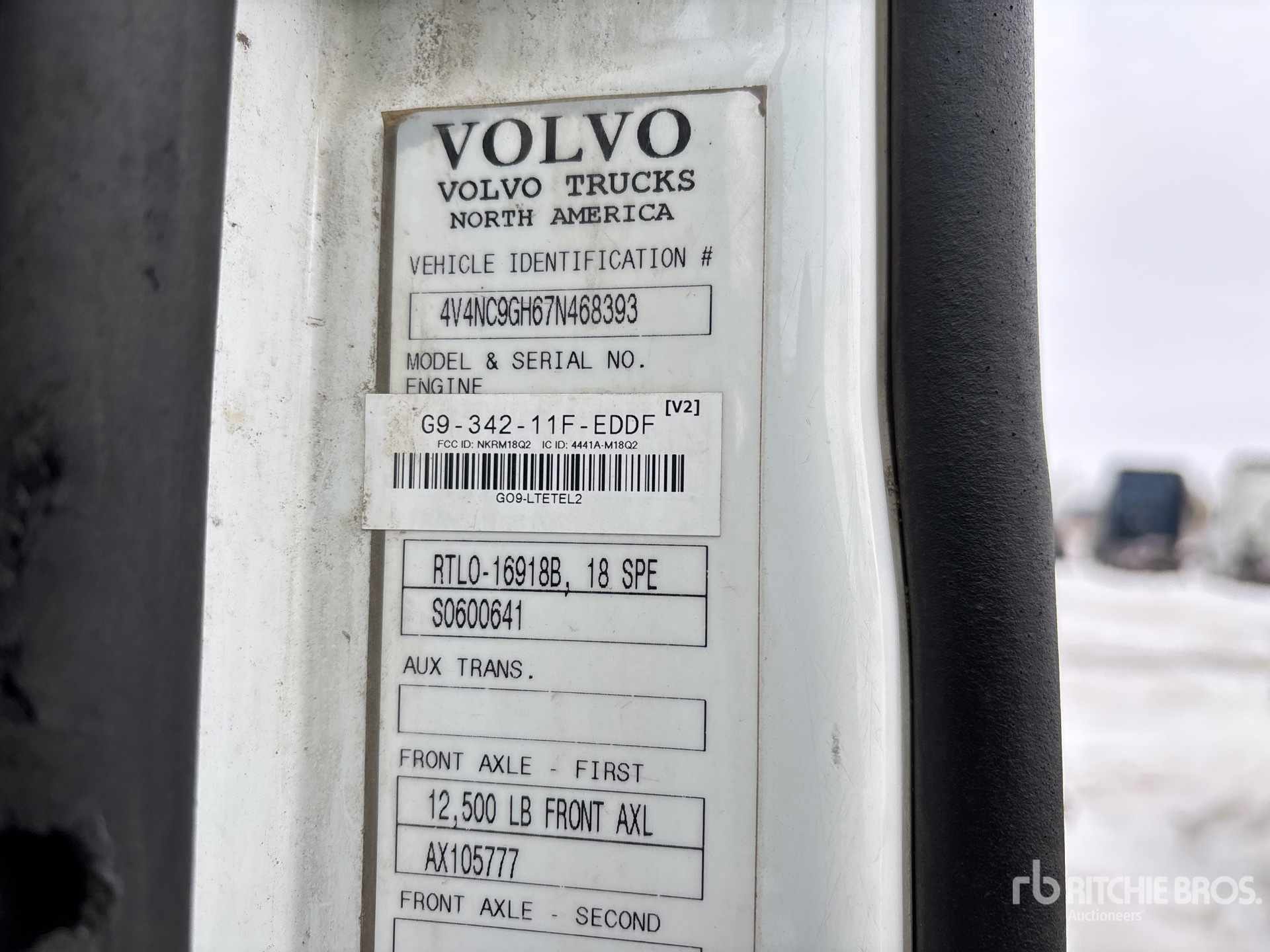 Moteur Volvo D12D 465 ch, homologué EPA 2006, boîte de vitesses manuelle Eaton Fuller RTLO-16918B à 18 rapports, essieu avant de 5670 kg, essieux moteurs Meritor RT-40-145, rapport de pont de 3,73:1, essieux arrière de 1814 kg, PTAC de 2380 kg, frein moteur, blocage du différentiel, empattement de 493 cm, suspension pneumatique, jantes en aluminium, pneus 11R24.5, trousse hydraulique, sellette d'attelage coulissante pneumatique, double réservoir de carburant.