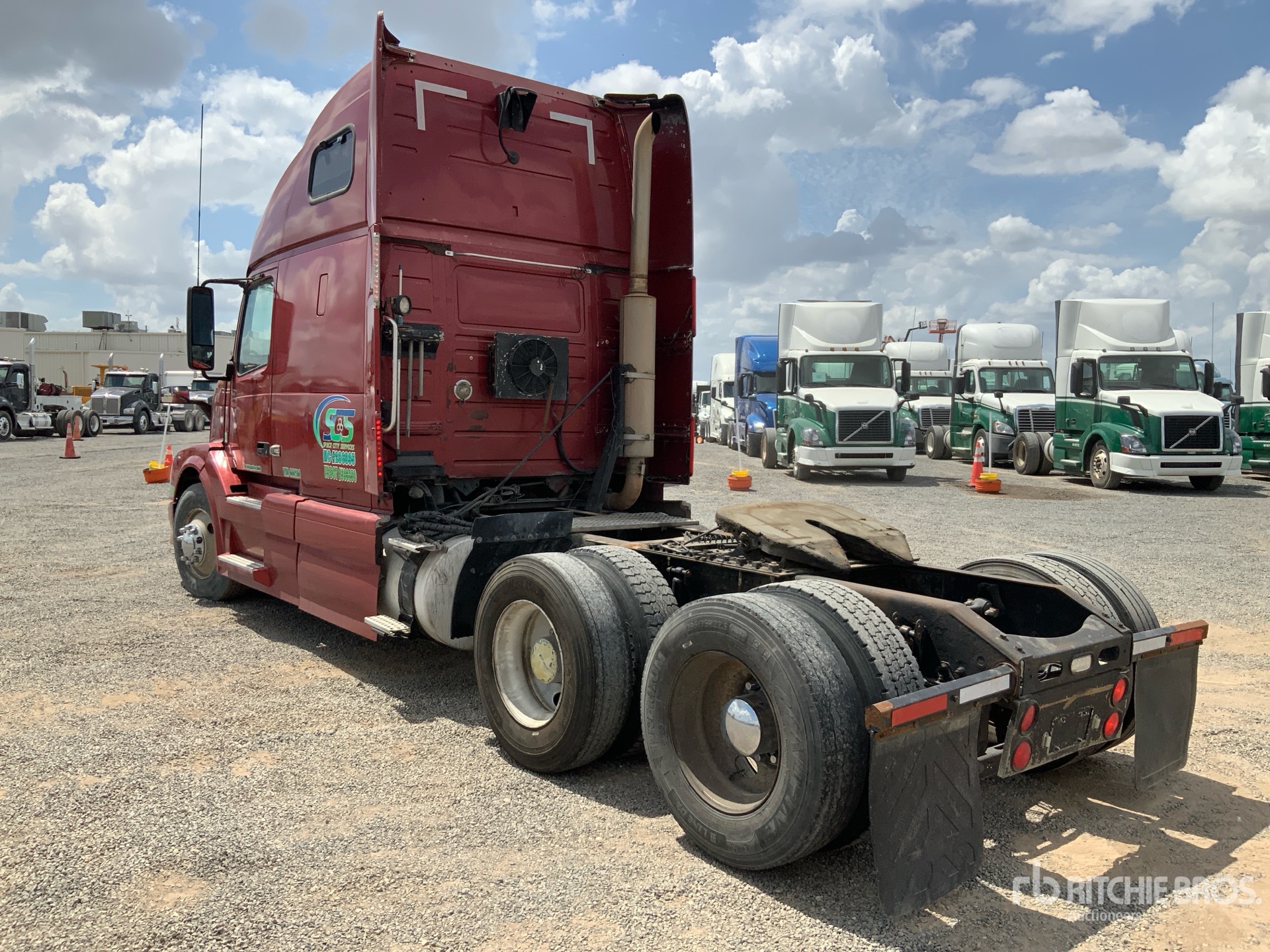 Situé sur la voie 28, emplacement 35, moteur Cummins ISX de 450 ch, transmission manuelle Eaton Fuller à 13 vitesses, essieu avant de 5 600 kg, essieu arrière de 18 144 kg, PTAC de 23 700 kg, blocage de différentiel, cabine couchette surélevée de 155 cm, empattement de 560 cm, suspension pneumatique, pneus avant 295/75R22.5, pneus arrière 11R22.5, suspension avant à assistance pneumatique, sellette d'attelage à roulement à billes, double réservoir de carburant.
