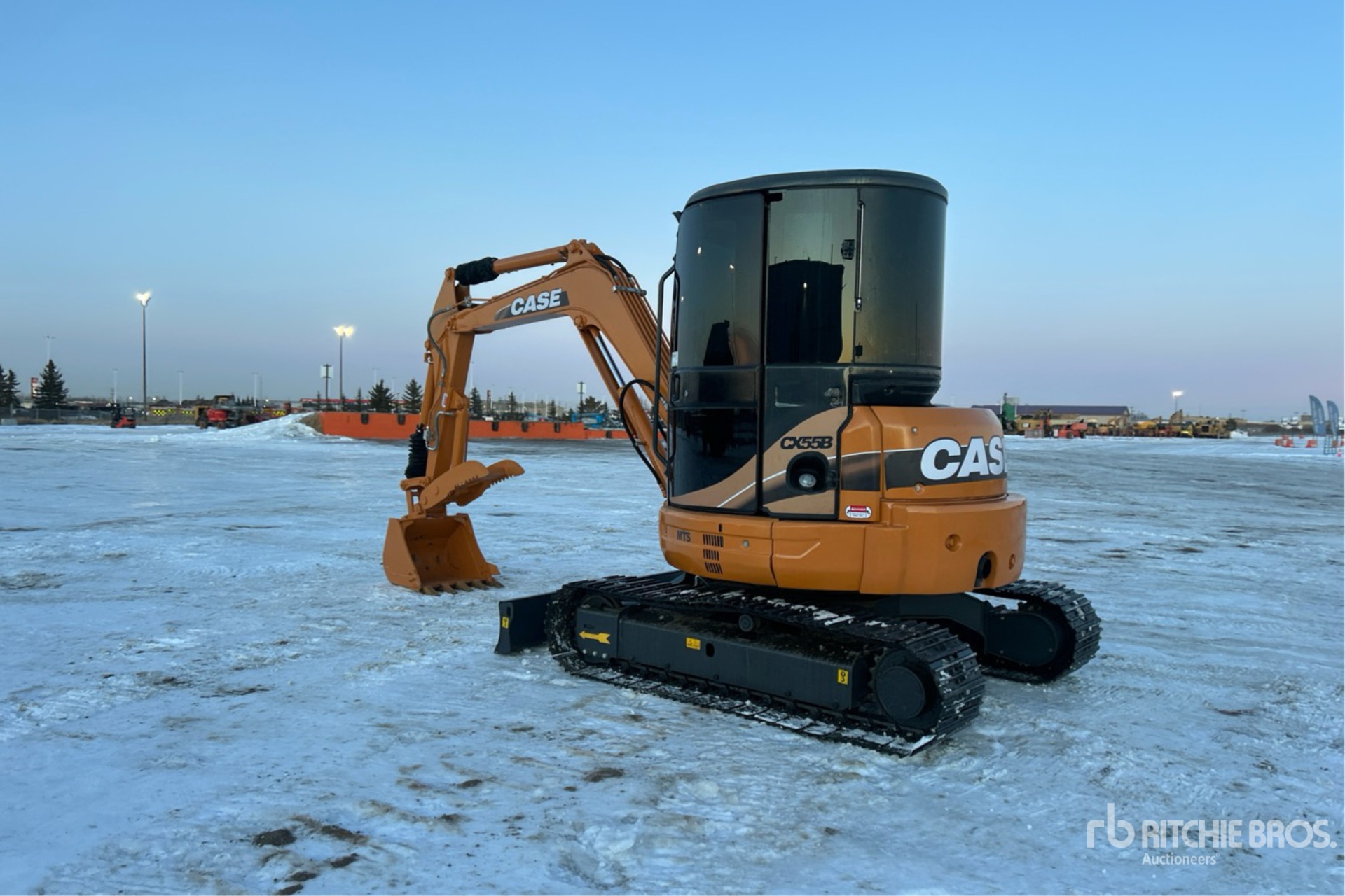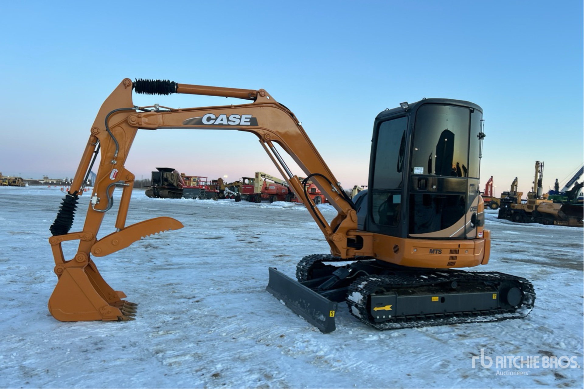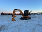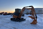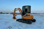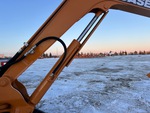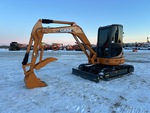 Cabine fermée, homologation EPA américaine 2008, flèche pivotante, bras de 1,57 m, lame de remblayage, chenilles à triple crampon de 40 cm, godet de terrassement de 76 cm, pouce hydraulique