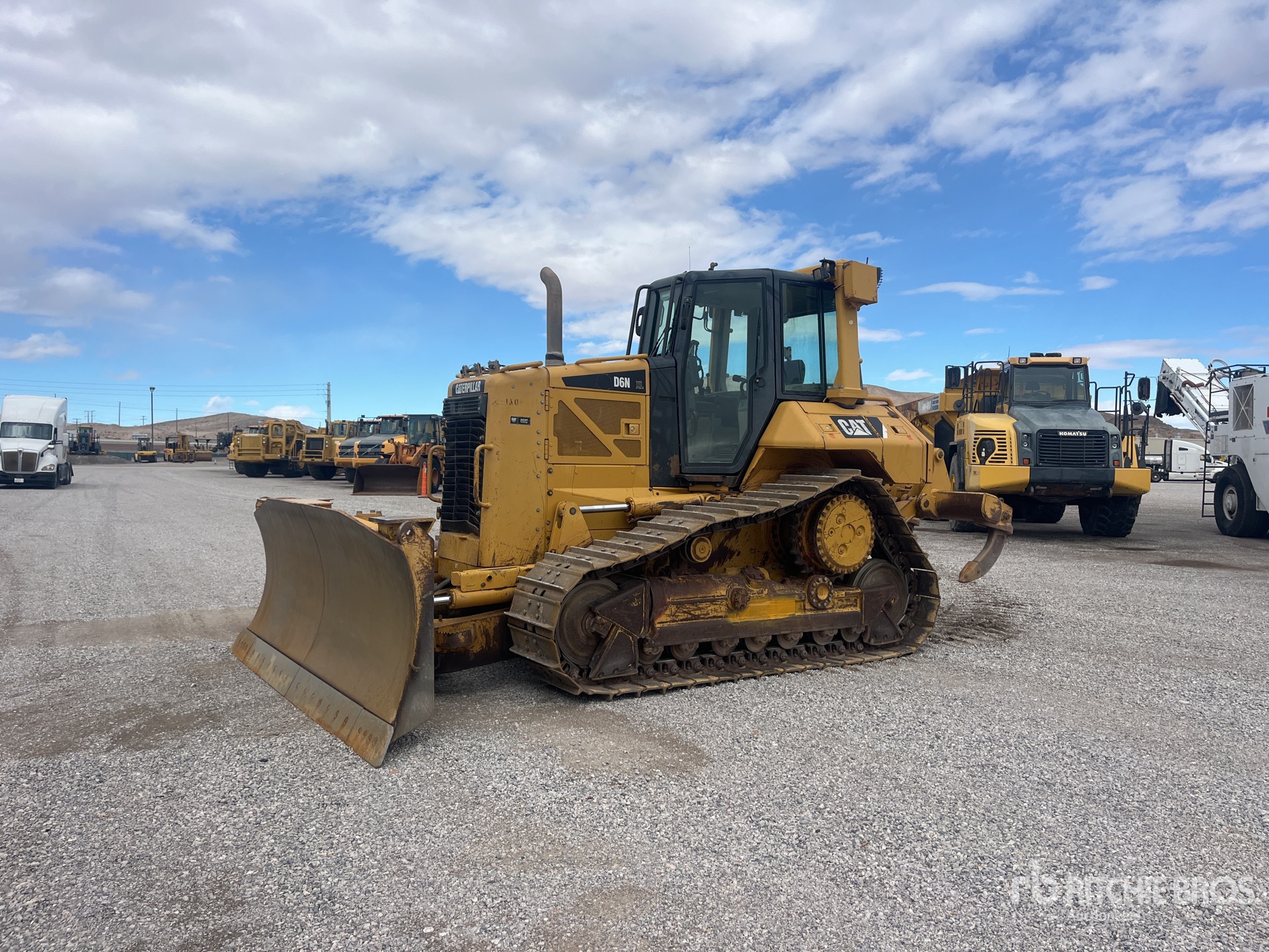 Cabine fermée, lame PAT de 125 pouces de large, chenilles à crampons simples de 23 pouces, ripper à dents multiples monocylindre