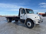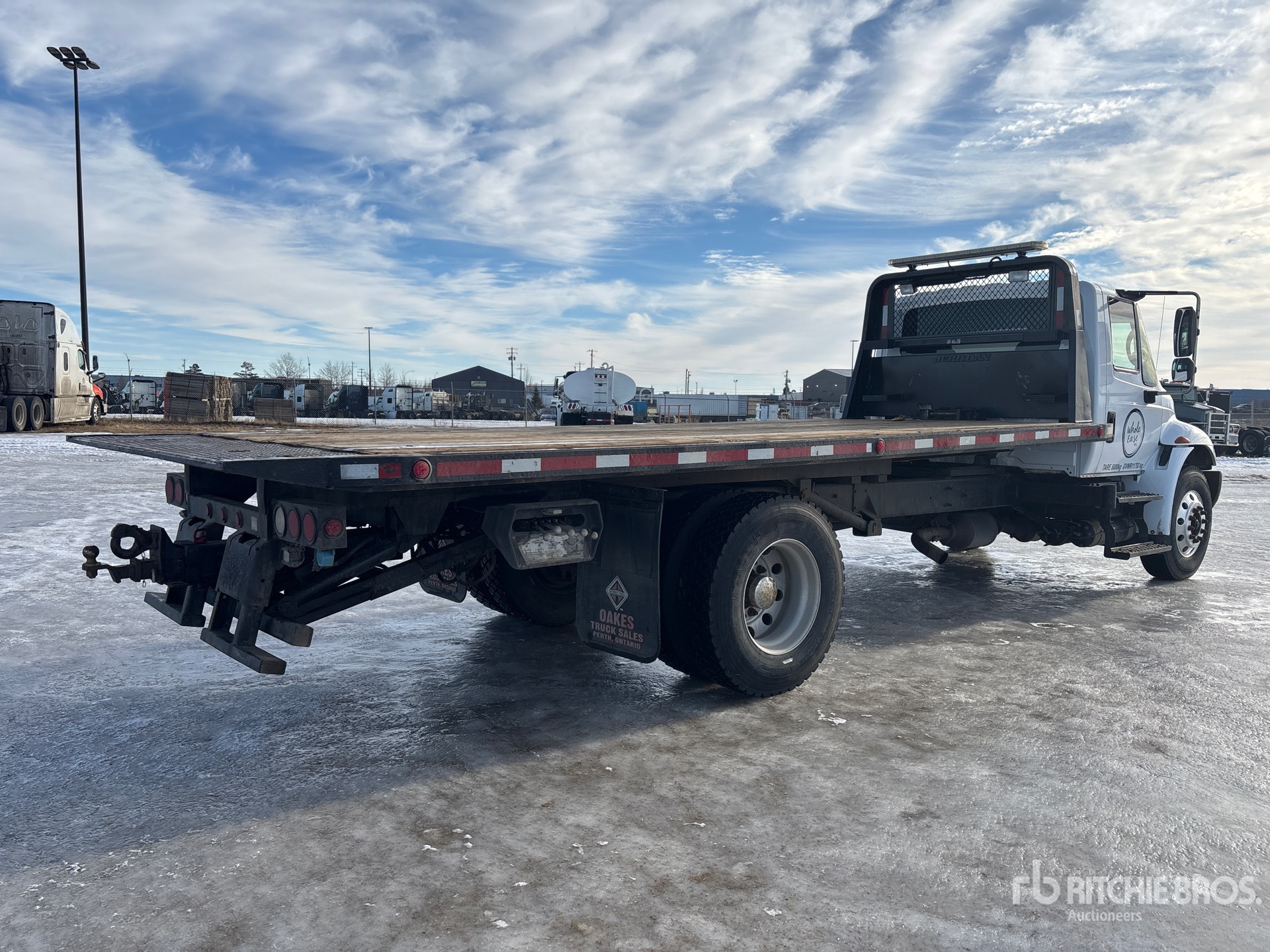 Moteur diesel International MaxxForce DT V8 7,6 L de 255 ch, homologué EPA (États-Unis) 2007, 10 102 heures de fonctionnement, transmission automatique Eaton Fuller, essieu avant de 4 536 kg, essieu arrière de 8 618 kg, PTAC de 11 790 kg, jantes en aluminium, pneus 11R22.5, suspension à ressorts, prise de force, plateau basculant Jerr-Dan SD-B10, plateau de 6,4 m x 2,54 m, treuil Ramsey, système de levage hydraulique des roues, attelage à anneau