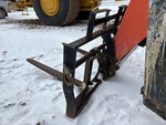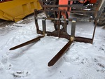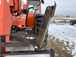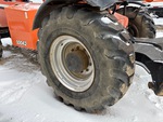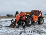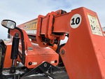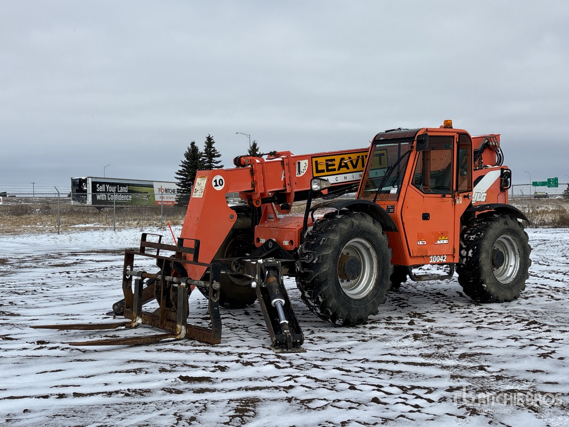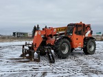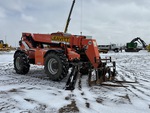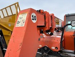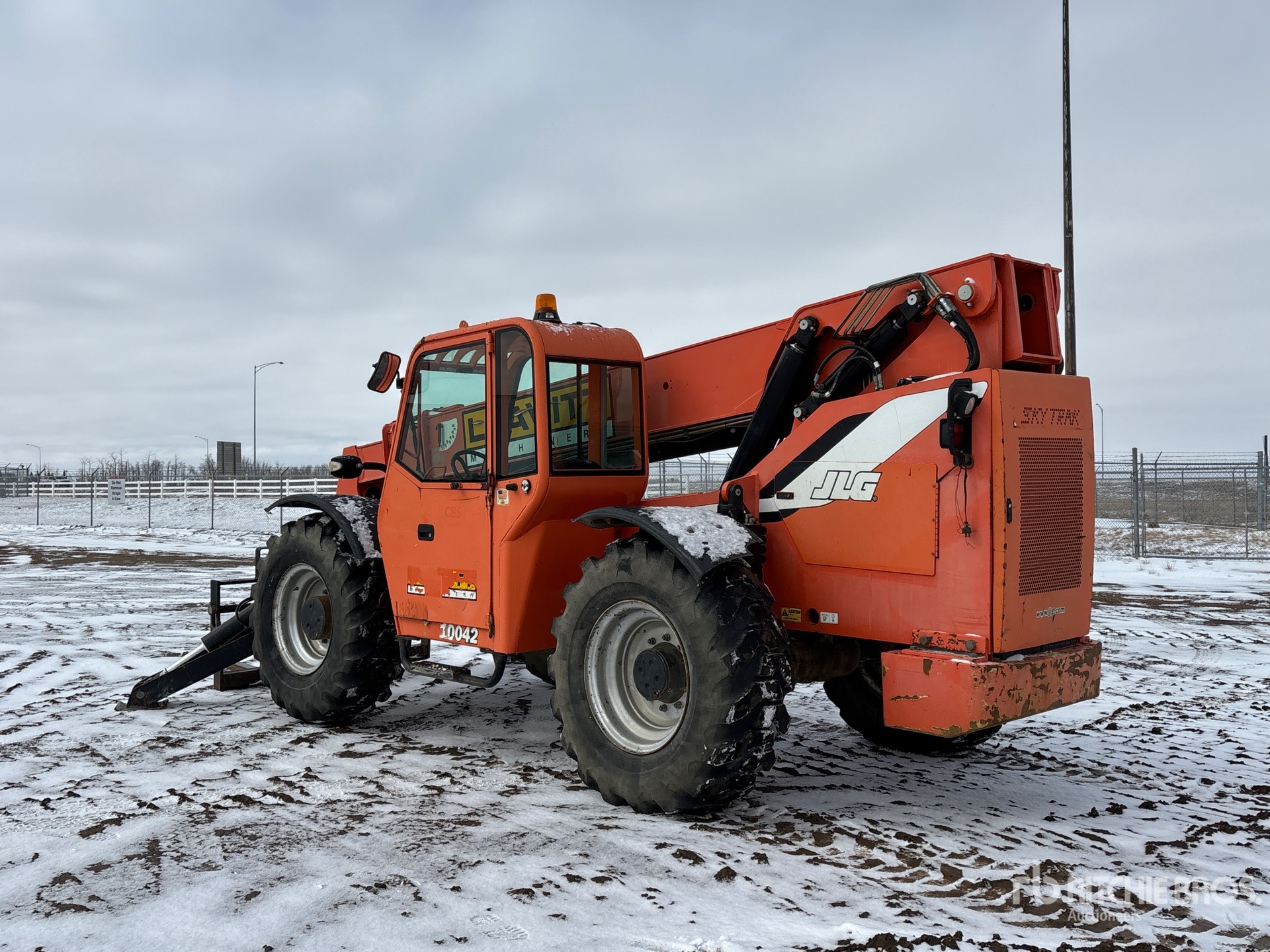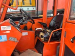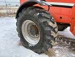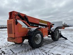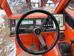 Cabine fermée, hauteur de levage maximale de 12,8 m, capacité de levage maximale de 4 536 kg, fourches de 122 cm, attelage manuel, stabilisateurs, circuit hydraulique auxiliaire, pneus 17,5-25