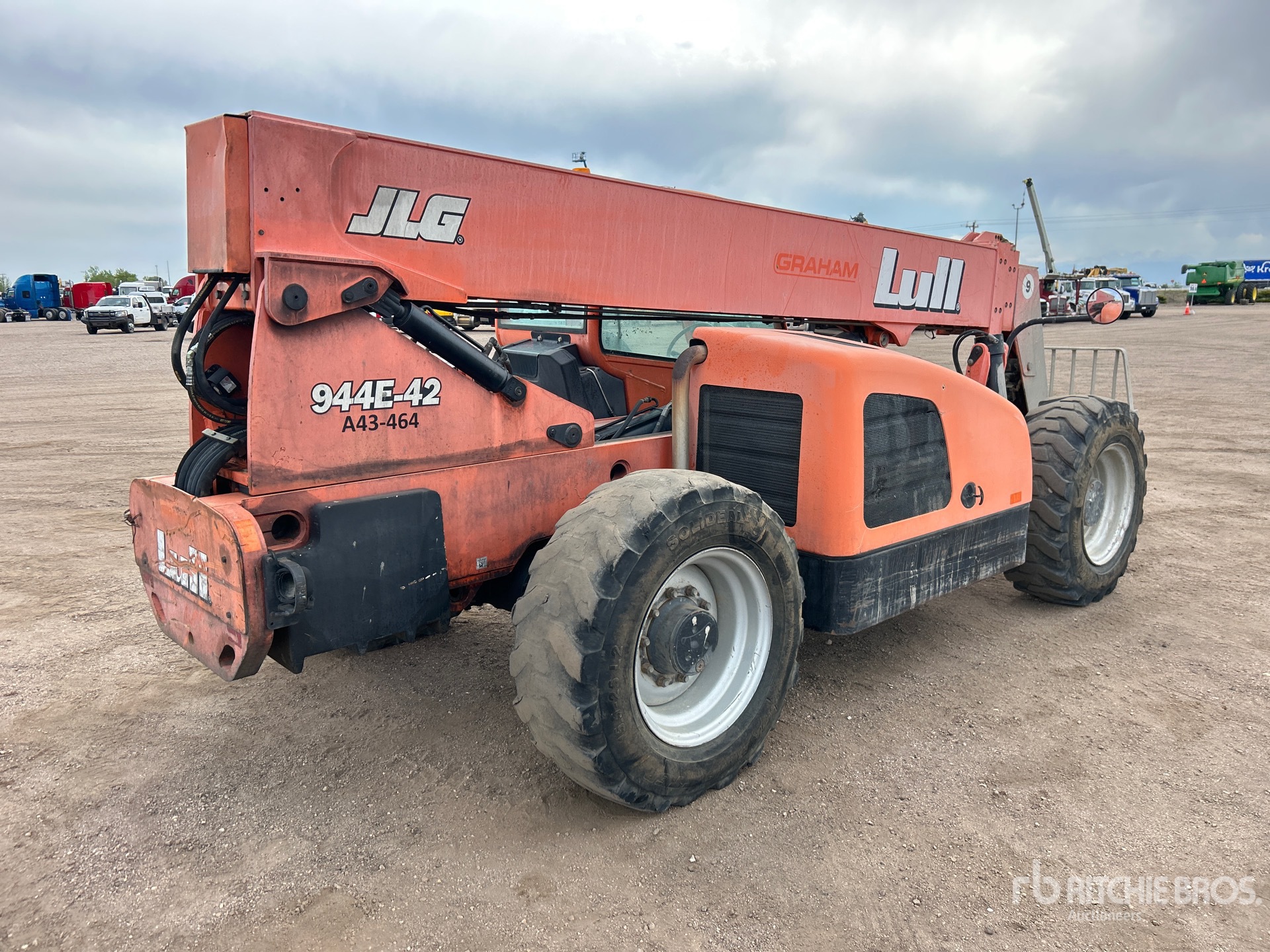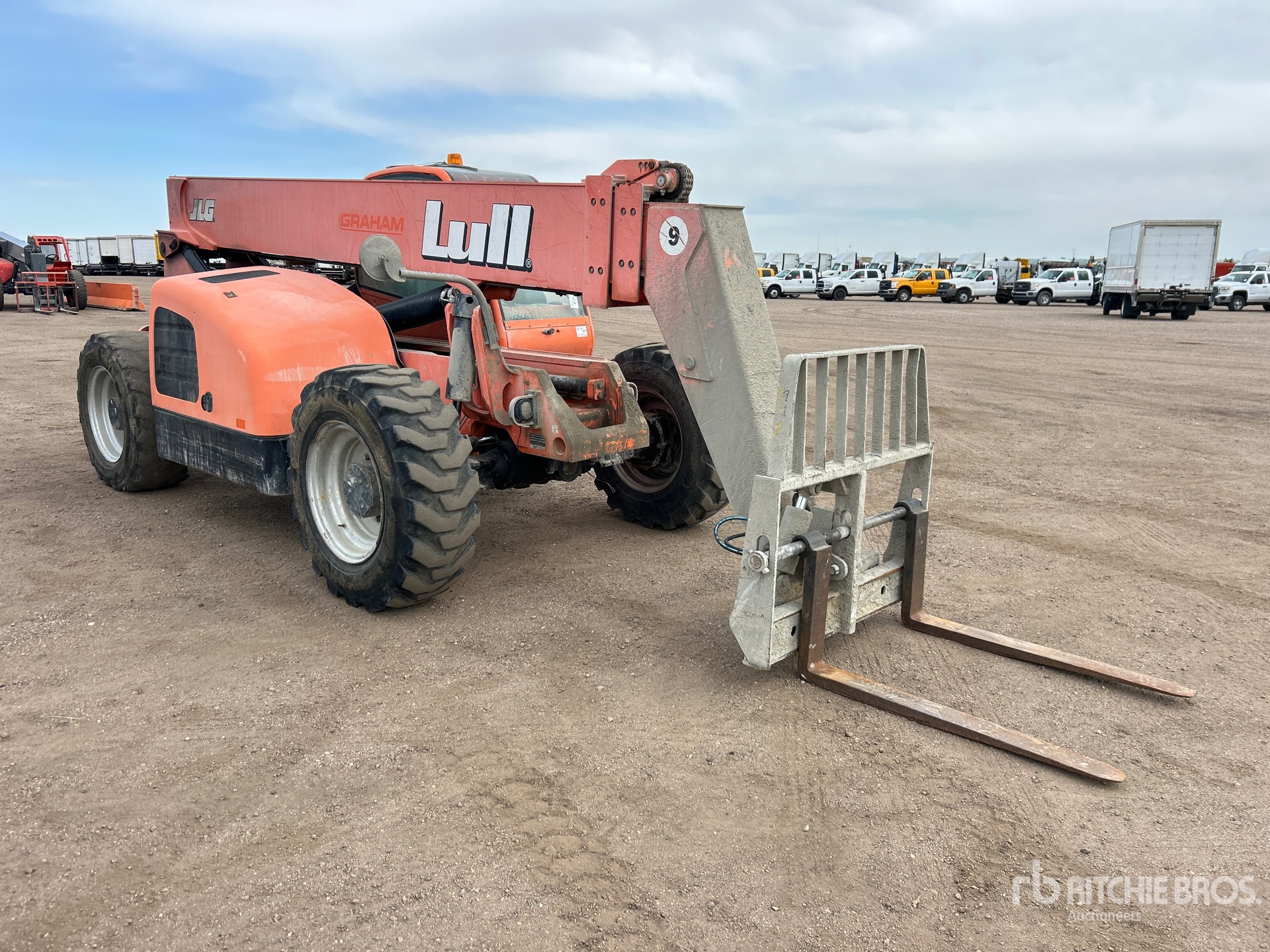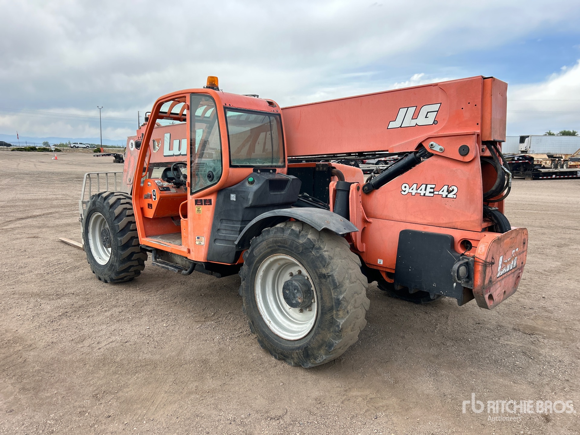 Situé sur la voie 6, emplacement 14, poste de conduite ouvert, hauteur de levage maximale de 13,4 m, capacité de levage maximale de 4 082 kg, étiquette EPA américaine, fourches de 119 cm, chariot inclinable, coupleur manuel, circuit hydraulique auxiliaire, pneus 15,5-25