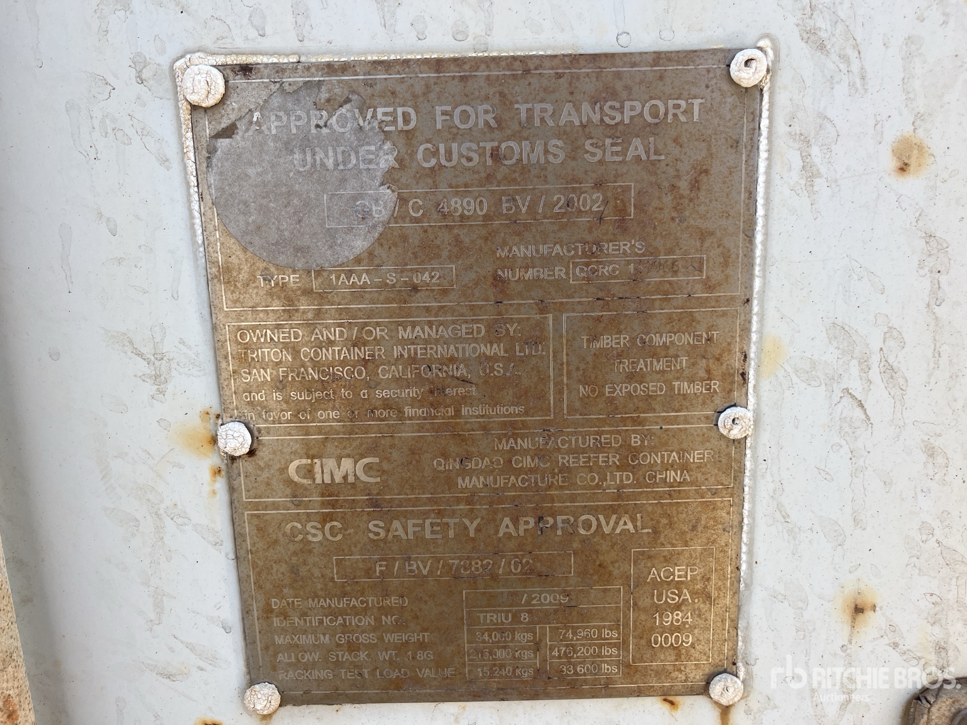 Les Informations détaillées de l’équipement sont d’une portée limitée, et les Encans Ritchie Bros. n’ont inspecté aucun autre aspect ou composant de l’équipement que ceux présentés expressément. Sauf indication précise, nous n’offrons aucune représentation ou garantie, officielle ou implicite, sur l’équipement ou ses composants, sans aucune limite de représentation ou de garantie en ce qui concerne la fonctionnalité, la conformité à toute norme de sécurité ou l’exigence de toute autorité ou agence de régulation en vigueur, l’adaptation à un quelconque usage, ou la valeur commerciale. Il vous est fortement conseillé d’effectuer votre propre inspection détaillée de l’équipement avant d’enchérir.