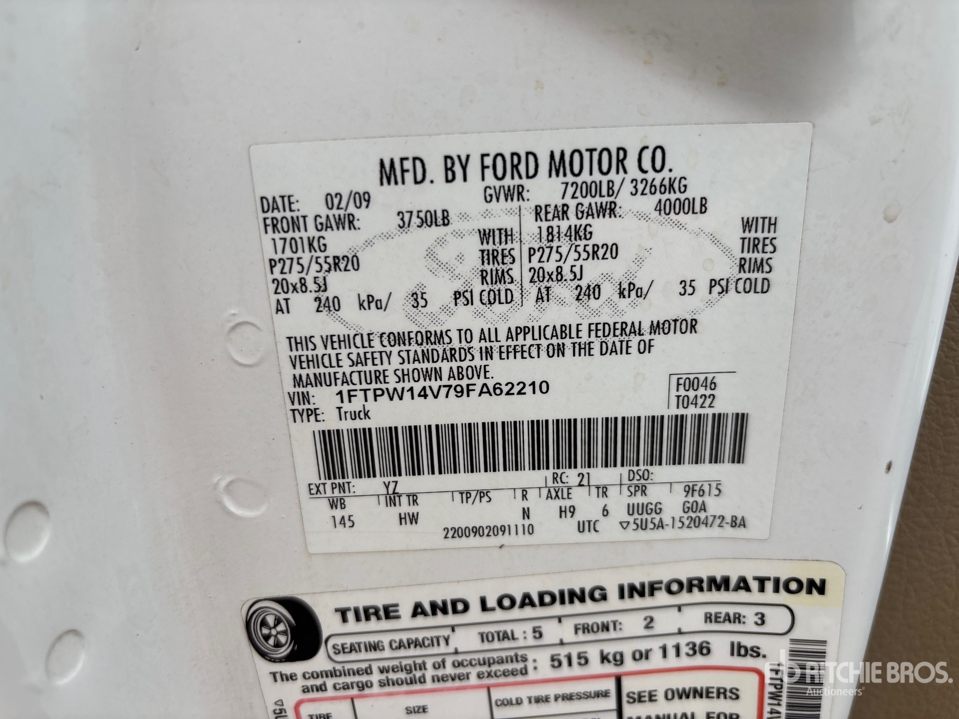 Moteur à essence V8 de 5,4 L, homologué EPA 2009, transmission automatique, climatisation, siège conducteur électrique, pédales réglables électriquement, vitres électriques, toit ouvrant, couvre-benne, revêtement de benne pulvérisé, PTAC de 3 266 kg (7 200 lb), pneus 275/55R20, benne de 1,83 m (6 pi)